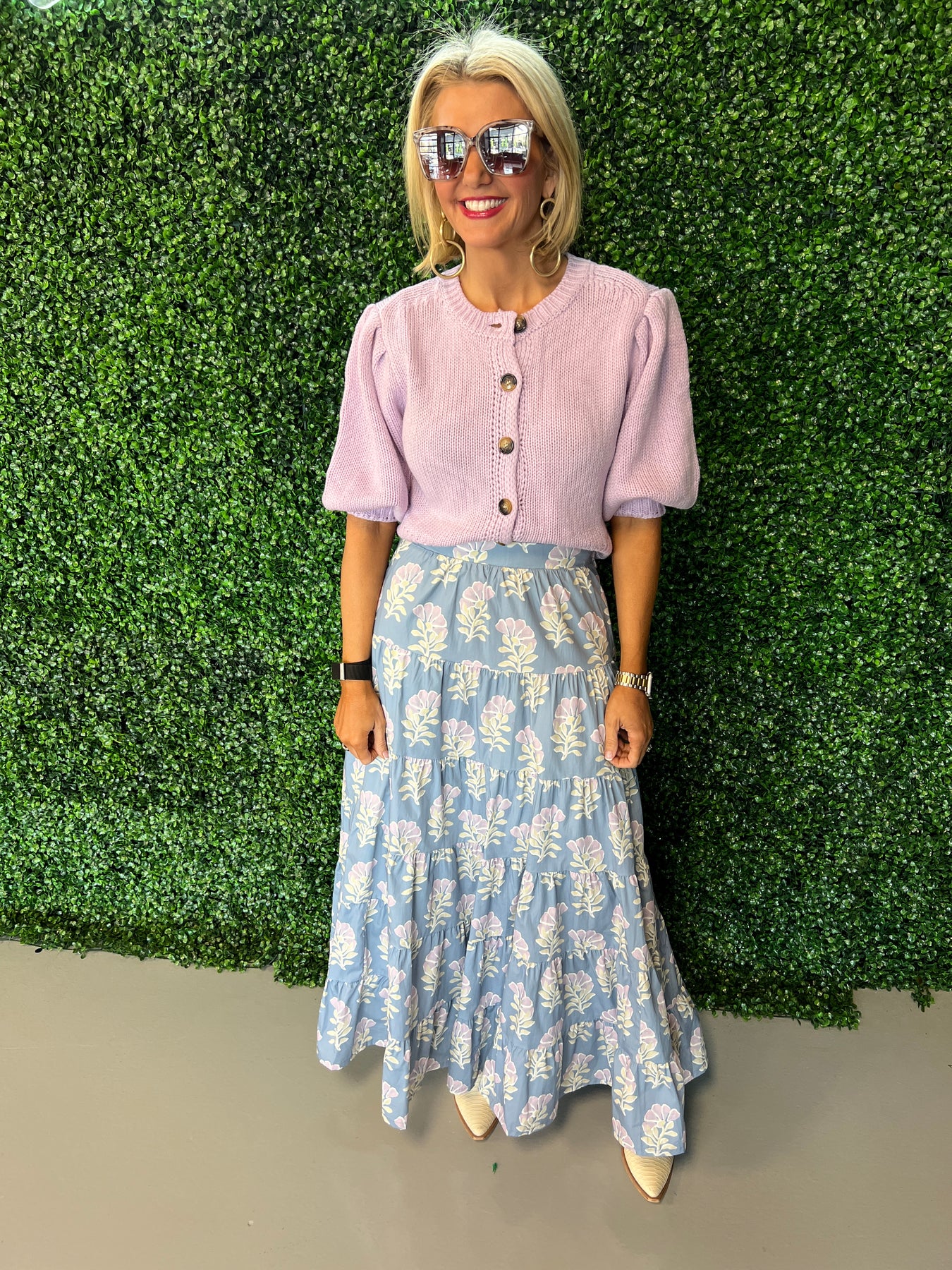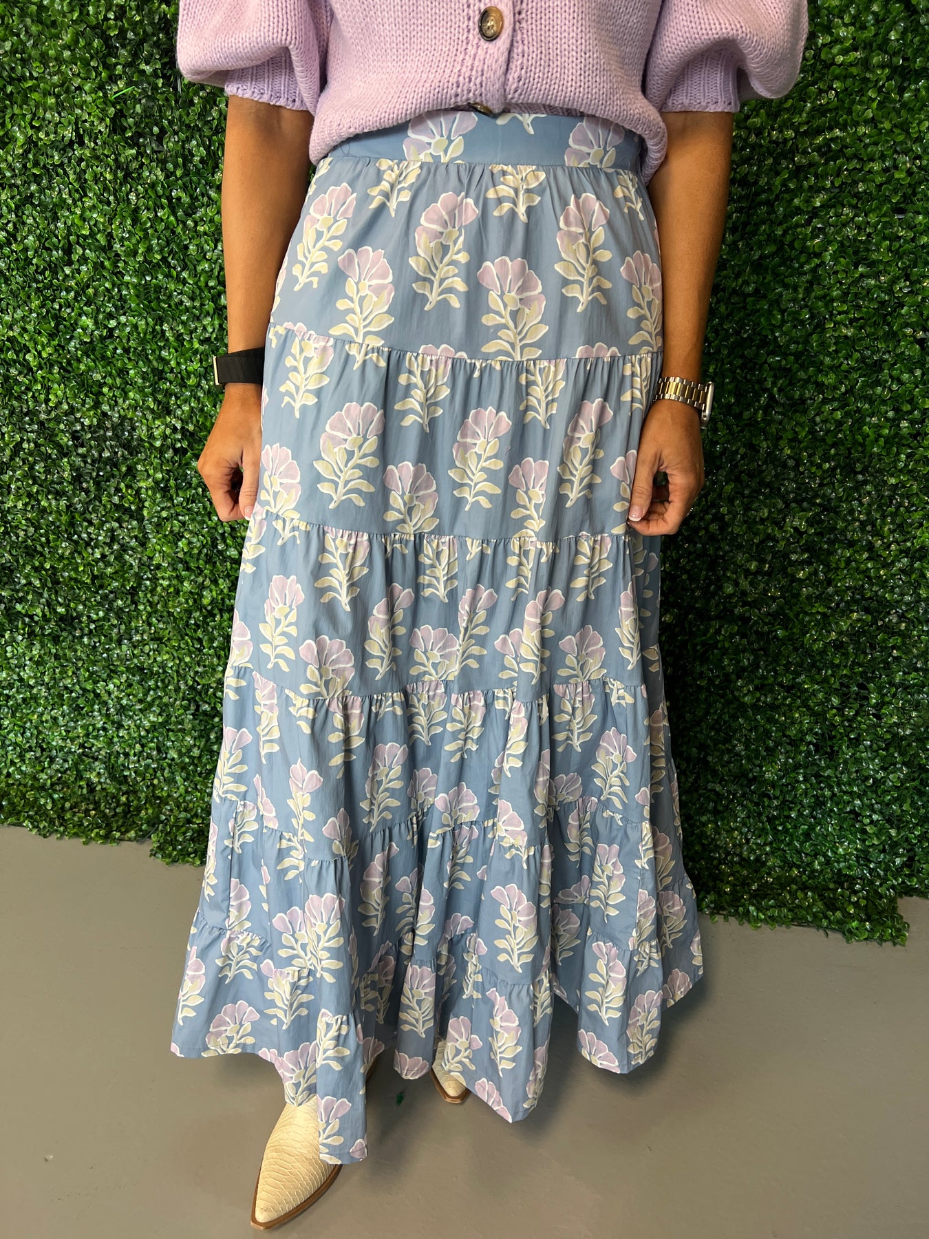 Elevate your wardrobe with this stunning floral print maxi skirt, featuring multiple tiers that create beautiful movement and dimension. The flowing silhouette flatters every figure while the vibrant floral design brings effortless elegance to any occasion—from casual brunches to evening events. Crafted for comfort and style, this versatile piece pairs seamlessly with your favorite tops and accessories. Perfect for those who love romantic, feminine fashion that makes a statement.