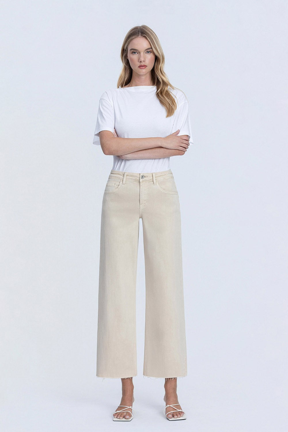 High Rise Crop Wide Leg Jeans Elevate your denim game with these high-rise crop wide-leg jeans—the perfect blend of vintage-inspired style and modern comfort. The flattering high waistline elongates your silhouette while the cropped length keeps things current and versatile. Wide legs provide an effortless, relaxed fit that works beautifully with everything from sneakers to heels. Crafted for all-day wear, these jeans transition seamlessly from casual weekends to dressed-up nights out. A wardrobe essential that delivers both confidence and timeless appeal.