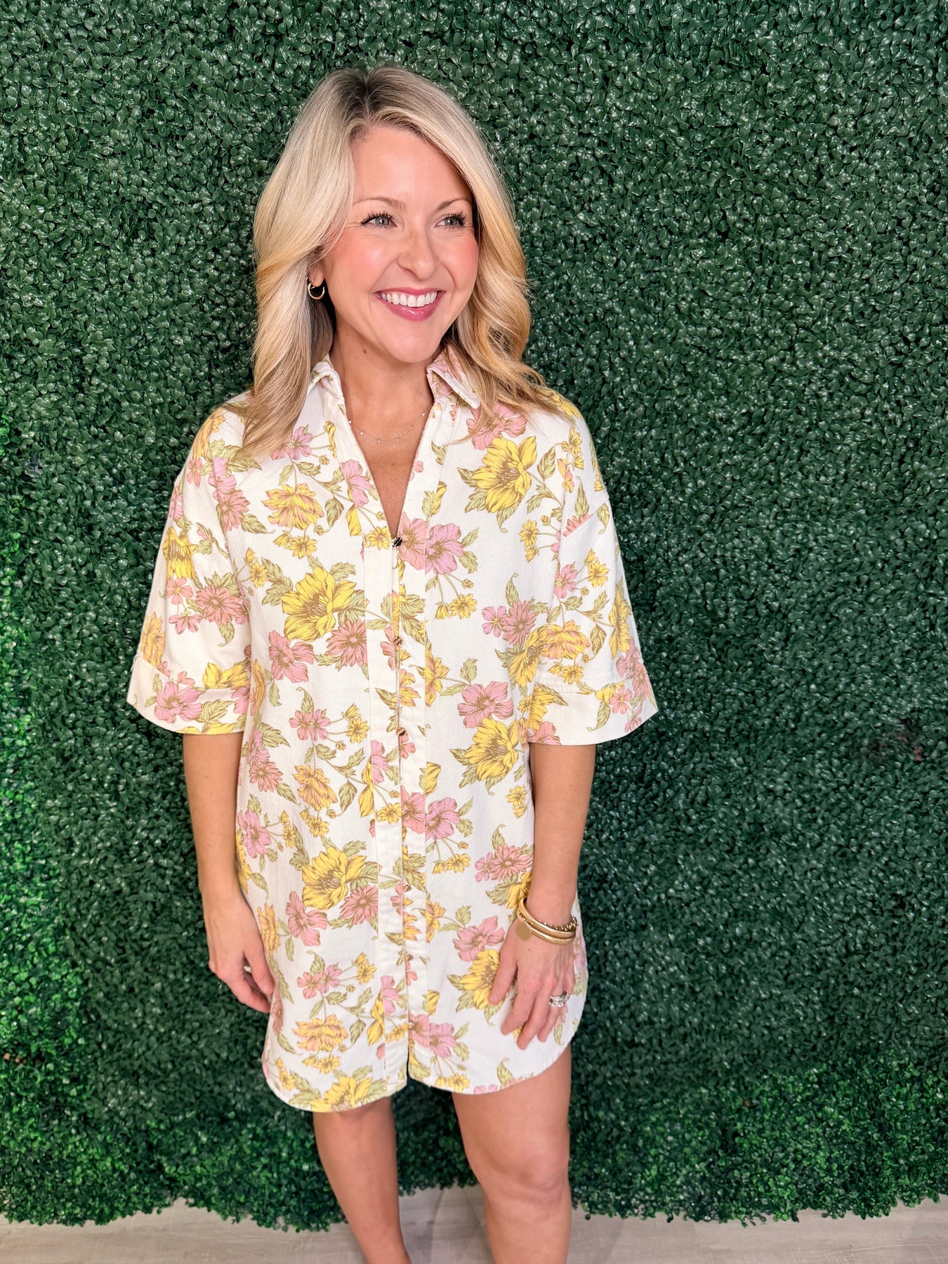 Embrace effortless elegance with this charming floral print mini dress. The delicate half sleeves offer the perfect balance of coverage and style, while the vibrant botanical pattern brings a fresh, feminine touch to any occasion. Whether you're heading to brunch, a garden party, or a casual date night, this versatile piece transitions seamlessly from day to evening. The flattering mini length showcases your legs while maintaining a playful, sophisticated vibe. Pair it with sneakers for a relaxed look or dress