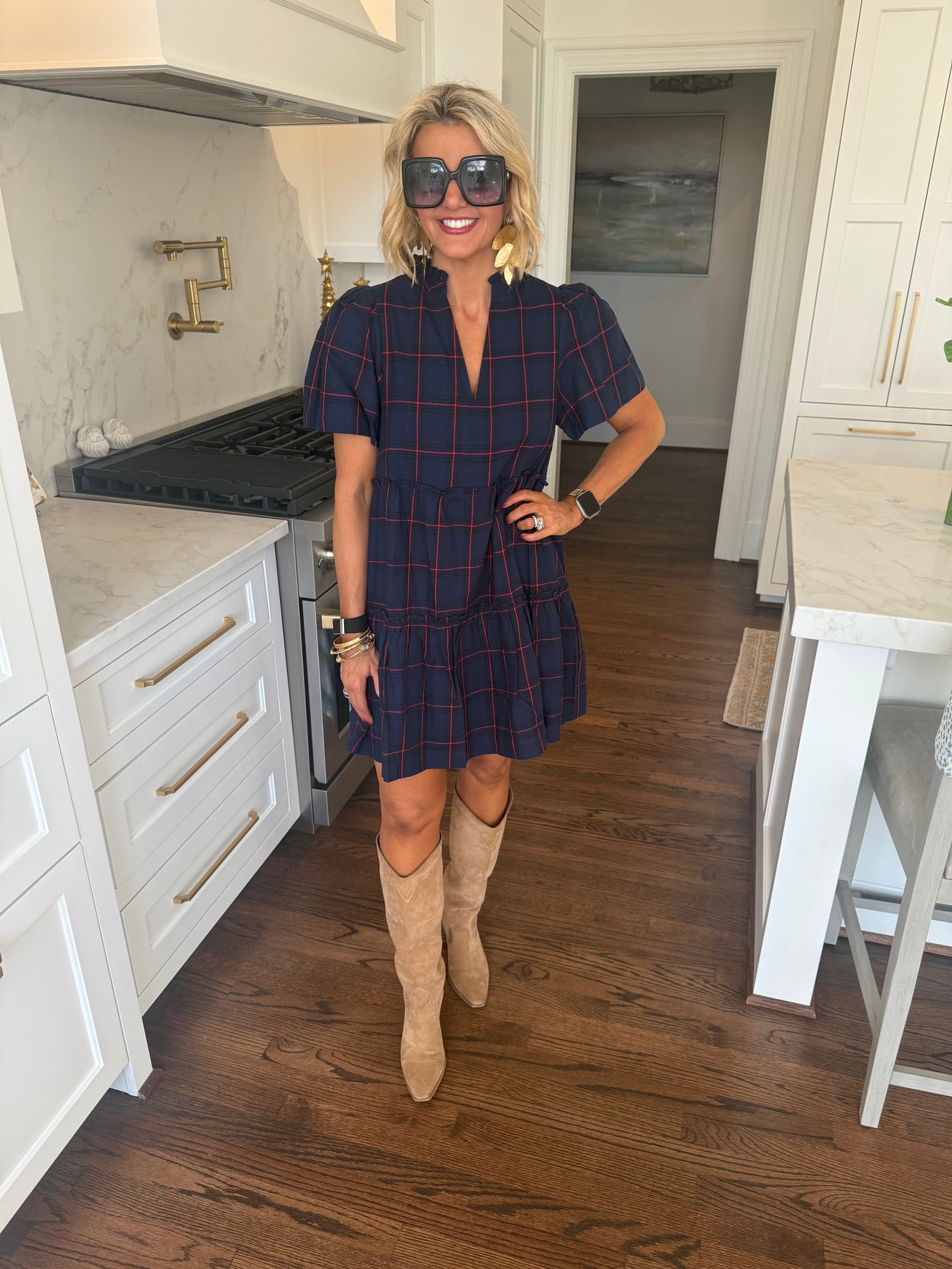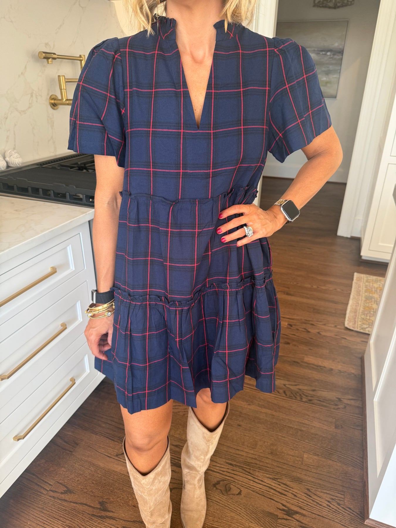 Elevate your wardrobe with the Holbrook Plaid Julissa Split Neck Babydoll Dress—a striking piece that combines timeless plaid styling with modern silhouette appeal. The flattering babydoll cut creates a comfortable, forgiving fit that works beautifully for any body type, while the distinctive split neckline adds an unexpected touch of sophistication and edge. Perfect for casual outings, date nights, or layered styling, this versatile dress transitions seamlessly from season to season. The classic plaid pattern ensures you'll reach for it again and again, making it an essential addition to your everyday collection.