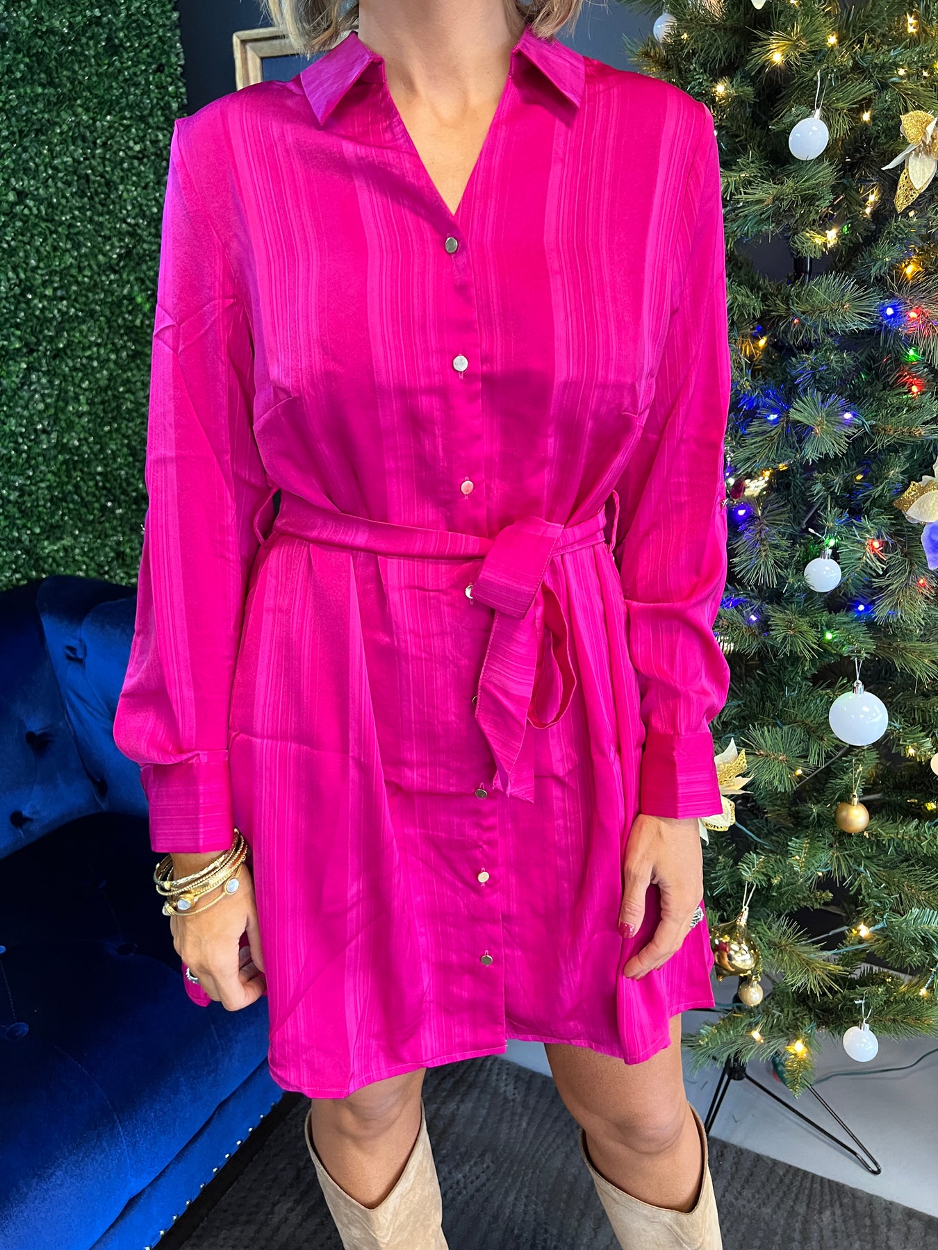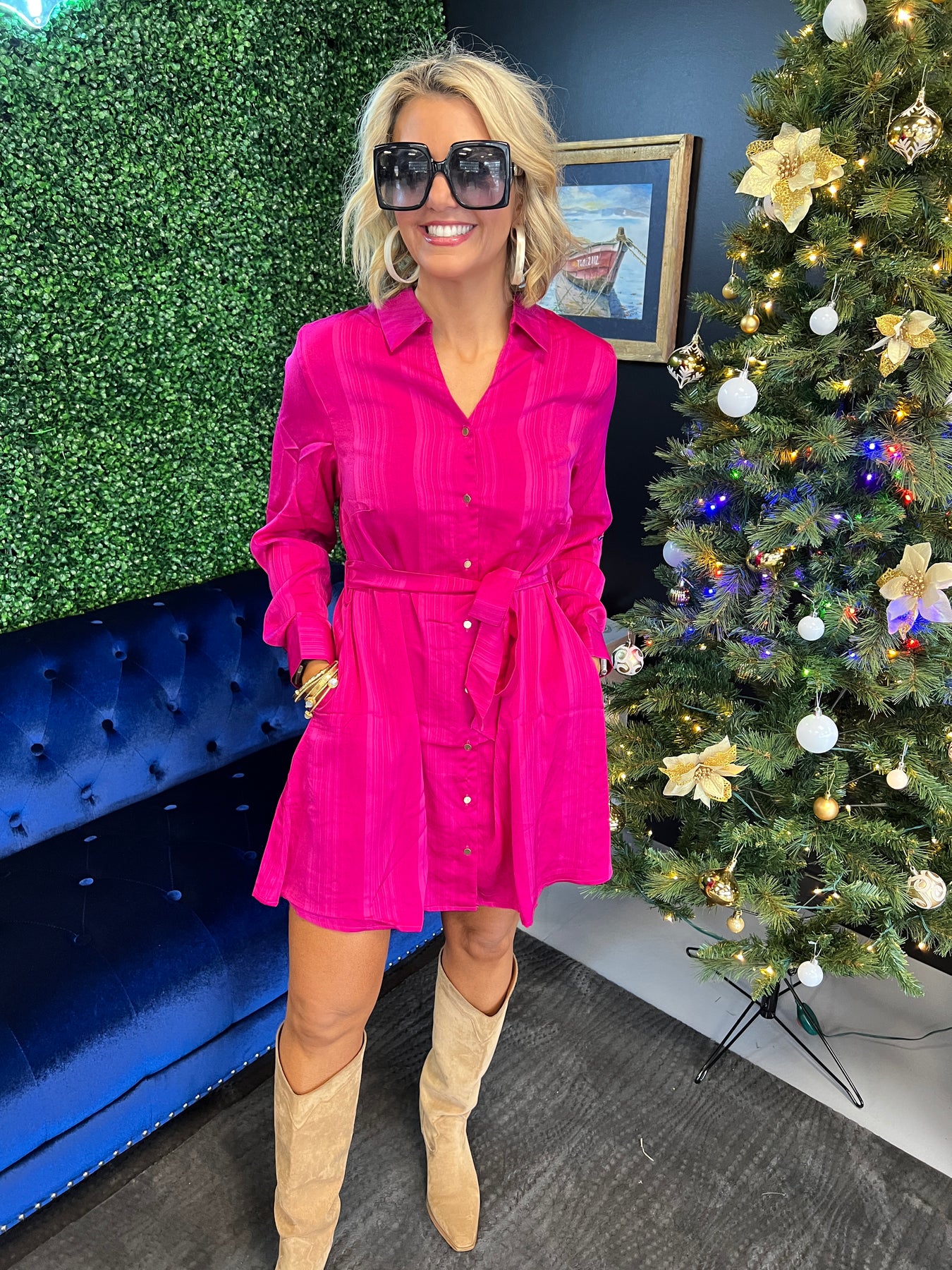 Turn heads in this vibrant magenta mini dress that's equal parts bold and fun. The striking jewel tone flatters every complexion, while the playful cut keeps things flirty and fresh. Perfect for nights out, parties, or whenever you want to make a statement without trying too hard. Slip it on and let your confidence do the talking.