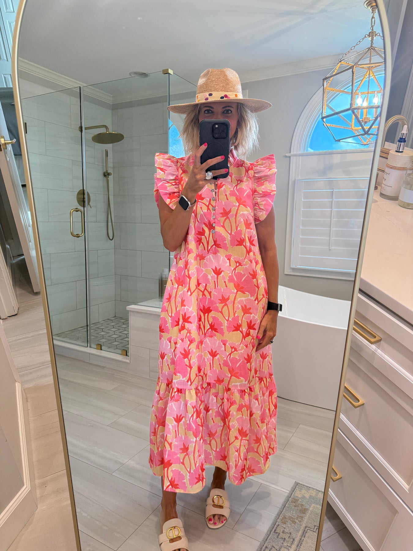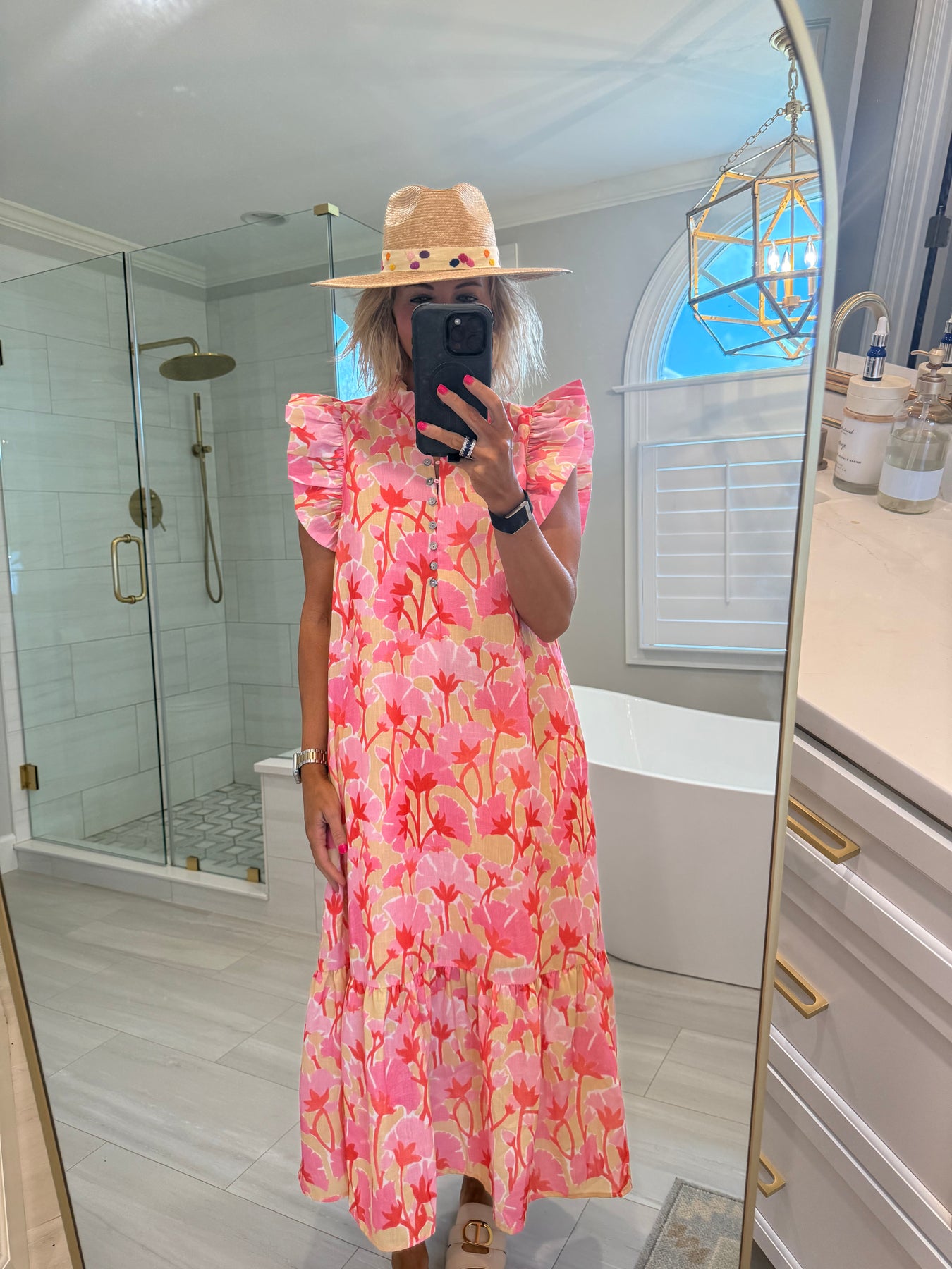 Elevate your wardrobe with this charming Pink Floral Ruffle Sleeve Dress, where delicate florals meet playful feminine details. The eye-catching ruffle sleeves add movement and dimension, creating an instantly flattering silhouette that turns heads at any occasion. Perfect for spring gatherings, date nights, or casual outings, this dress combines timeless elegance with modern flair. The soft pink palette complements all skin tones, while the floral print brings a fresh, vibrant energy to your everyday style. Versatile enough to dress up with heels or down with sneakers, this piece is destined to become a go-to favorite in your closet.