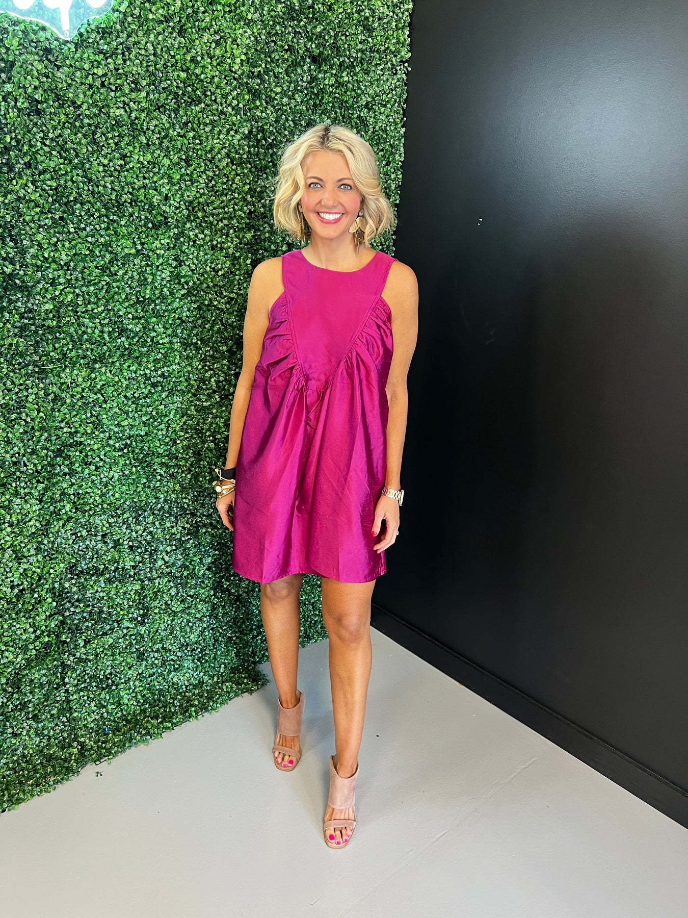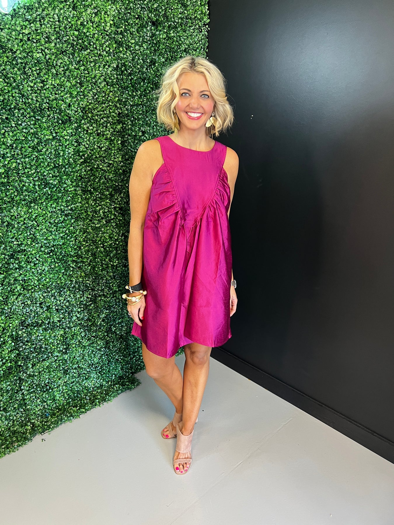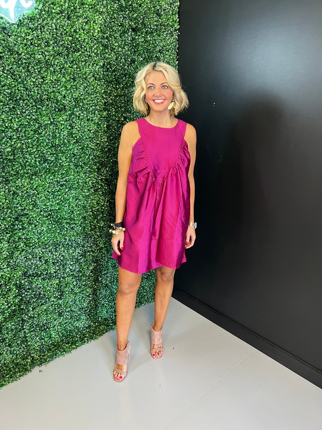 Twirl into any occasion in this charming pink A-line dress! The gathered details create a flattering silhouette that moves beautifully with you, while the soft hue brings an instant pop of color to your wardrobe. Perfect for everything from casual outings to special celebrations, this dress combines comfort with effortless style. Whether you're dressing up or keeping it relaxed, this playful piece is sure to become a go-to favorite.