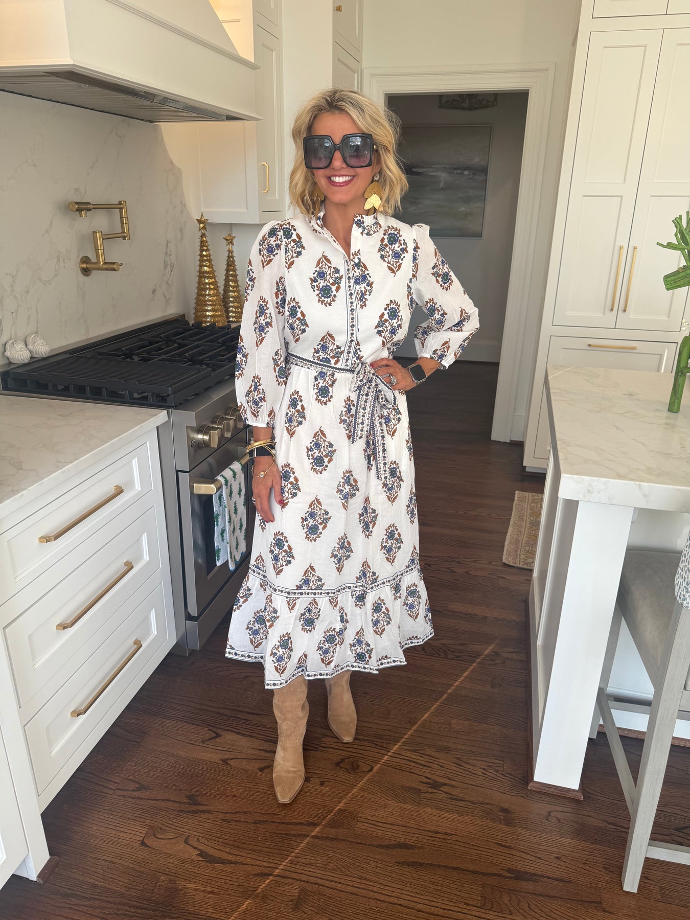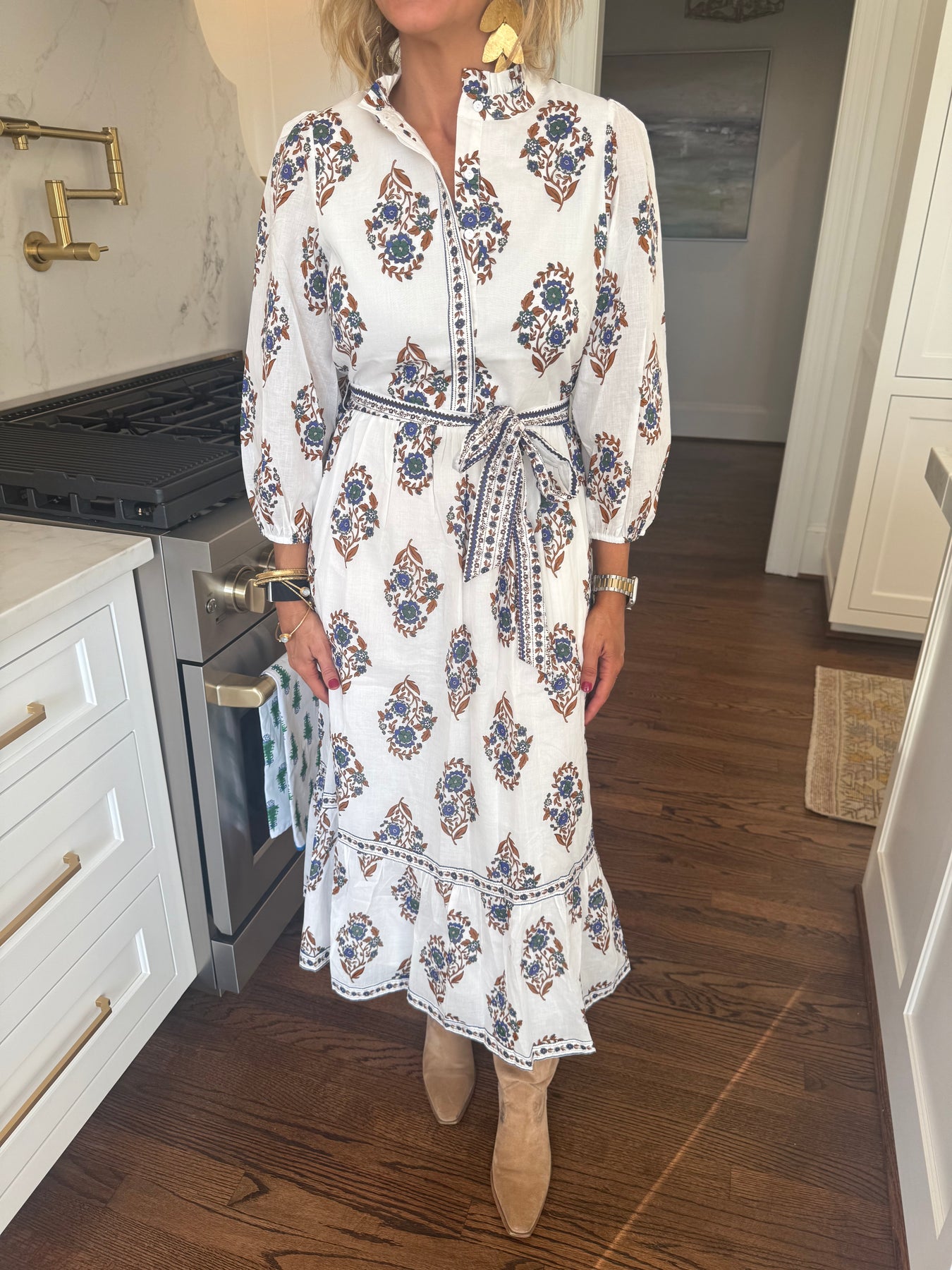 Elevate your everyday wardrobe with the Rennie Floral Long Sleeve Midi Dress—a timeless piece that effortlessly transitions from season to season. The enchanting floral print brings natural beauty and movement to your look, while the midi length offers a sophisticated silhouette that flatters every frame. Long sleeves provide versatile coverage, making it perfect for layering or wearing solo. Whether you're heading to brunch, a casual date, or weekend gatherings, this dress delivers comfort without compromising on style. A wardrobe essential that works as hard as you do.