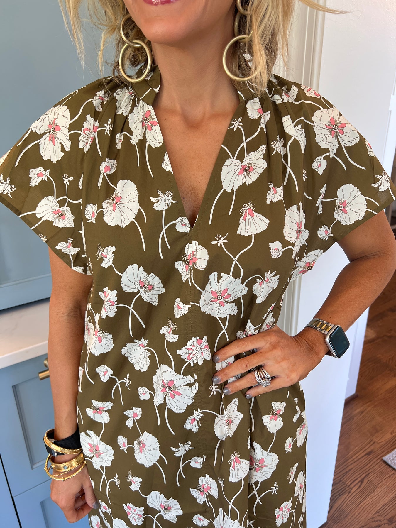 Elevate your wardrobe with this Short Sleeve Floral V-Neck Dress, featuring a flattering neckline and breezy sleeves that offer comfort all day. Its vibrant floral pattern adds a touch of fresh elegance, making it perfect for both casual outings and special occasions. Lightweight and easy to wear, this dress effortlessly combines style and ease for a confident, feminine look.