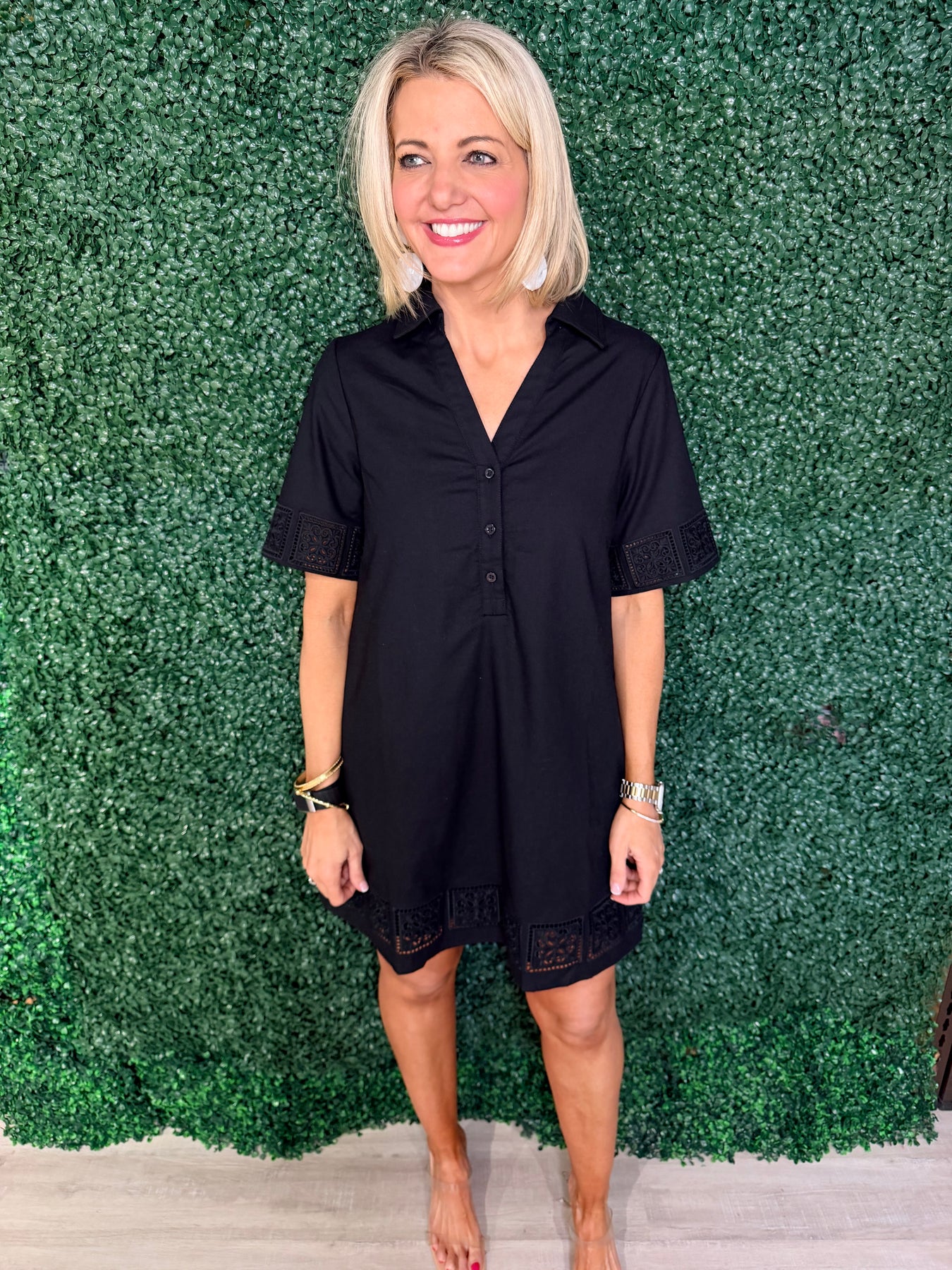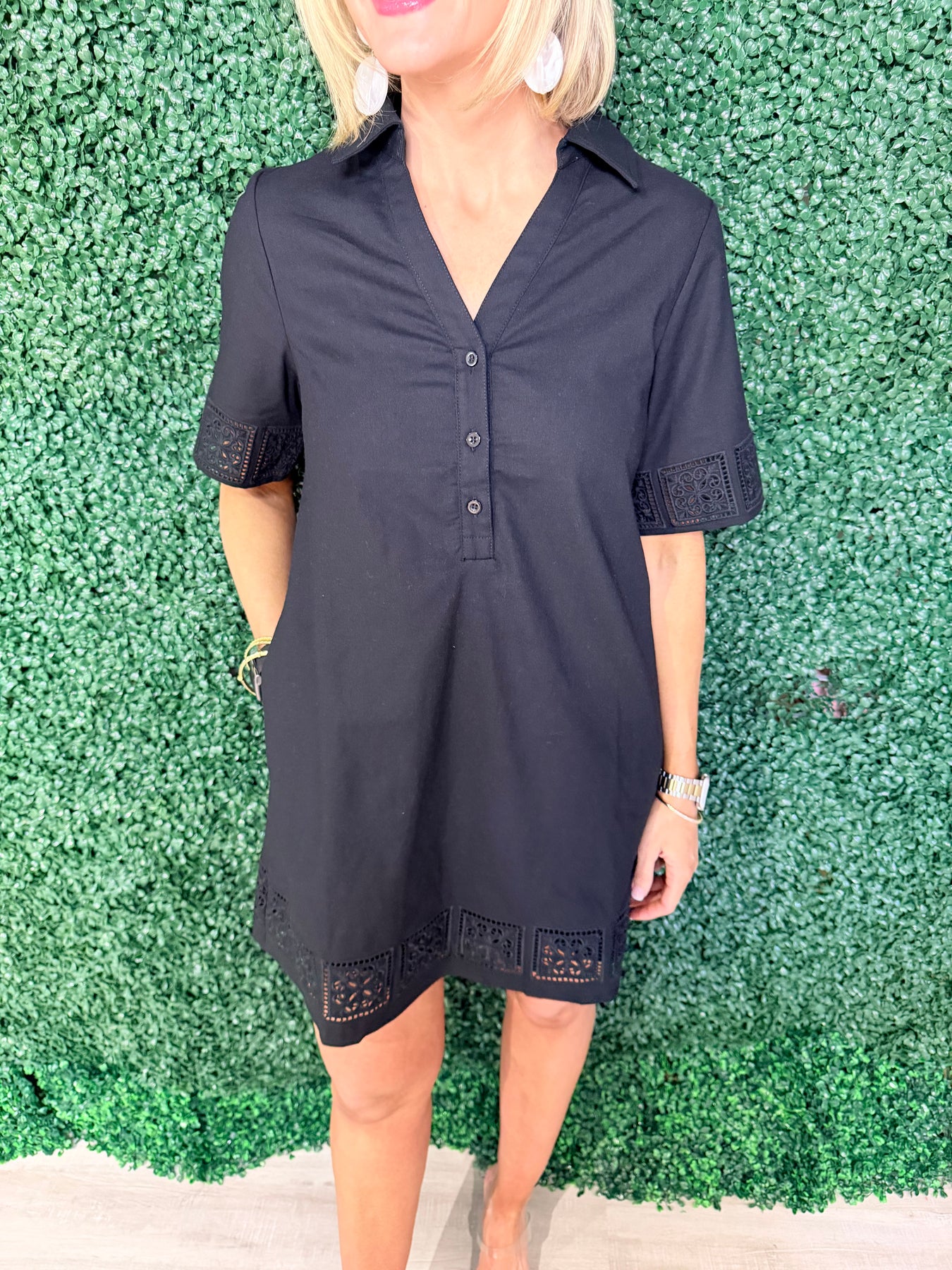 Solid Mini Dress w/ Trim Detail
