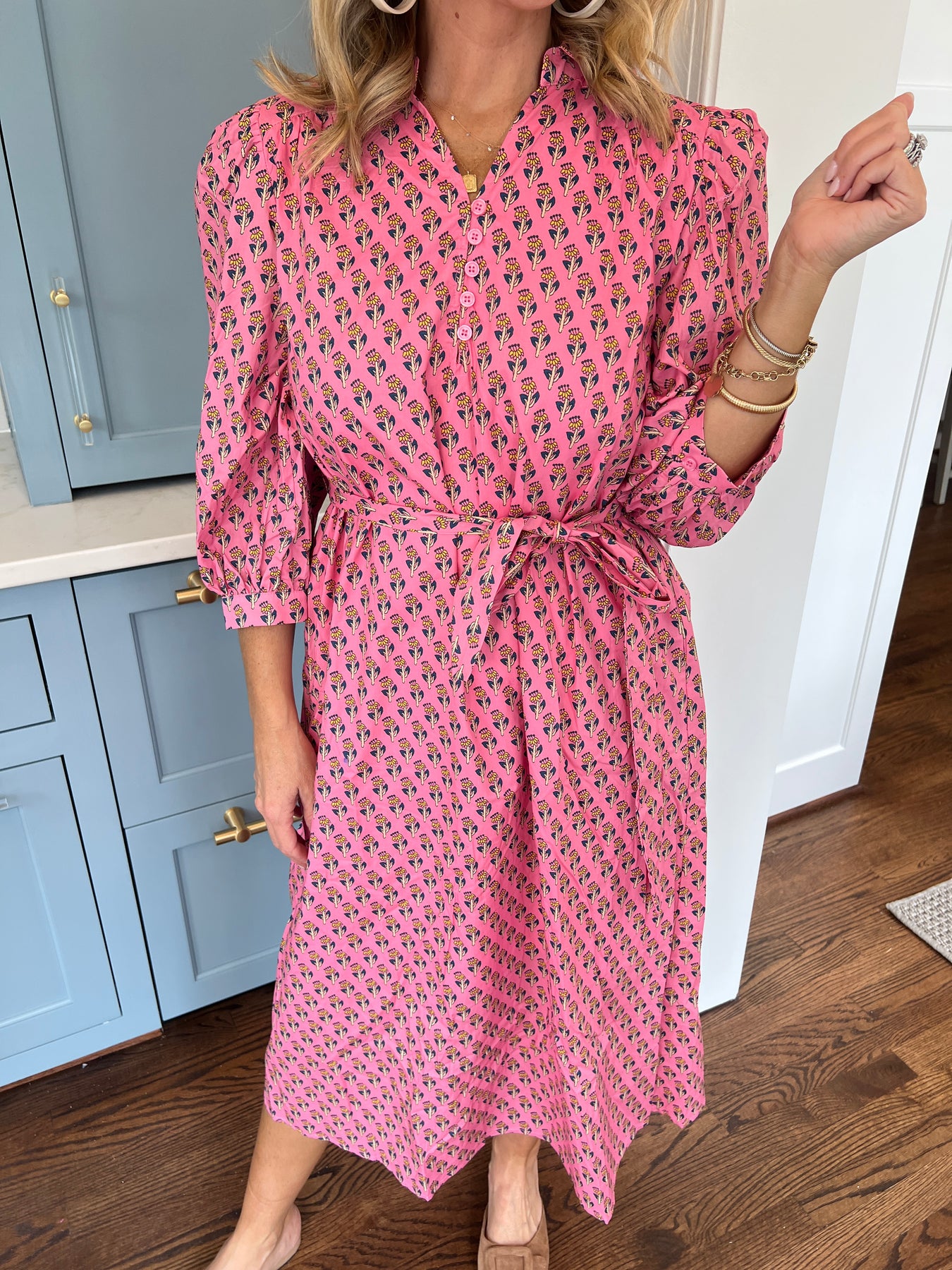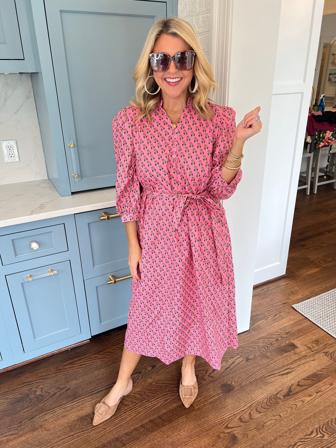 Elevate your wardrobe with this Waist Tie Tiny Floral Midi Dress, designed to flatter every figure with a cinched waist tie for a perfect silhouette. The delicate floral pattern adds a fresh, feminine touch, while the midi length offers a versatile style suitable for both casual outings and special occasions. Light and comfortable, it effortlessly combines elegance with ease, making it your go-to dress for any season.