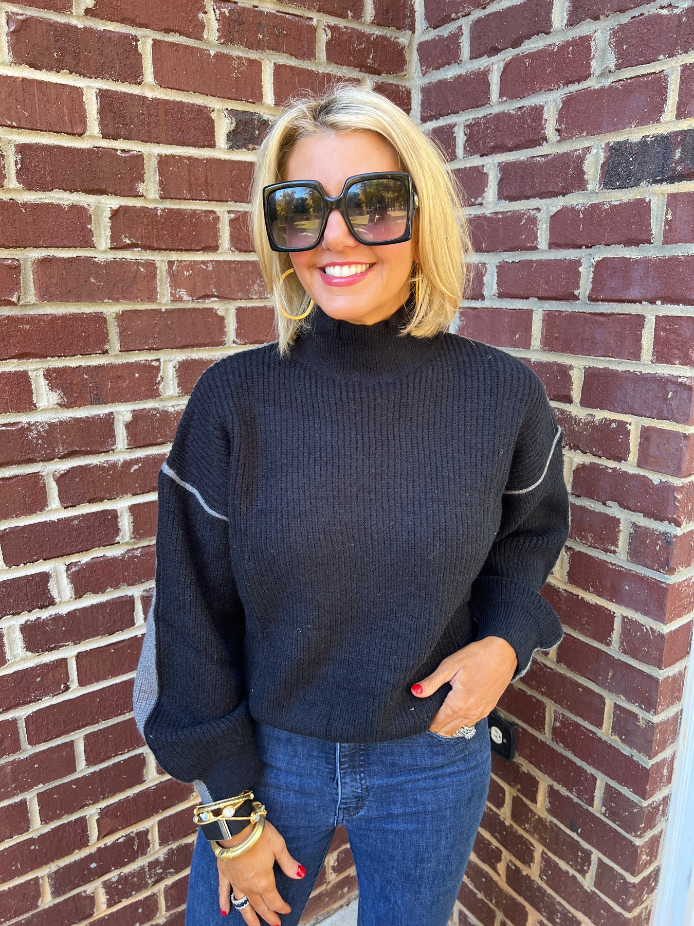 Elevate your everyday wardrobe with this striking Black Mock Neck Contrast Sweater. The bold color-blocking design adds visual interest and modern sophistication to any outfit, while the classic mock neck provides timeless appeal and versatile styling options. Crafted for comfort and durability, this sweater transitions seamlessly from casual weekends to polished office settings. Layer it over your favorite tee or wear it solo for an instantly put-together look that works season after season.