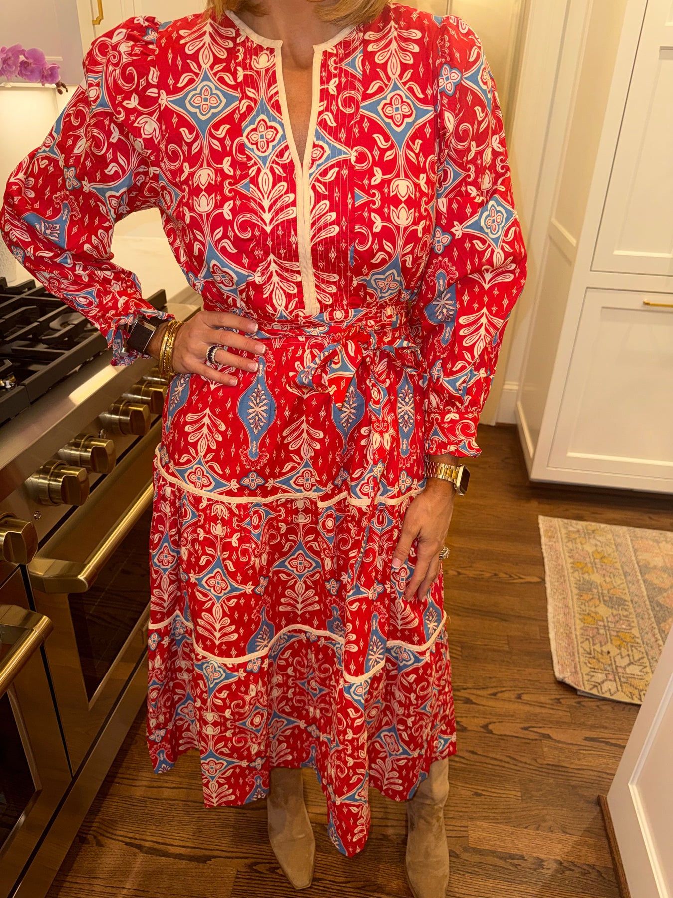 Elevate your everyday wardrobe with this striking midi dress that seamlessly blends style and sophistication. The eye-catching printed pattern draws attention while the contrasting binding detail along the neckline and hem adds a polished, designer-inspired touch. Perfect for transitioning from office to evening, this versatile piece flatters various body types with its midi length and structured silhouette. Whether you're heading to brunch, a casual date, or a weekend gathering, this dress delivers effortless elegance without compromising on comfort. A timeless investment piece that works harder than it looks.