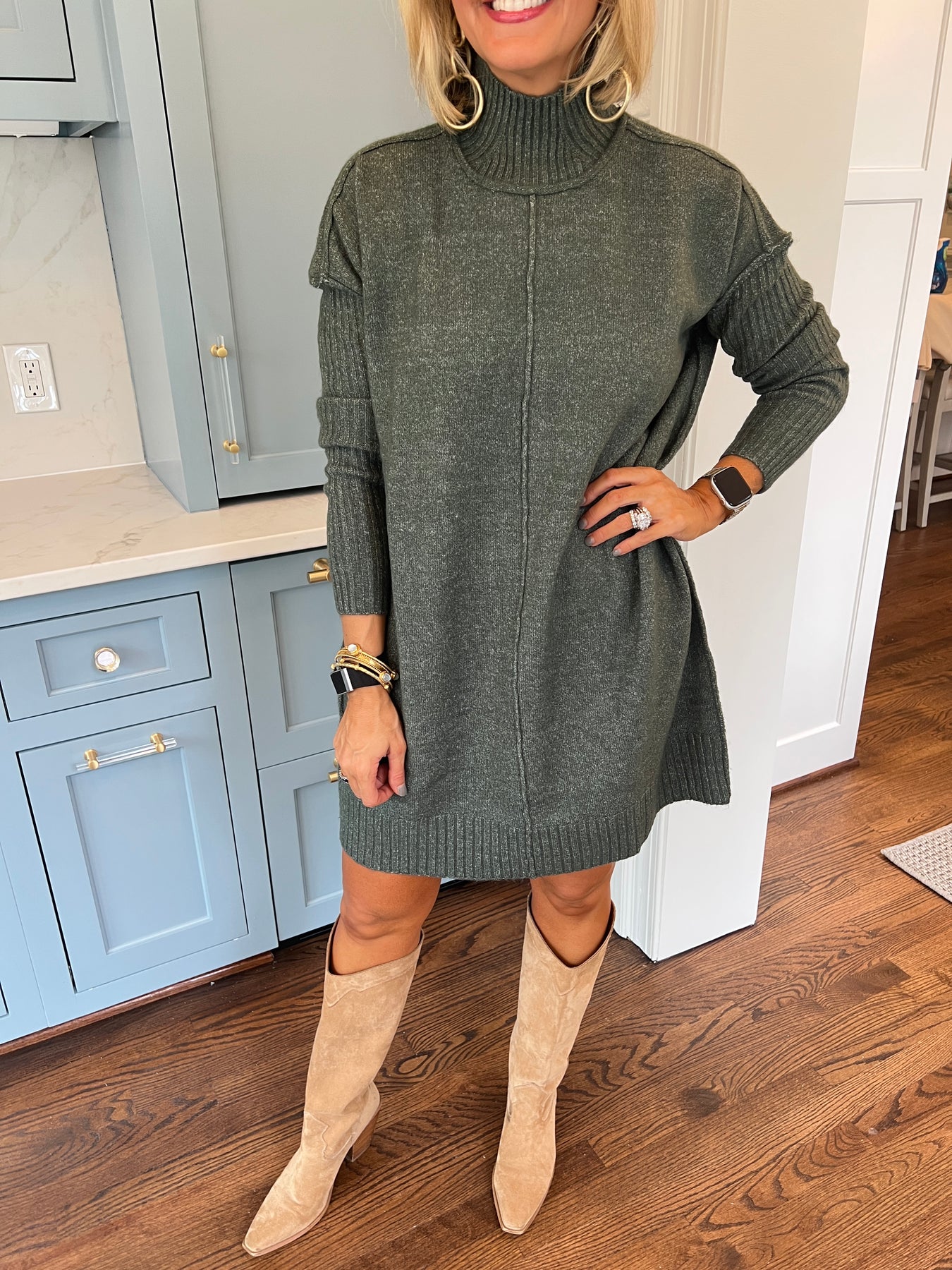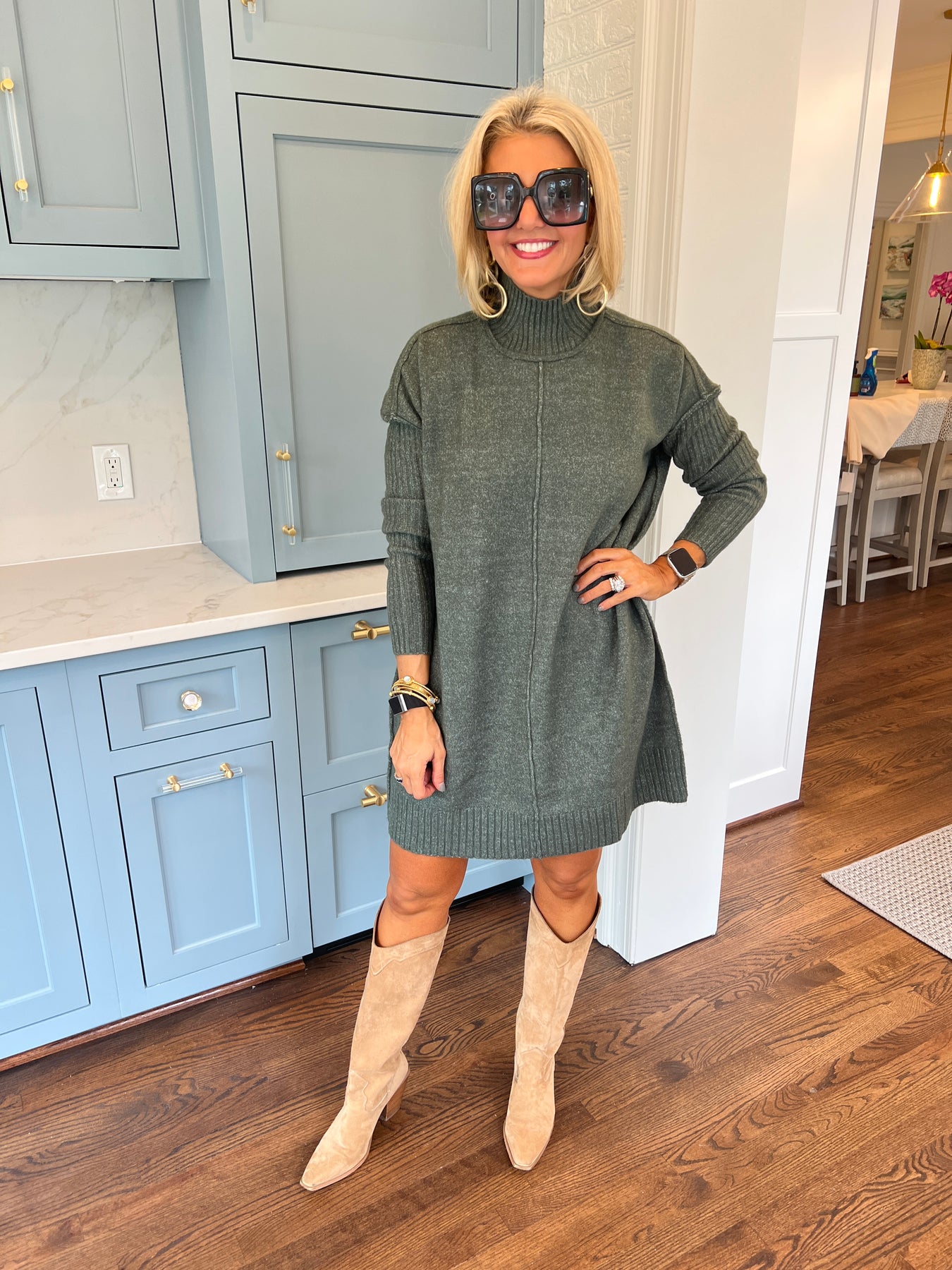 Wrap yourself in effortless elegance with this luxuriously soft knit turtleneck sweater dress. The timeless silhouette flatters every figure while the high neckline provides warmth and sophistication. Perfect for layering over leggings or pairing with boots, this versatile piece transitions seamlessly from office to weekend. The premium knit fabric offers gentle stretch for all-day comfort without sacrificing structure. Whether you're dressing up for a special occasion or keeping it casual, this sweater dress is the wardrobe essential you've been searching for.