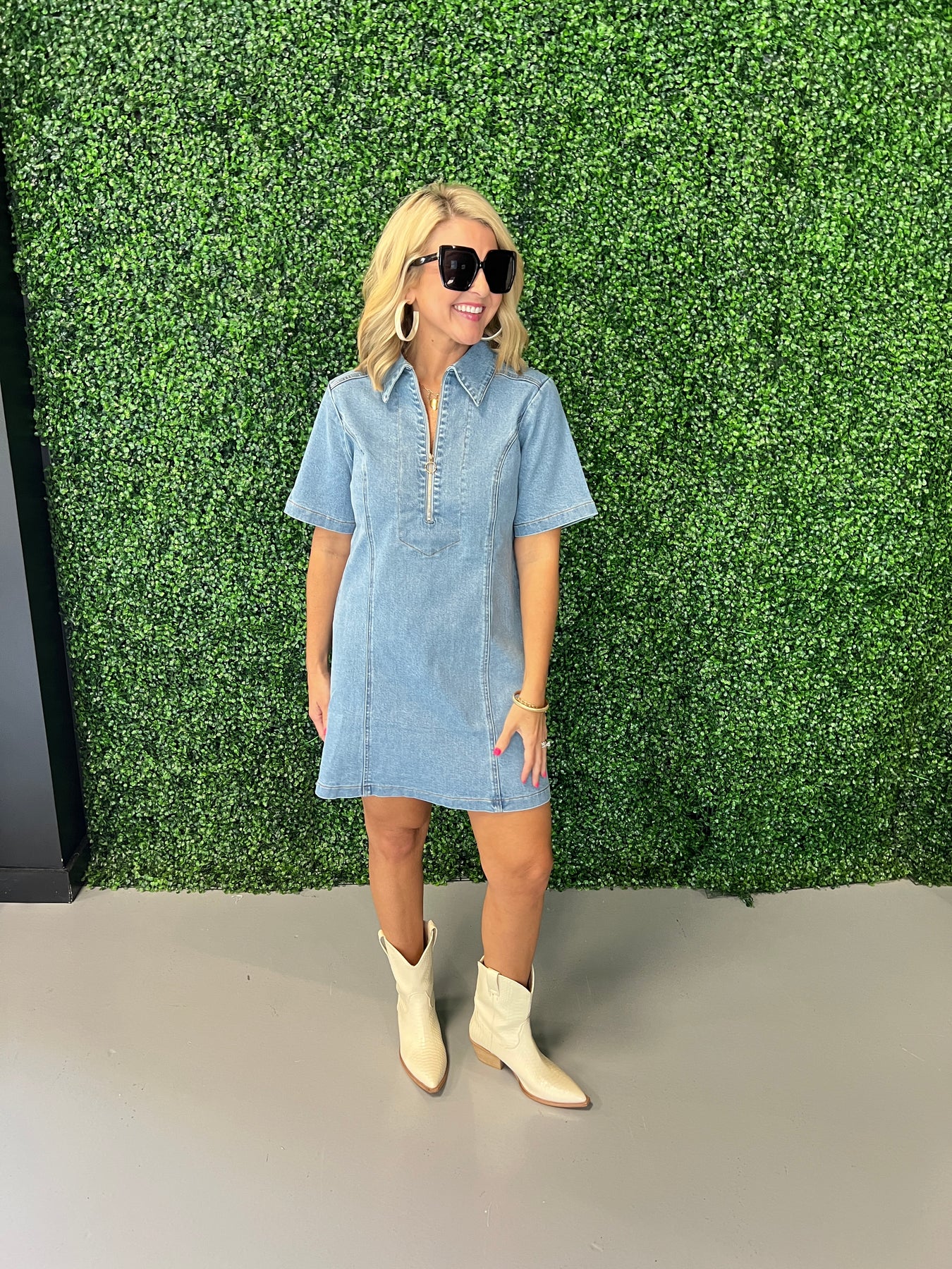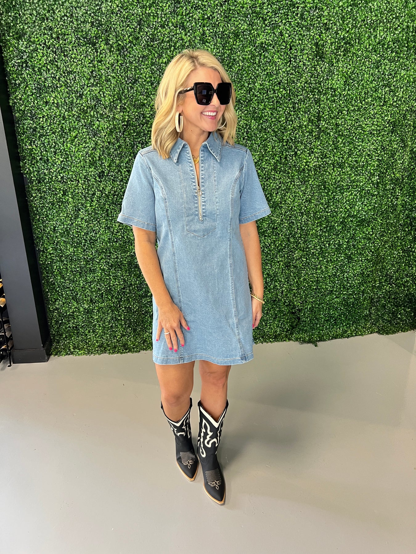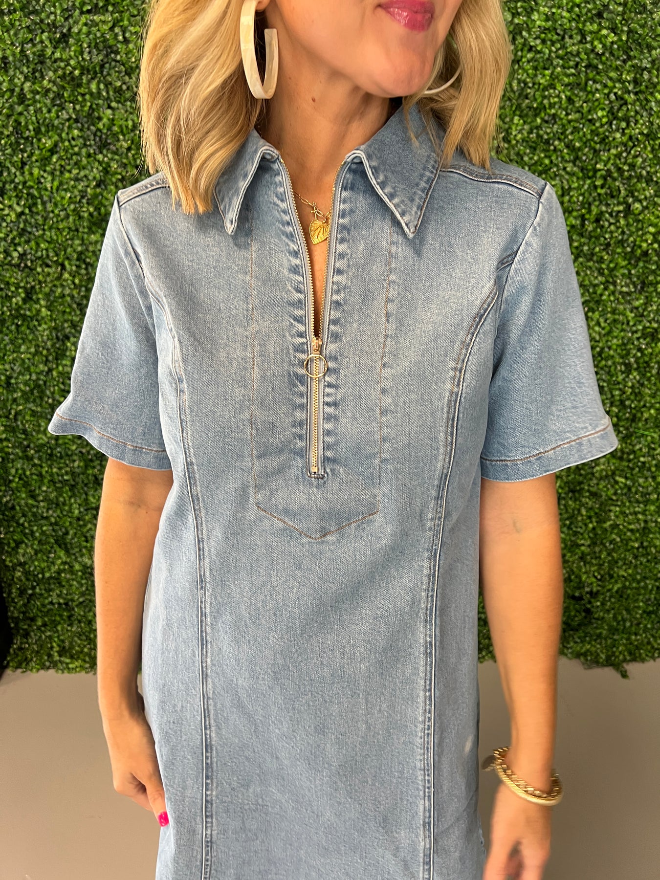 Elevate your casual wardrobe with the Half Zip Washed Denim Dress, designed for effortless style and comfort. Its soft washed denim fabric offers a relaxed fit, while the half-zip detail adds a modern edge and easy wearability. Perfect for day-to-night looks, this dress pairs seamlessly with sneakers or boots, making it a versatile staple you'll reach for again and again.