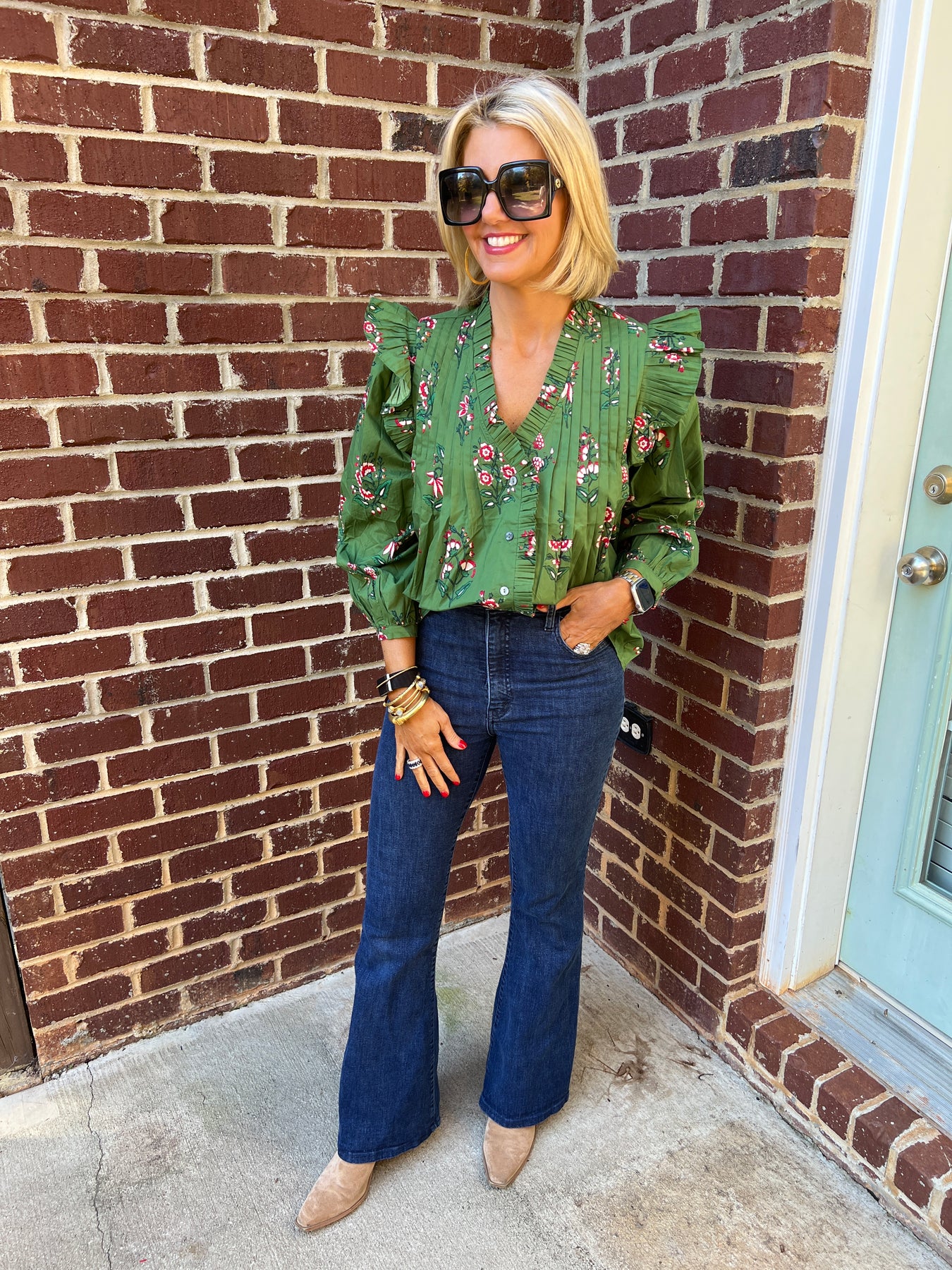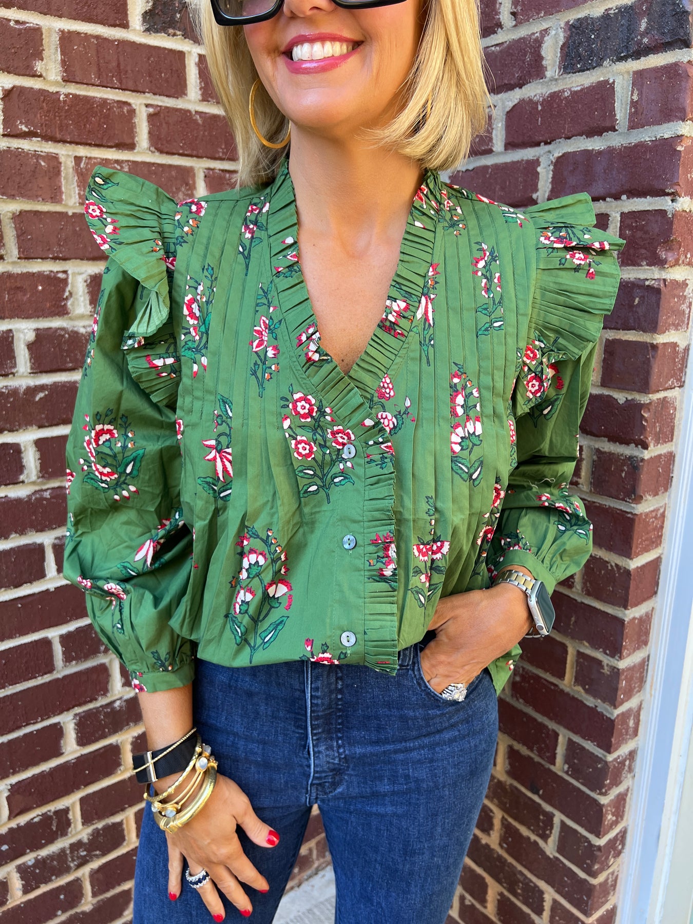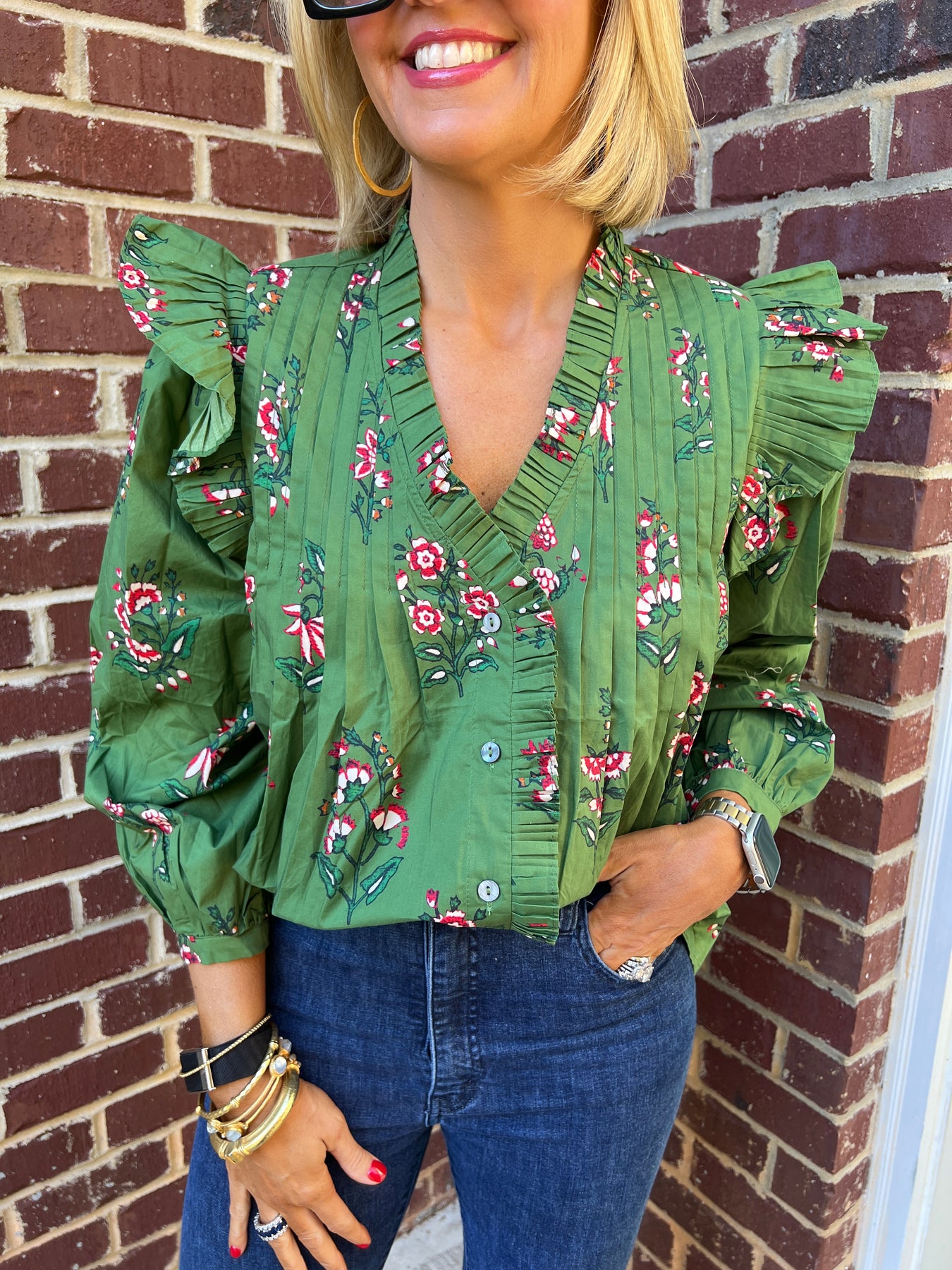 Twirl into spring with this charming ruffled floral long sleeve top! Delicate ruffles frame the neckline and cuffs, adding a touch of whimsy to your everyday wardrobe. The vibrant floral print brings garden-fresh style to any outfit, while long sleeves keep you cozy through cooler days. Perfect for brunch dates, casual outings, or whenever you want to feel effortlessly put-together with a dash of personality.