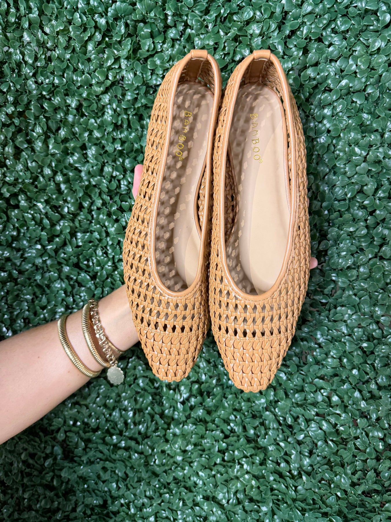 Effortless style meets everyday comfort in this tan woven slip-on flat. The intricate woven texture adds visual interest while the slip-on design means you're ready to go in seconds. Perfect for transitioning from office to weekend, these flats pair seamlessly with dresses, jeans, or trousers. The neutral tan shade complements any wardrobe, making them a versatile essential you'll reach for again and again. Step into sophistication without sacrificing comfort.
