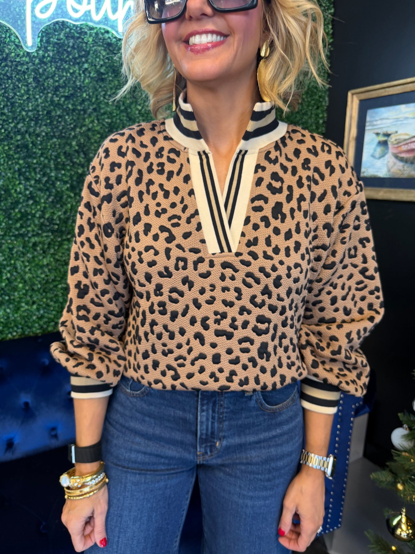 Unleash your wild side with this striking Textured Leopard Top. Featuring a bold leopard print with tactile fabric detailing, this piece transforms any outfit into a statement look. The textured finish adds dimension and visual interest, making it perfect for standing out whether you're heading to brunch or a night out. Versatile enough to pair with neutrals or layer over basics, this top brings effortless edge to your wardrobe. Embrace your confidence and let your style roar.