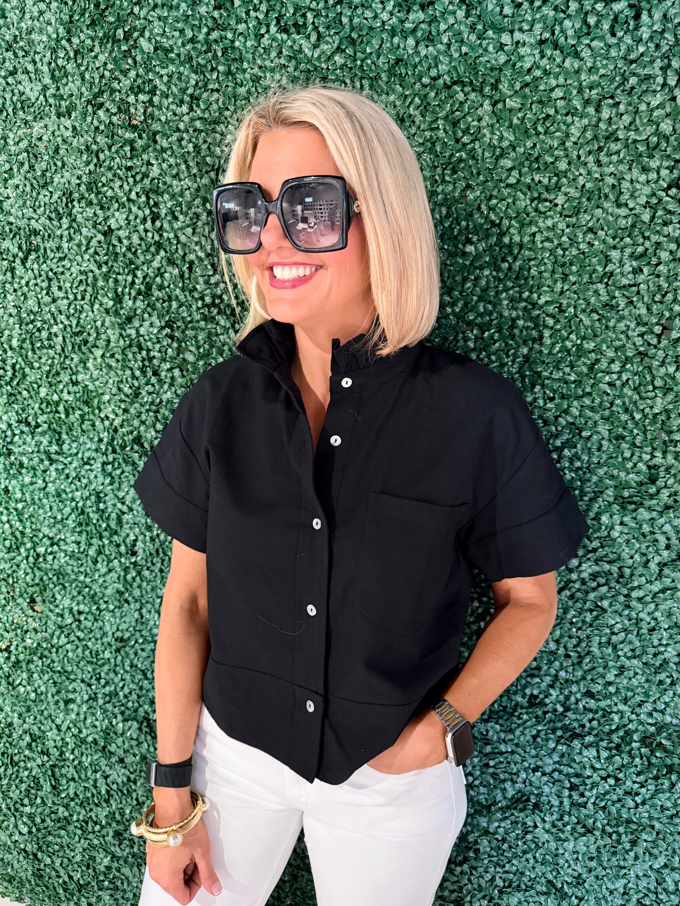 Elevate your everyday wardrobe with this striking Black Ruffled Collar Top. The delicate ruffled collar adds an instant touch of sophistication and personality to any outfit, making it perfect for both casual days and polished occasions. Crafted in a timeless black hue, this versatile piece pairs effortlessly with jeans, skirts, or trousers. Whether you're heading to the office or out for a night with friends, this top delivers style and confidence in one chic package. A wardrobe essential that transforms your look with minimal effort.