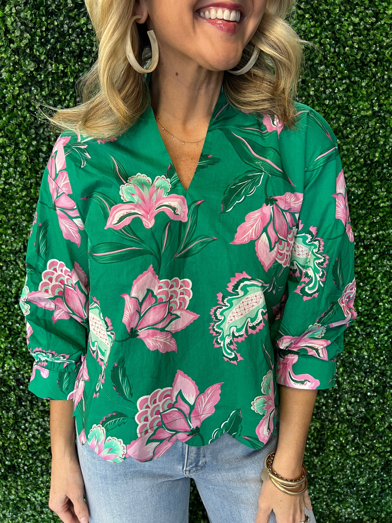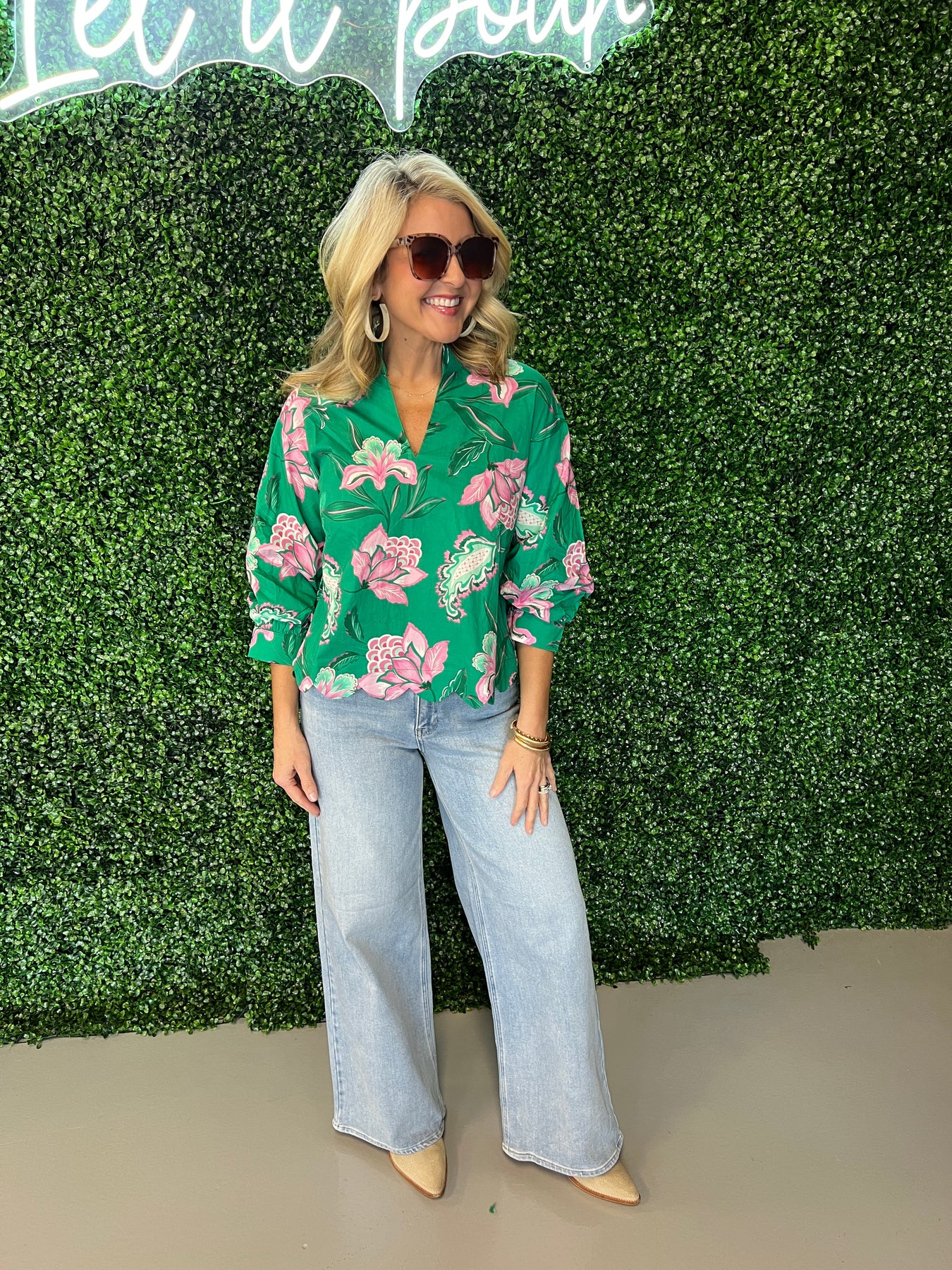 Elevate your everyday wardrobe with this stunning green floral split neck top. The delicate floral print brings natural elegance to any outfit, while the distinctive split neckline adds a modern, fashion-forward touch. Crafted for comfort and style, this versatile piece transitions seamlessly from casual days to evening occasions. The soft fabric drapes beautifully, flattering various body types while keeping you cool and comfortable. Perfect for pairing with jeans, skirts, or trousers, this top is an essential addition to your closet that works harder than you'd expect.