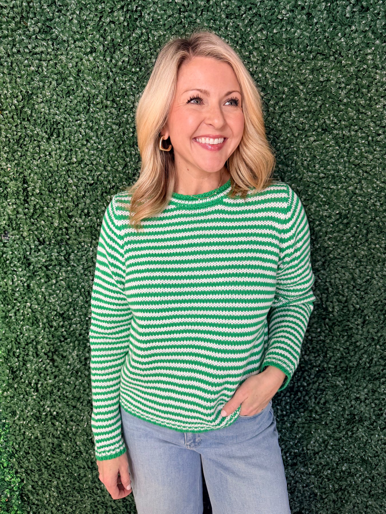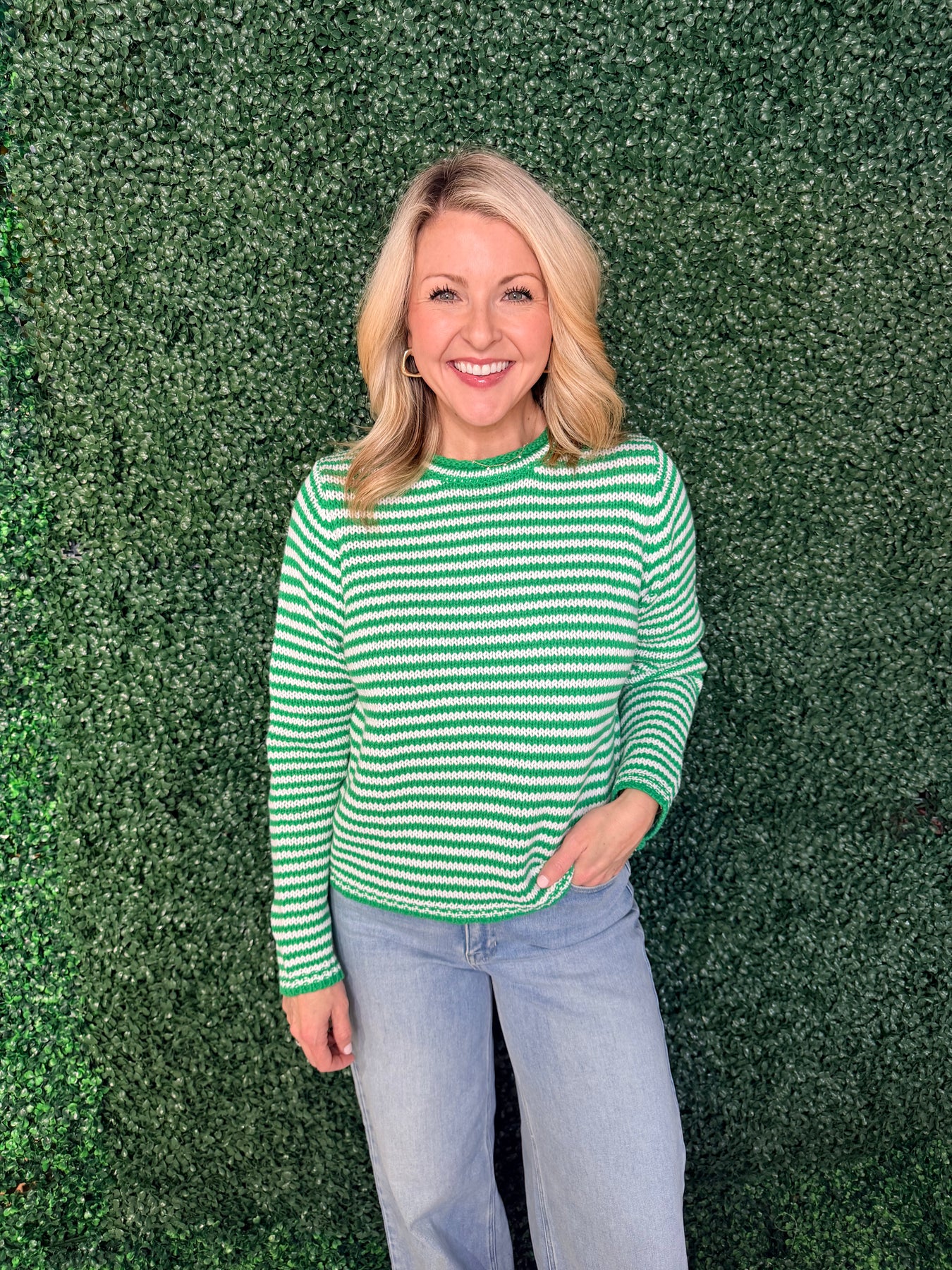Elevate your everyday wardrobe with this timeless green striped crew neck sweater. The classic horizontal stripes add visual interest while the crew neckline offers versatile styling options for any occasion. Crafted for comfort and durability, this sweater layers beautifully over tees or pairs perfectly with your favorite jeans. Whether you're heading to the office or enjoying a casual weekend, this wardrobe essential delivers effortless style that works season after season. A smart investment piece that transitions seamlessly from fall through spring.