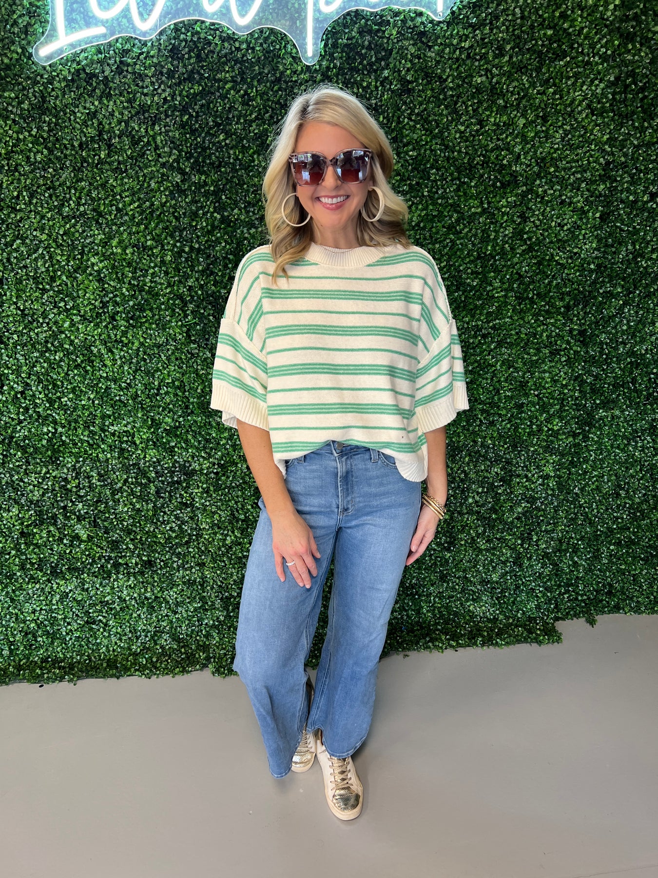 Green Striped Knit Sweater