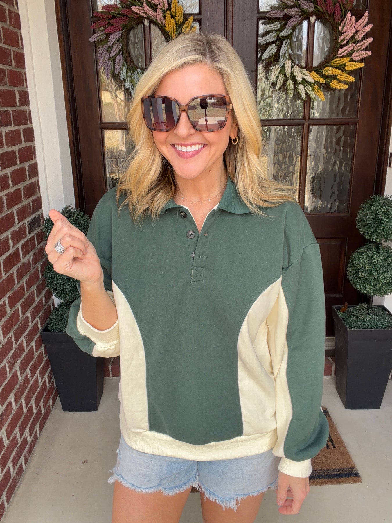 Elevate your casual wardrobe with this striking Long Sleeve Color-Block Polo Sweatshirt. The bold color-blocking design adds visual interest and modern style to your everyday look, while the soft sweatshirt fabric delivers all-day comfort. Perfect for layering or wearing solo, this versatile piece transitions seamlessly from weekend errands to relaxed social gatherings. The classic polo collar gives it a polished touch that works harder than a standard sweatshirt, making it an essential addition to any closet. Comfortable, stylish, and endlessly wearable—this is the piece you'll reach for again and again.