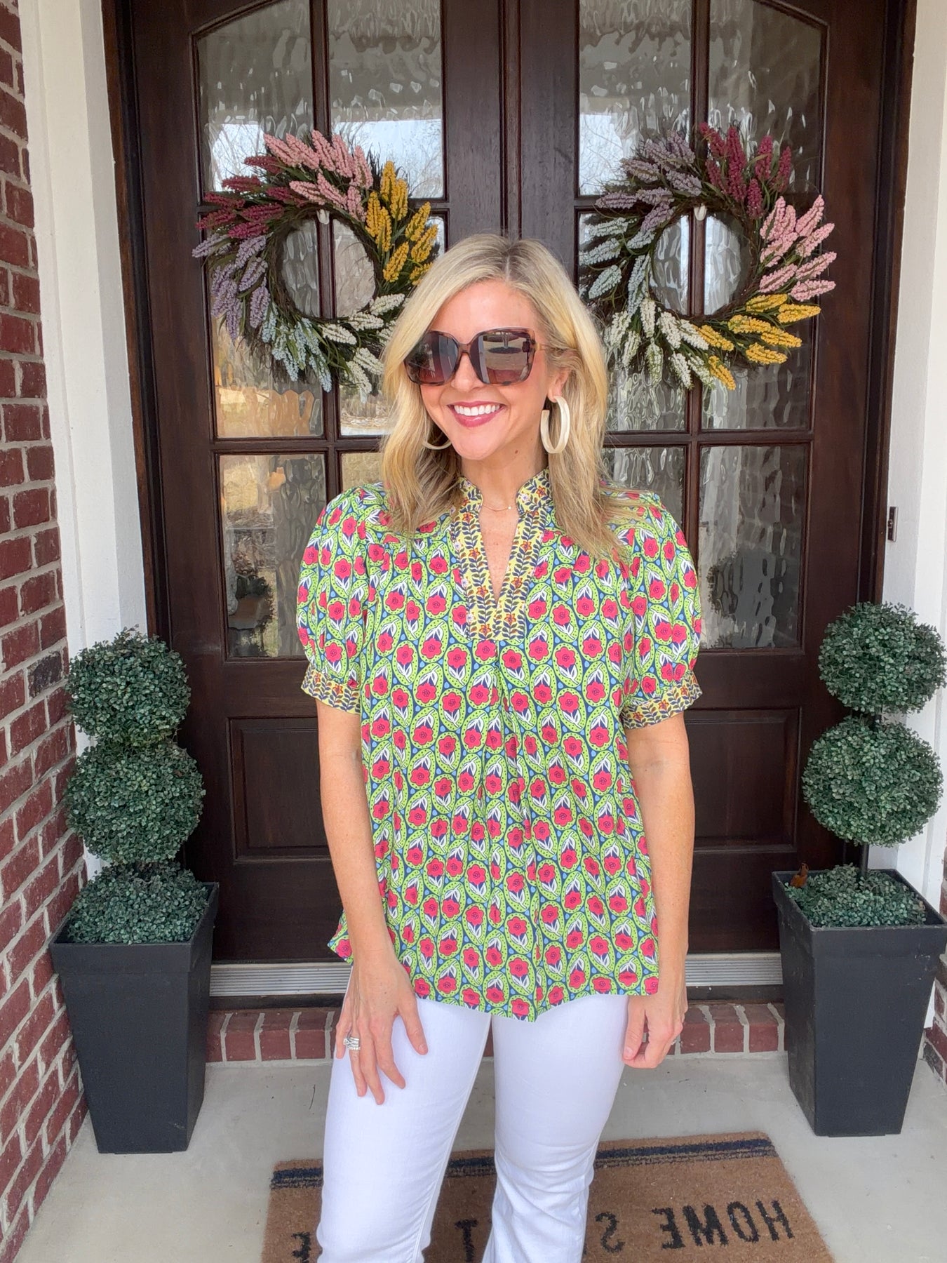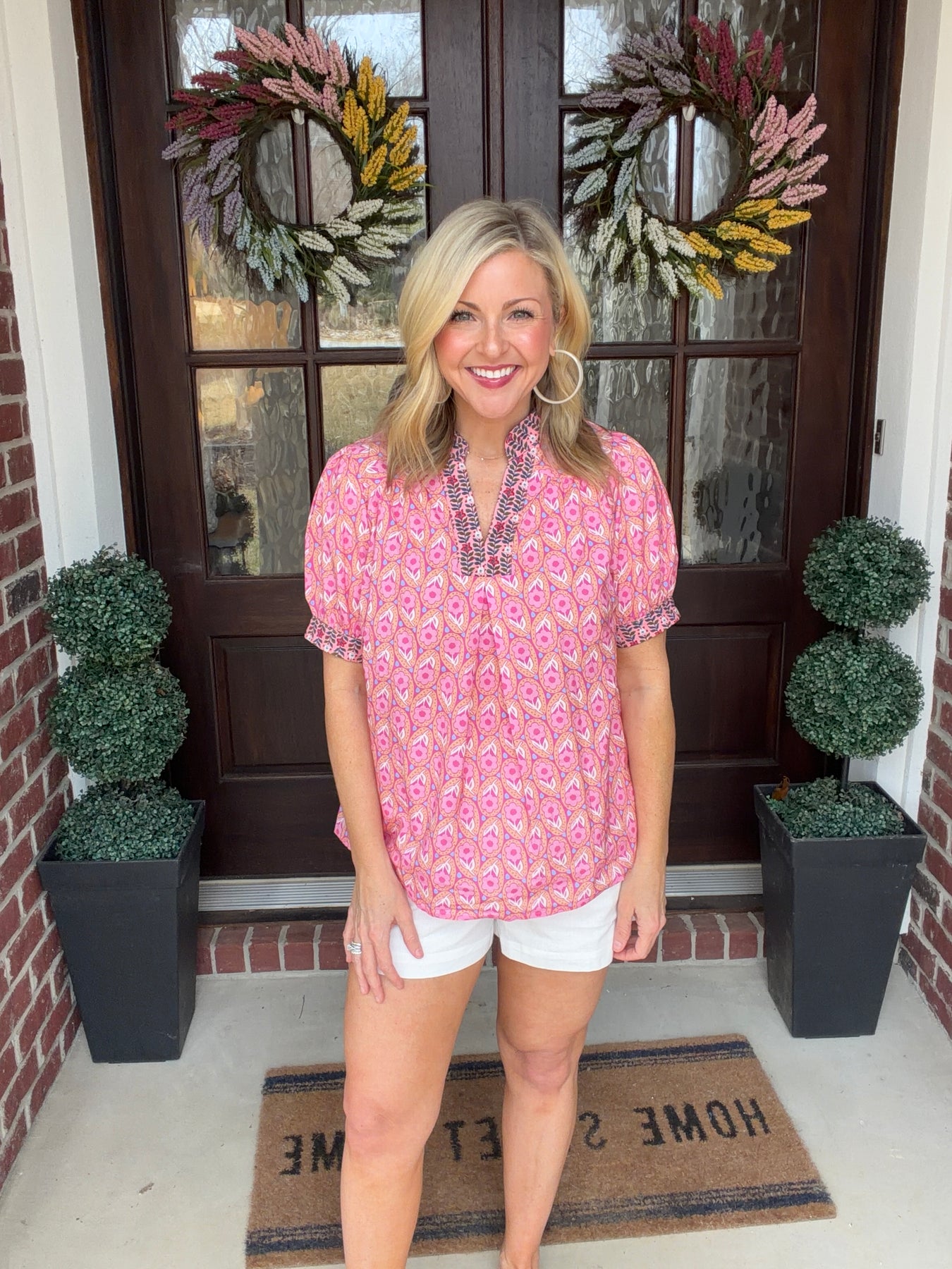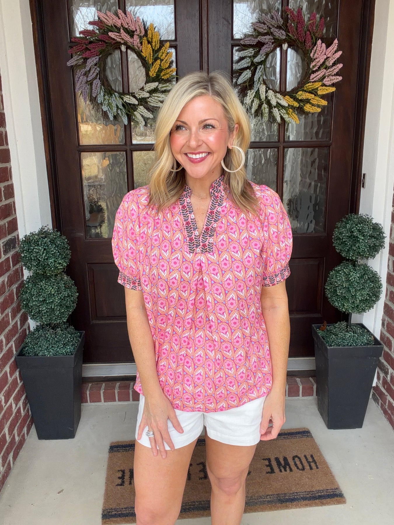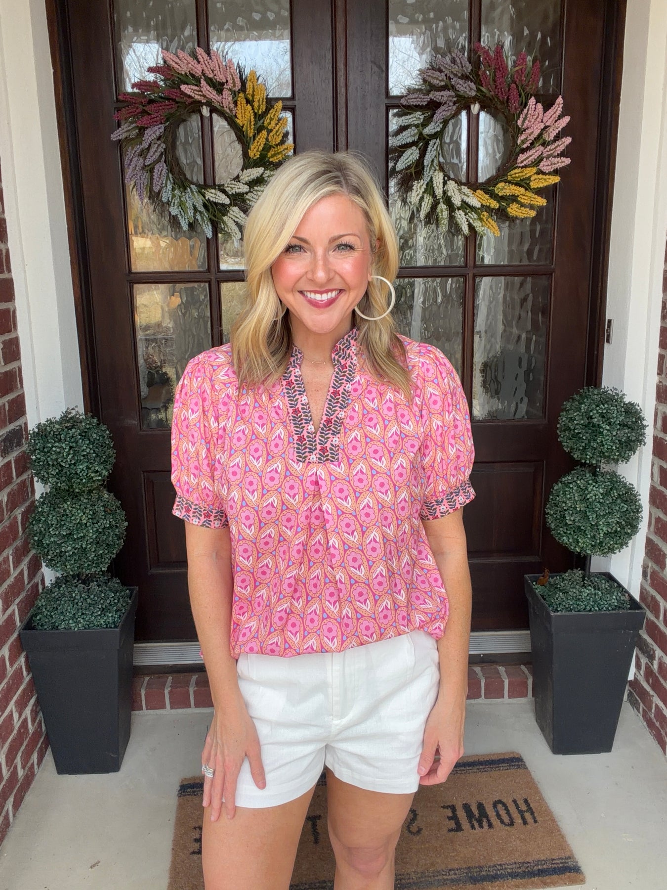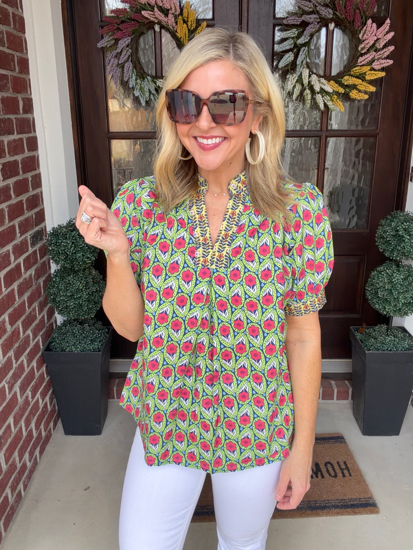 Embrace effortless bohemian style with this charming puff sleeve top. The split neckline adds a modern twist to classic boho aesthetics, while voluminous sleeves create a romantic, flowing silhouette. Perfect for layering or wearing solo, this versatile piece transitions seamlessly from casual days to evening outings. Crafted for comfort and movement, it's an essential addition to any free-spirited wardrobe.