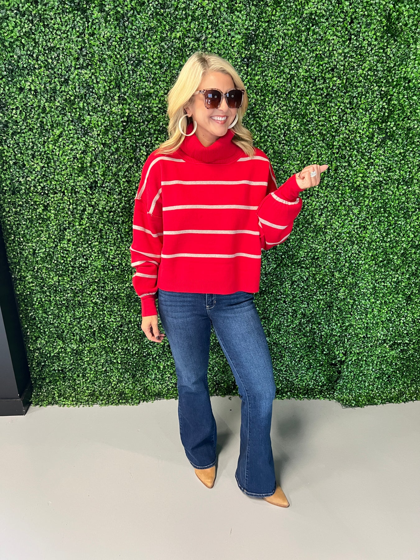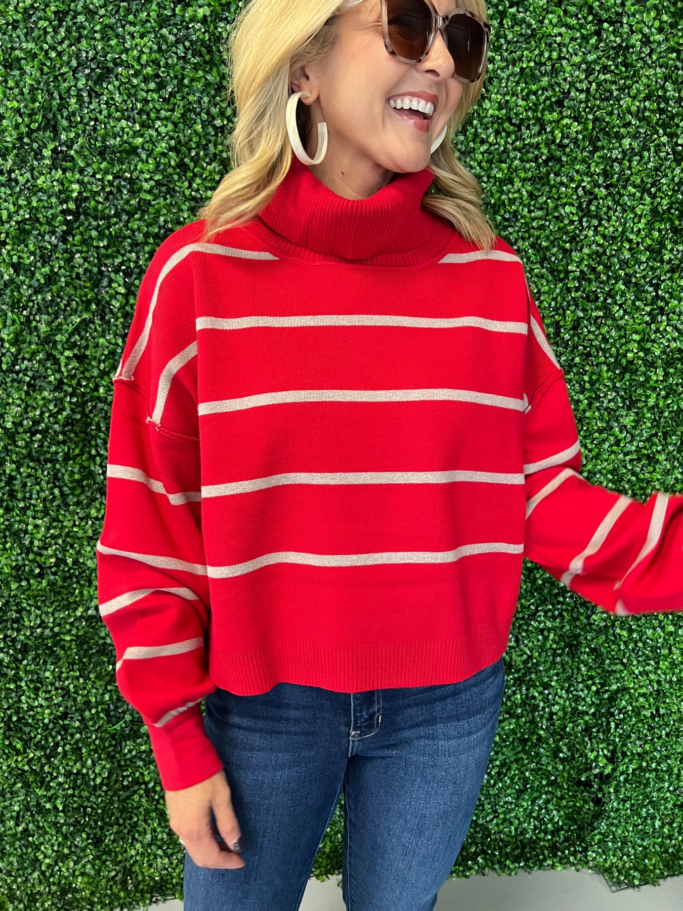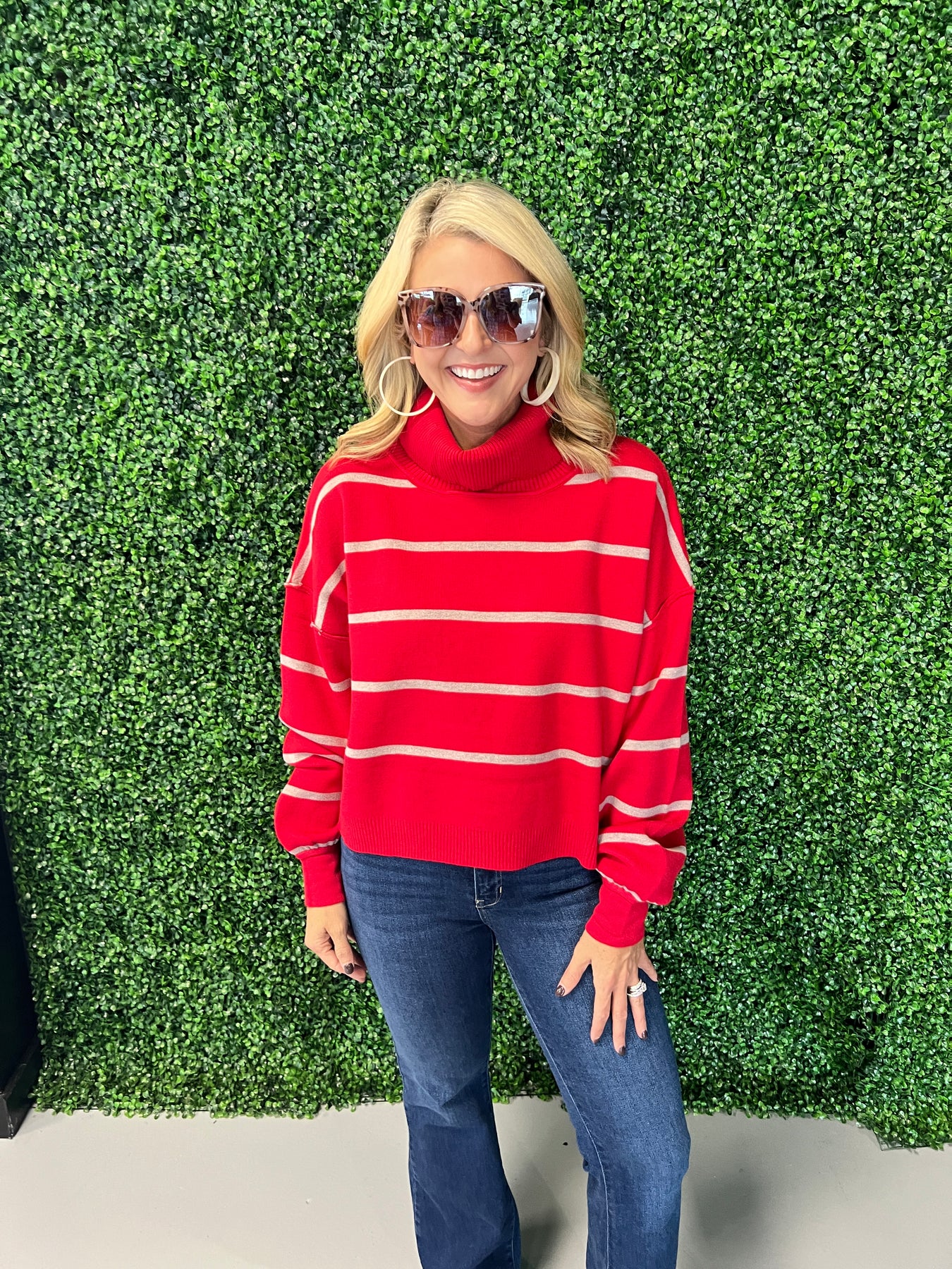 Elevate your wardrobe with this Mock Neck Striped Cropped Sweater. Its chic striped design pairs effortlessly with high-waisted jeans or skirts, while the cropped fit adds a trendy edge. The mock neck offers cozy warmth without bulk, making it perfect for layering or wearing alone. Comfortable and stylish, this sweater is a versatile addition that keeps you looking polished and on-trend all season.