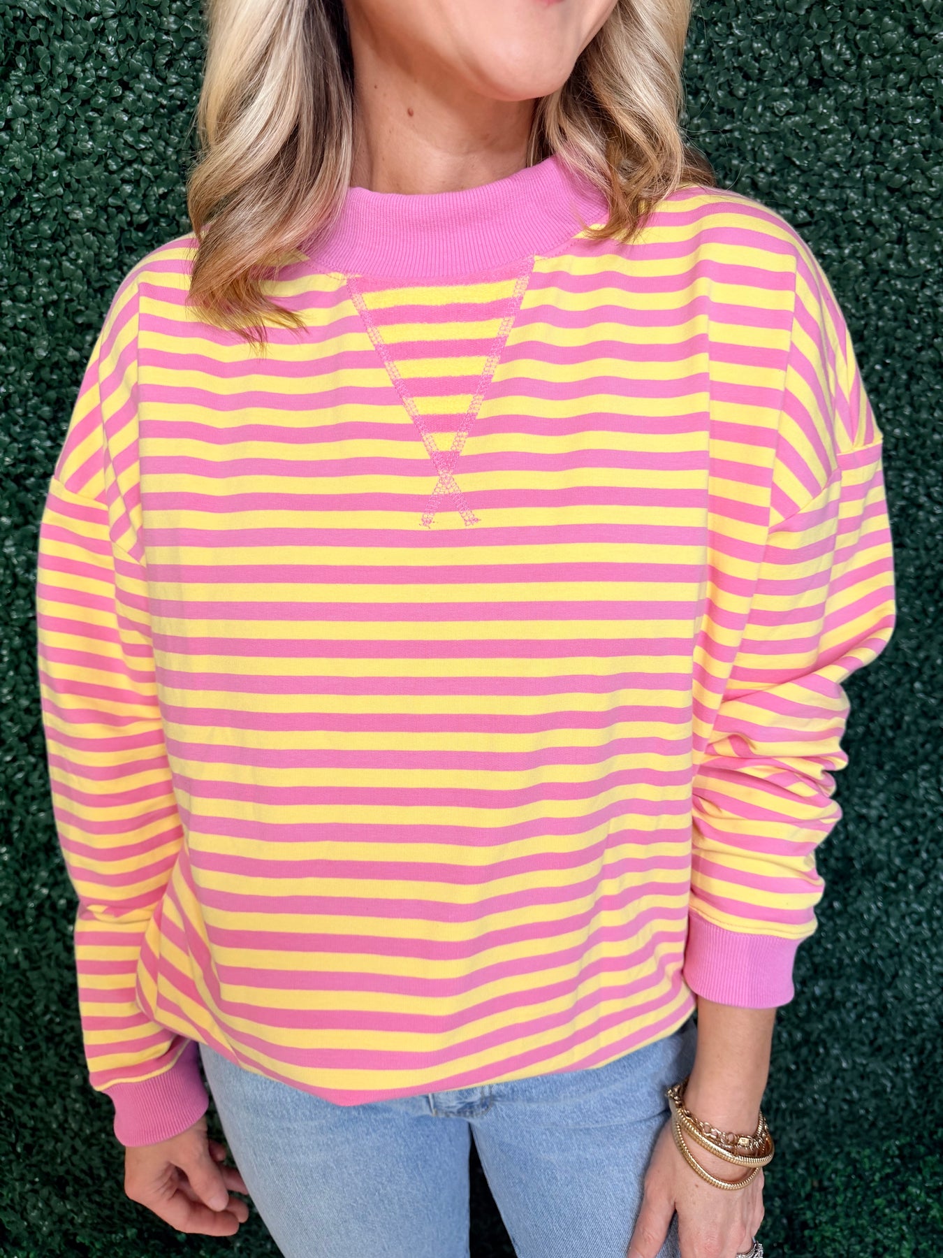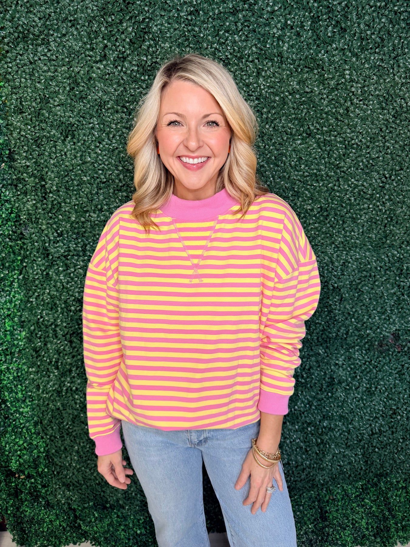 Elevate your loungewear game with this mock neck striped terry sweatshirt—the perfect blend of comfort and style. Crafted from soft, breathable terry fabric, it keeps you cozy whether you're working from home, running errands, or unwinding after a long day. The classic striped pattern adds visual interest, while the mock neck provides a polished, put-together look. Versatile enough to pair with joggers or jeans, this sweatshirt transitions seamlessly from casual to slightly dressed up. Invest in a piece that feels as good as it looks.