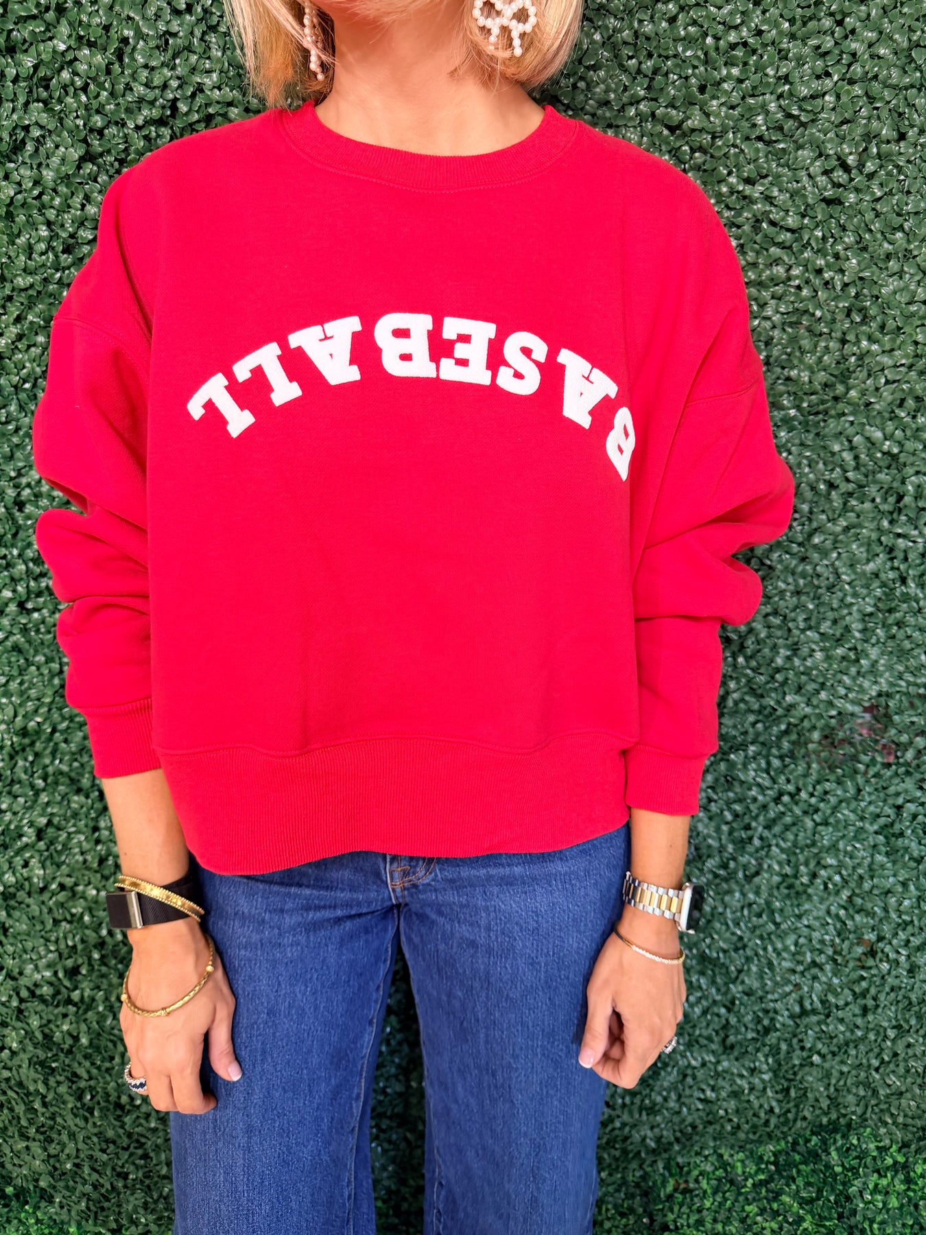 Flip the script with this playful cropped sweatshirt featuring an upside-down baseball graphic that demands a double-take. The oversized puff print adds dimension and attitude to your casual rotation, while the cropped silhouette keeps things modern and flattering. Crafted from soft sweatshirt fabric, it's perfect for layering or wearing solo. Make a statement that's equal parts fun and fashion-forward—because sometimes the best style moments come from turning expectations on their head.