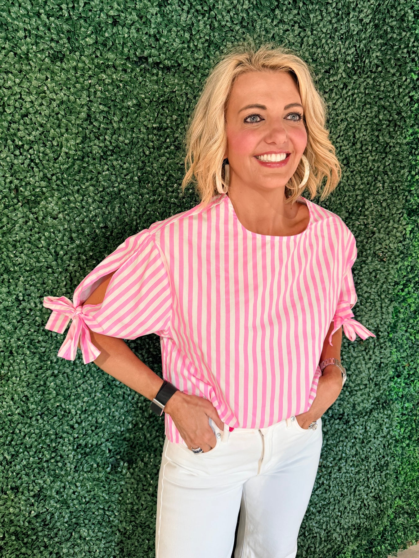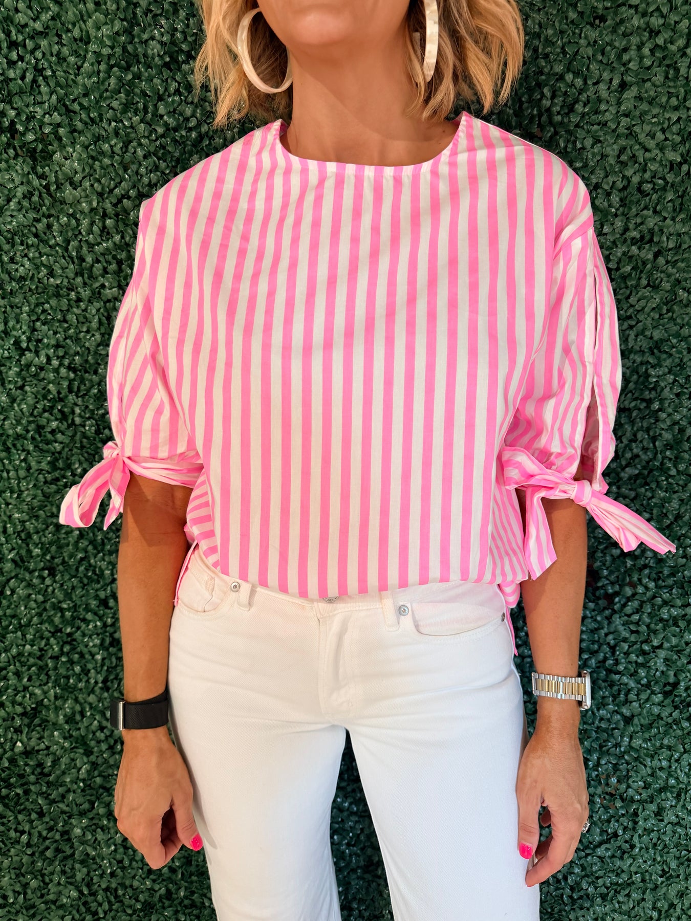 Elevate your wardrobe with this charming round neck top featuring delicate bow detailing. The thoughtfully designed sleeves add a touch of elegance, making it perfect for both casual outings and dressed-up occasions. Crafted for comfort and style, this versatile piece pairs effortlessly with jeans, skirts, or trousers. A timeless addition that brings feminine flair to any ensemble.