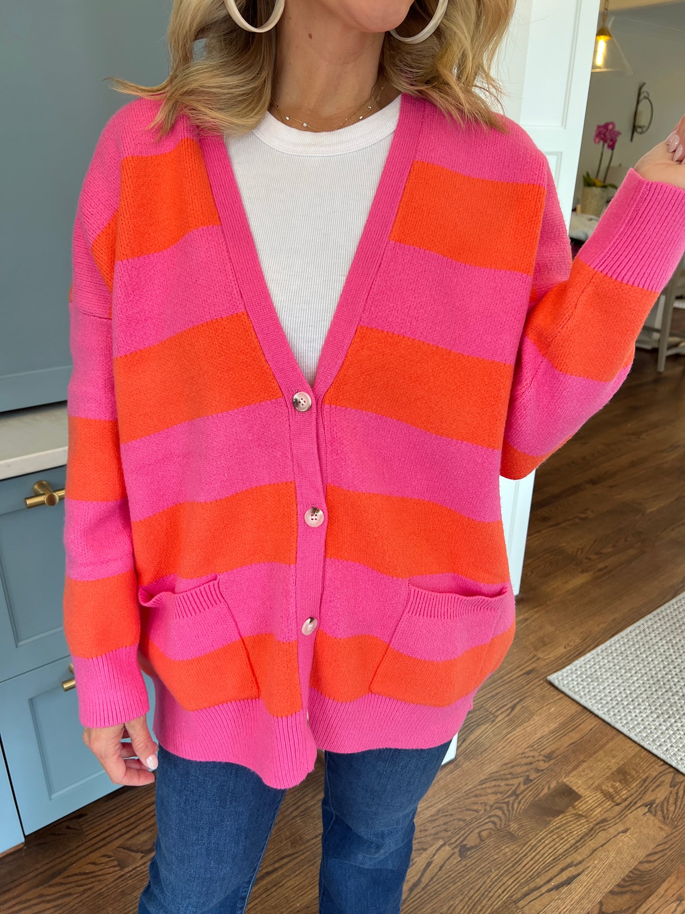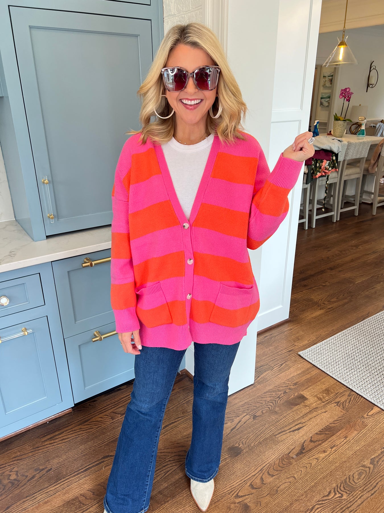 Elevate your casual wardrobe with this Striped V-Neck Oversized Cardigan. Designed for comfort and style, its relaxed fit drapes effortlessly while the classic stripes add a timeless touch. Perfect for layering on chilly days, this cardigan combines cozy warmth with versatile appeal, making it a must-have piece for effortless, everyday chic.