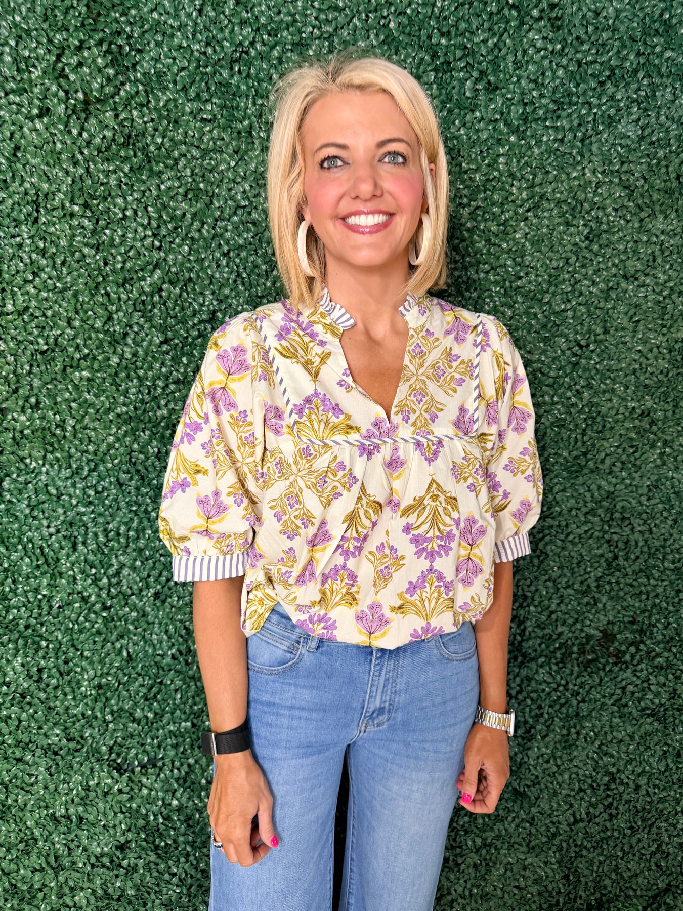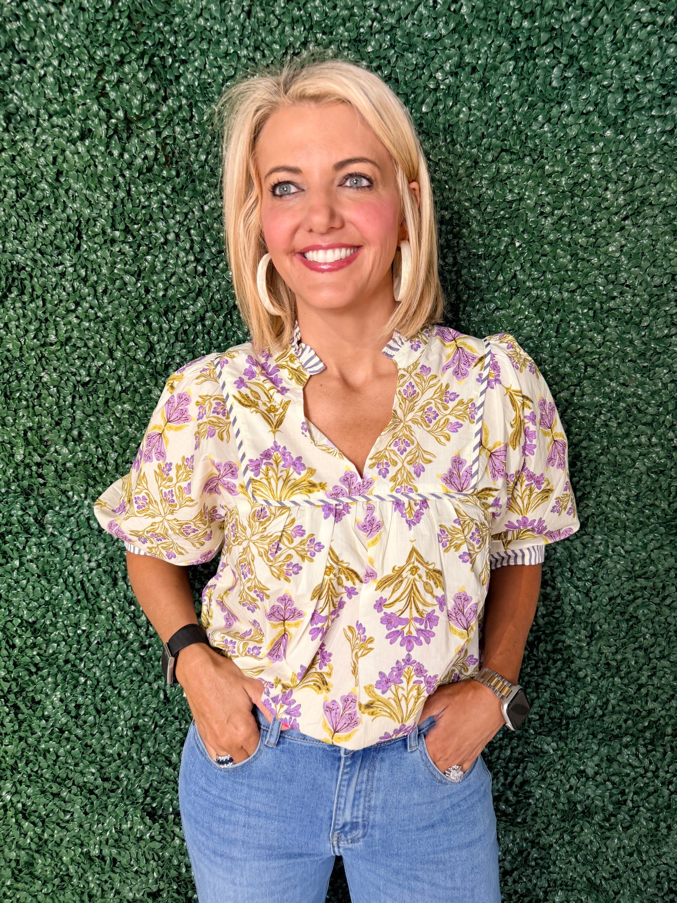 Elevate your casual wardrobe with this charming violet short sleeve top, featuring an eye-catching printed design that adds personality to any outfit. Crafted for comfort and style, this versatile piece pairs effortlessly with jeans, skirts, or shorts for a polished everyday look. Perfect for spring and summer seasons, the breathable fabric keeps you cool while the vibrant color and unique print make a subtle statement. A wardrobe essential that transitions seamlessly from day to night.