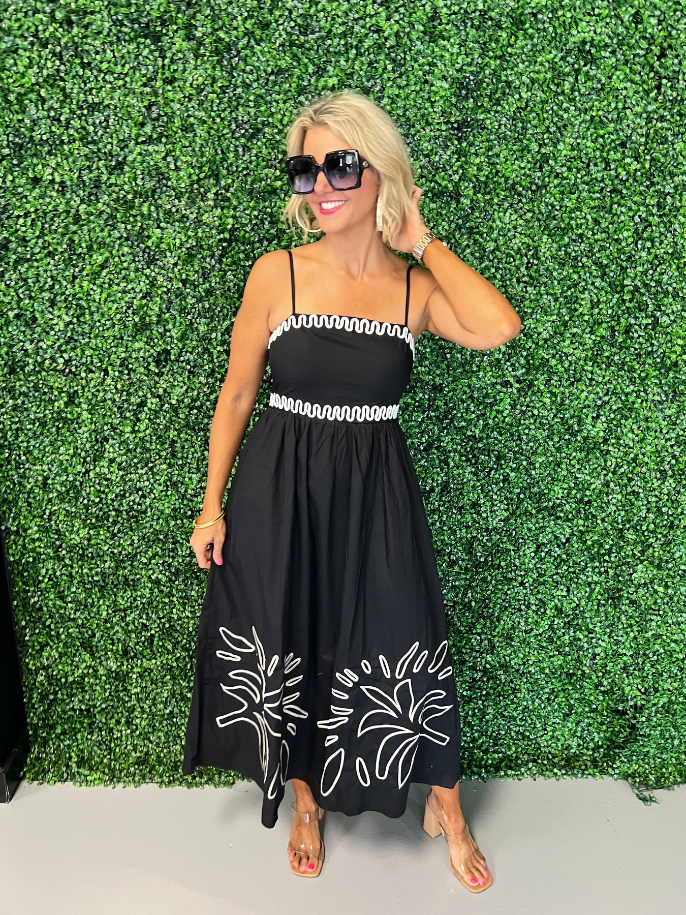 Elevate your style with this Black Embroidered Sleeveless Dress, designed to combine elegance and comfort. The intricate embroidery adds a touch of sophistication, while the sleeveless cut ensures a flattering fit and freedom of movement. Perfect for both formal occasions and stylish evenings out, this dress makes a confident statement wherever you go.