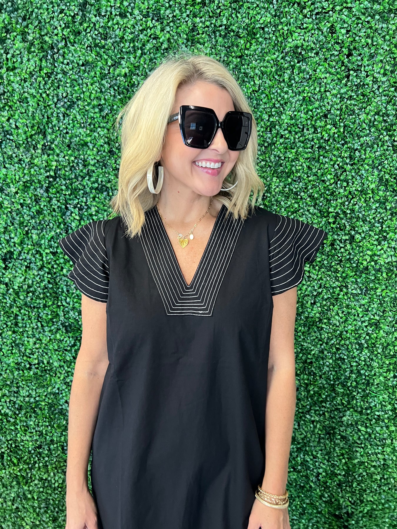 Elevate your wardrobe with this Black Flutter Sleeve Dress, designed to combine elegance and comfort effortlessly. The delicate flutter sleeves add a touch of femininity and movement, making it perfect for both casual outings and special occasions. Its classic black color ensures versatility, allowing you to dress it up with accessories or keep it simple for a chic, understated look. Experience a flattering fit that enhances your silhouette while keeping you comfortable all day or night. Make a statement with timeless style that moves with you.