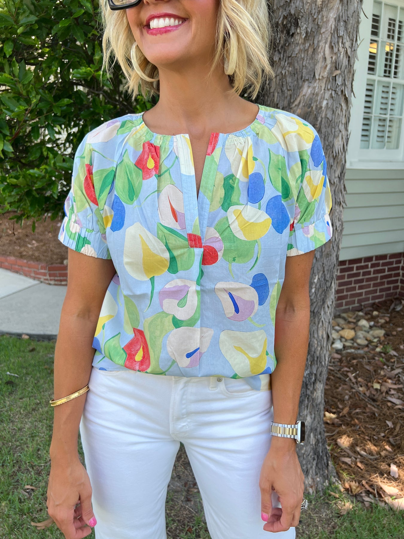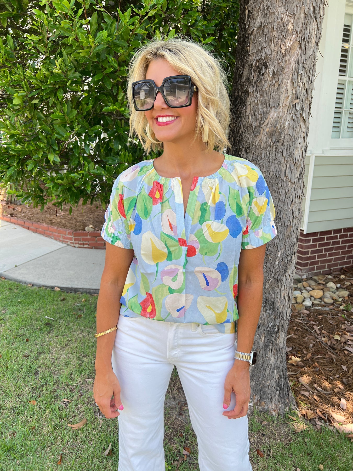 Elevate your wardrobe with the Blue Floral Mix Top, featuring a vibrant blend of floral patterns that bring fresh, feminine charm to any outfit. Its lightweight fabric ensures all-day comfort, while the flattering cut enhances your silhouette effortlessly. Perfect for both casual outings and dressier occasions, this top adds a touch of elegance and color to your everyday style.
