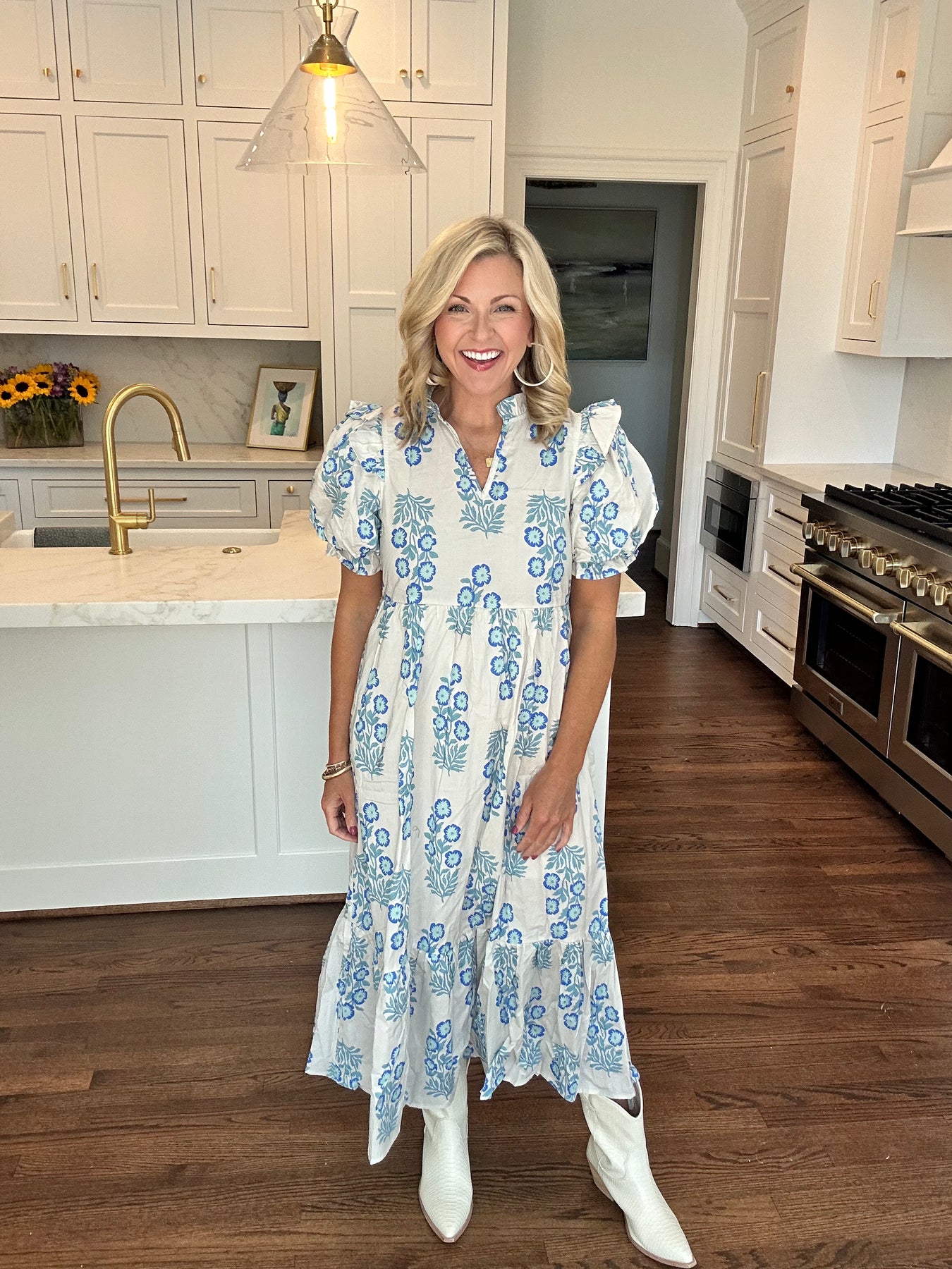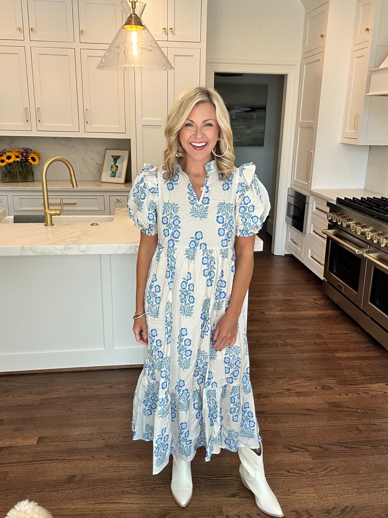 Elevate your wardrobe with this Blue Floral Print Puff Sleeve Midi Dress. Its charming floral pattern and puff sleeves create a timeless, feminine silhouette perfect for any occasion. The midi length offers versatile elegance, ideal for daytime events or evening gatherings. Crafted for comfort and style, this dress makes a confident statement wherever you go.