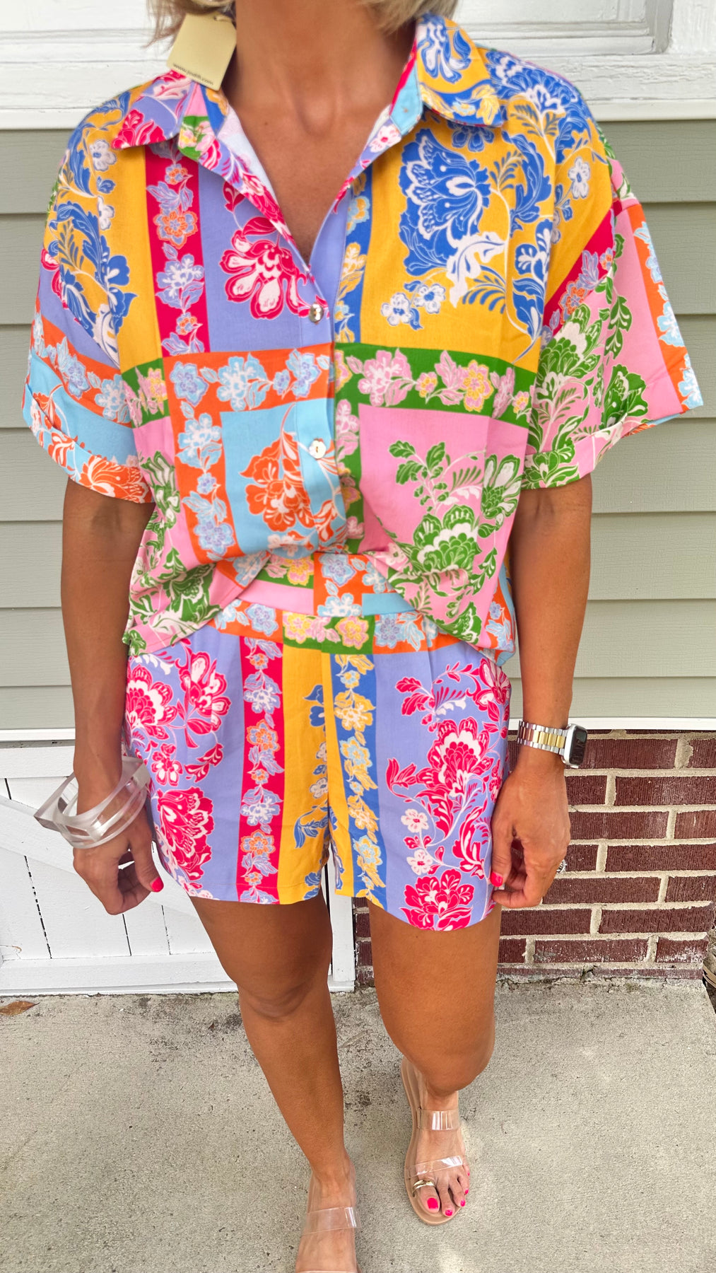 Embrace effortless style with the Boho Floral Short Set, featuring a breezy, floral print perfect for warm days. This coordinated set offers comfort and a flattering fit, making it ideal for casual outings or relaxed gatherings. Elevate your wardrobe with this versatile, easy-to-wear ensemble that combines bohemian charm with modern ease.