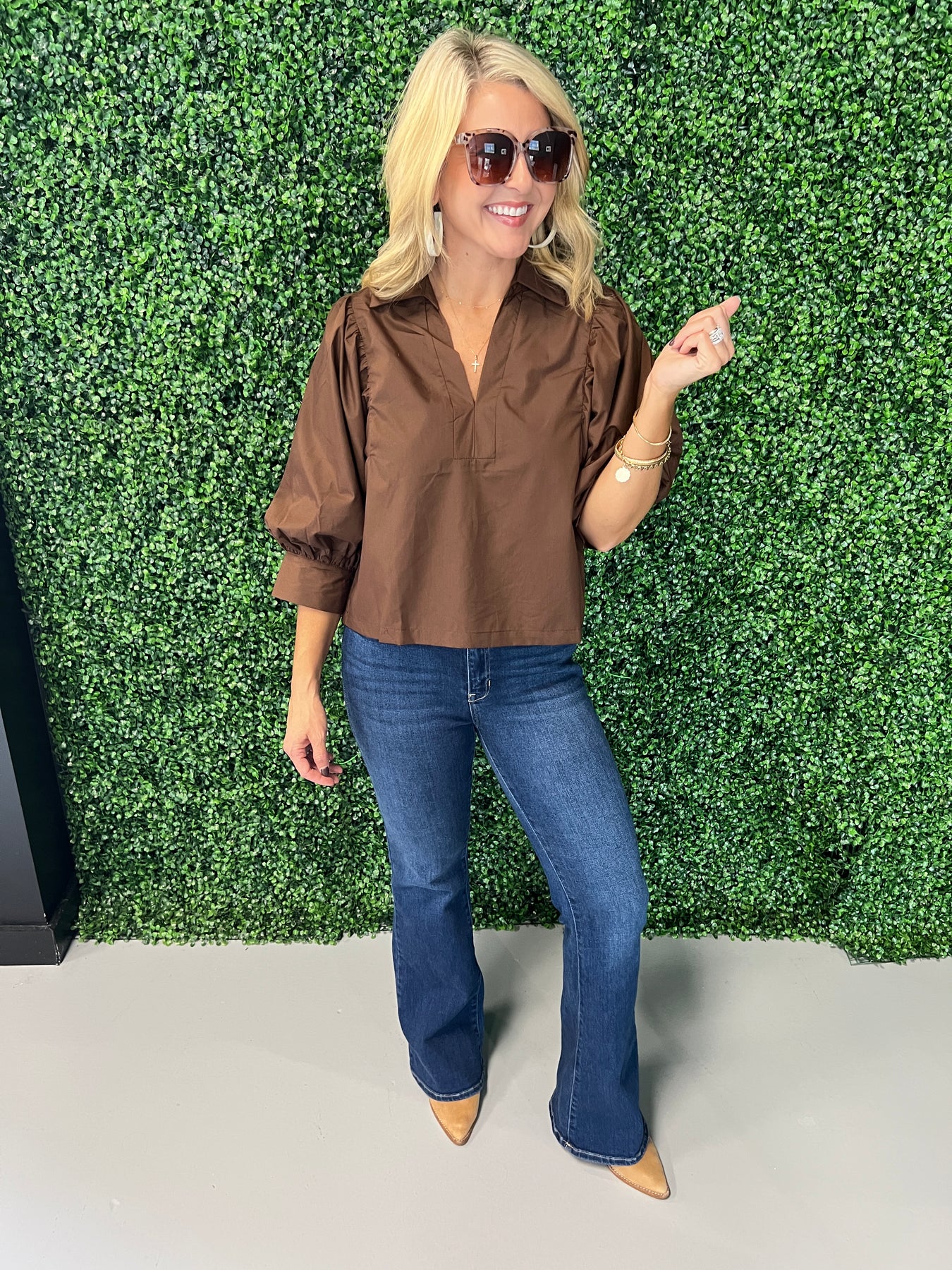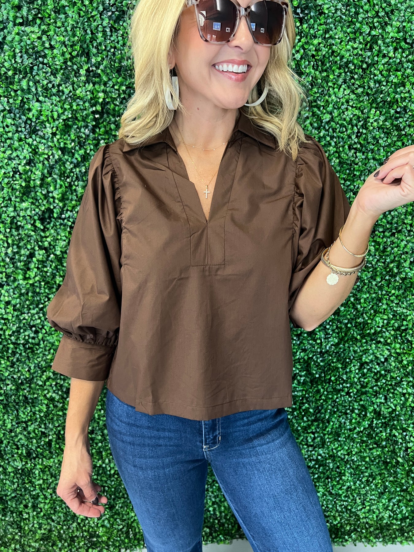 Elevate your everyday wardrobe with this Brown 3/4 Sleeve V-neck Top. Its flattering neckline and comfortable sleeve length make it perfect for layering or wearing solo. Crafted for both style and ease, this top offers a versatile look that transitions effortlessly from casual days to relaxed evenings.