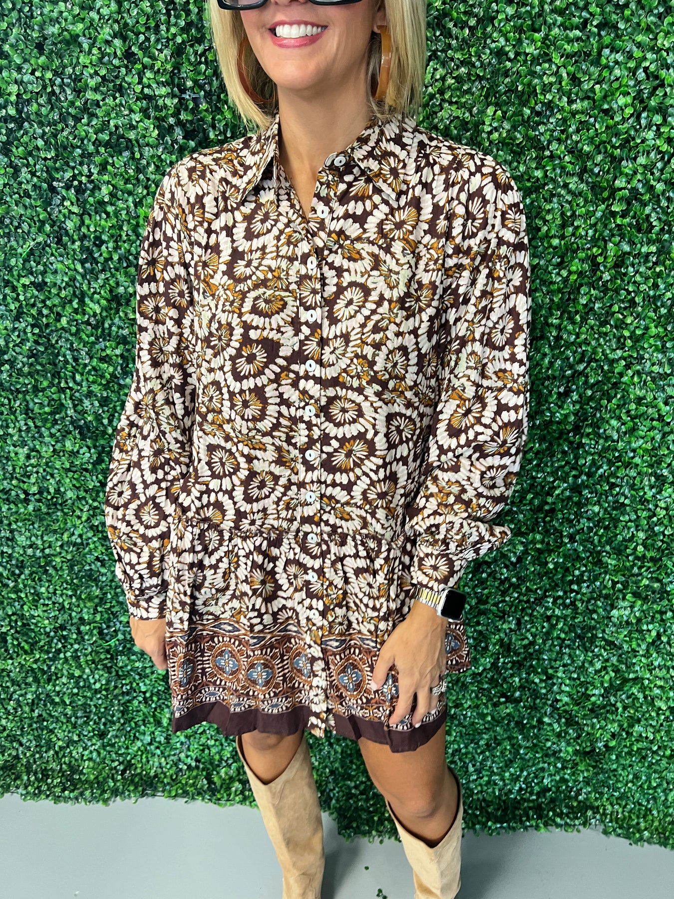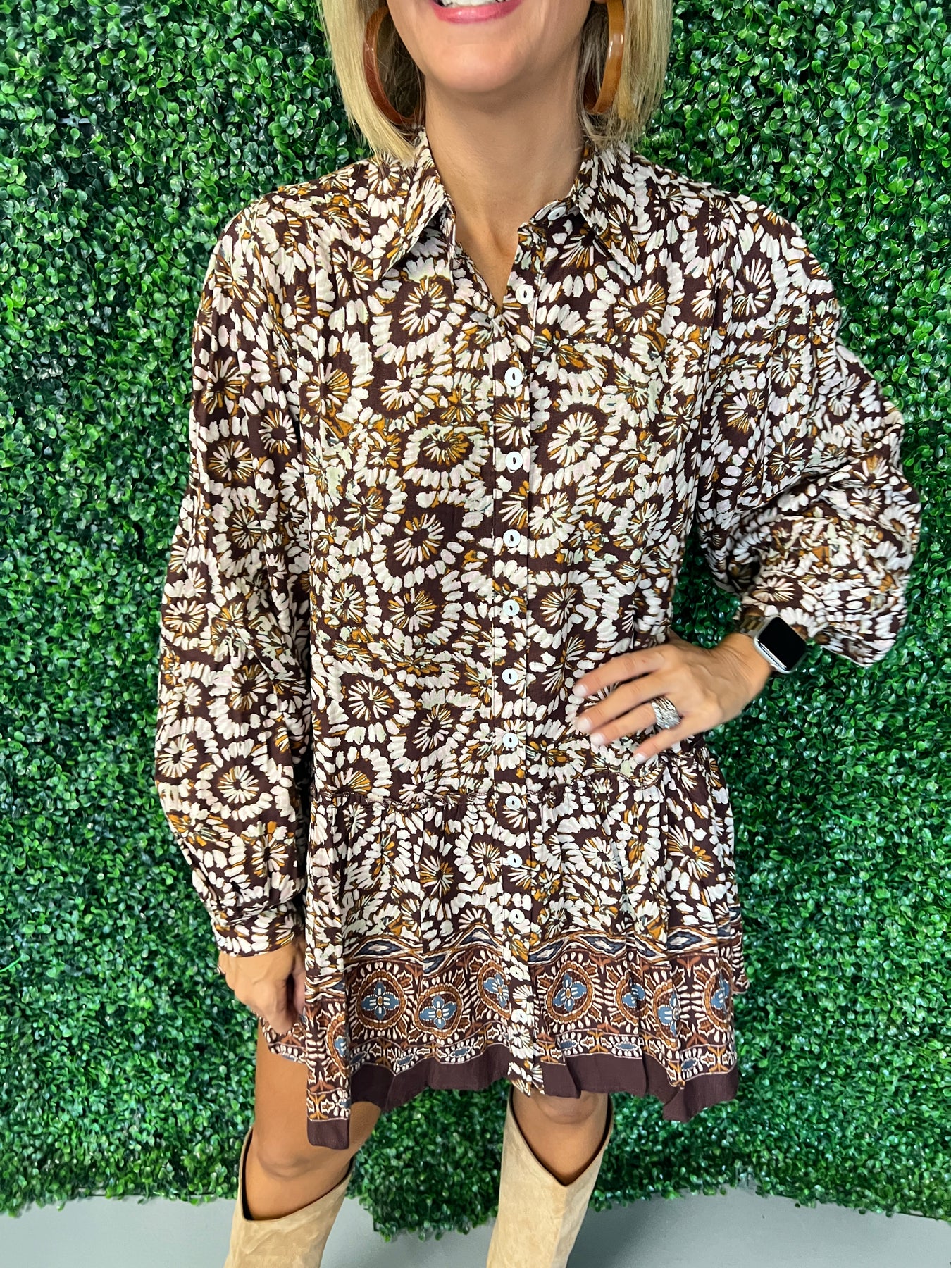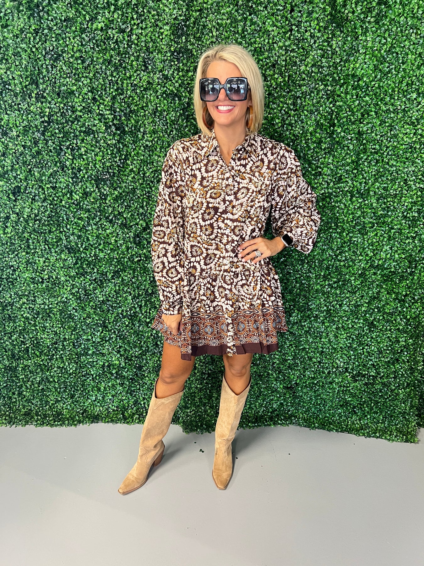 Elevate your style with the Brown Printed Bottom Tiered Mini Dress, designed to combine comfort and effortless charm. Its tiered silhouette adds playful volume and movement, while the warm brown print offers a versatile, on-trend look perfect for day or night. Light and breezy, this dress is ideal for those seeking a flattering fit without sacrificing ease. Make every occasion memorable with this standout piece that effortlessly blends casual elegance and modern flair.