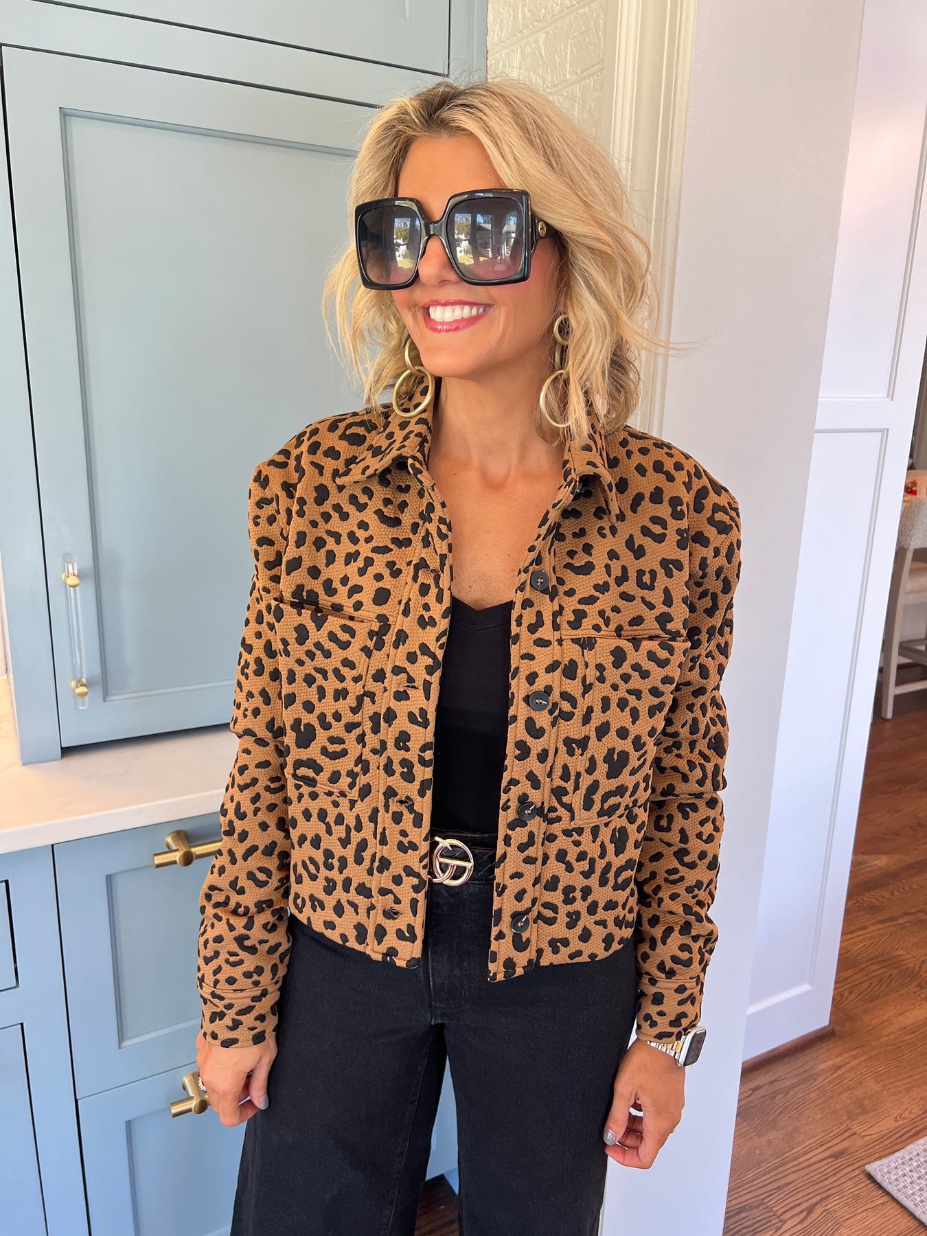 Stand out effortlessly with this Cheetah Print Cropped Jacket, a bold statement piece designed to elevate your style. Its cropped cut enhances your silhouette, while the eye-catching cheetah pattern adds a fierce, fashionable edge. Perfect for layering, this jacket combines comfort and trend-setting appeal, making it an essential addition to your wardrobe for any season.