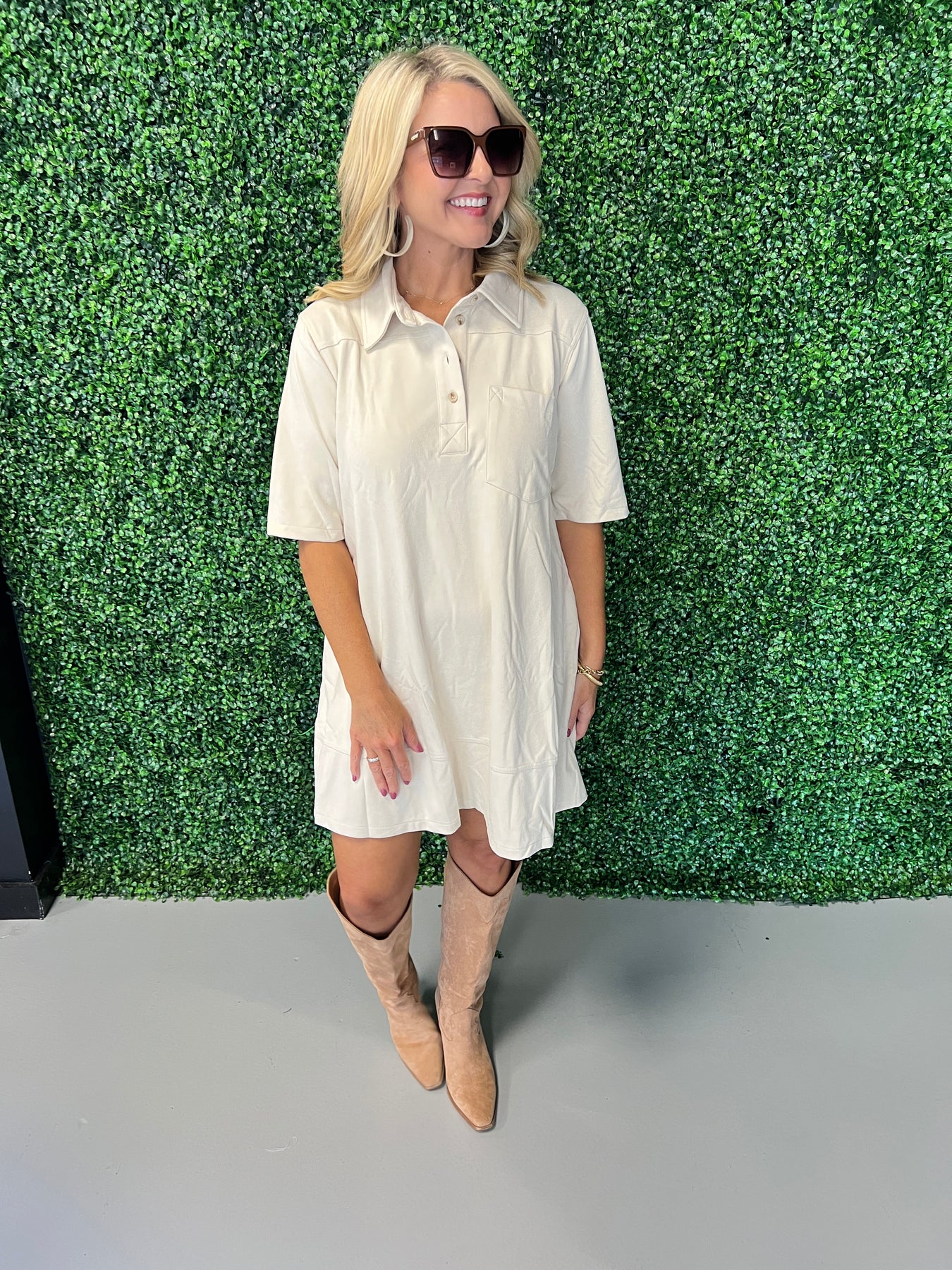 Elevate your style with this Collared Suede Mini Dress, designed to blend timeless sophistication with modern edge. Its soft suede fabric offers a luxurious feel, while the classic collar adds a polished touch. Perfect for day-to-night wear, this dress flatters your silhouette with its sleek mini length, making it an essential piece for confident, standout looks.