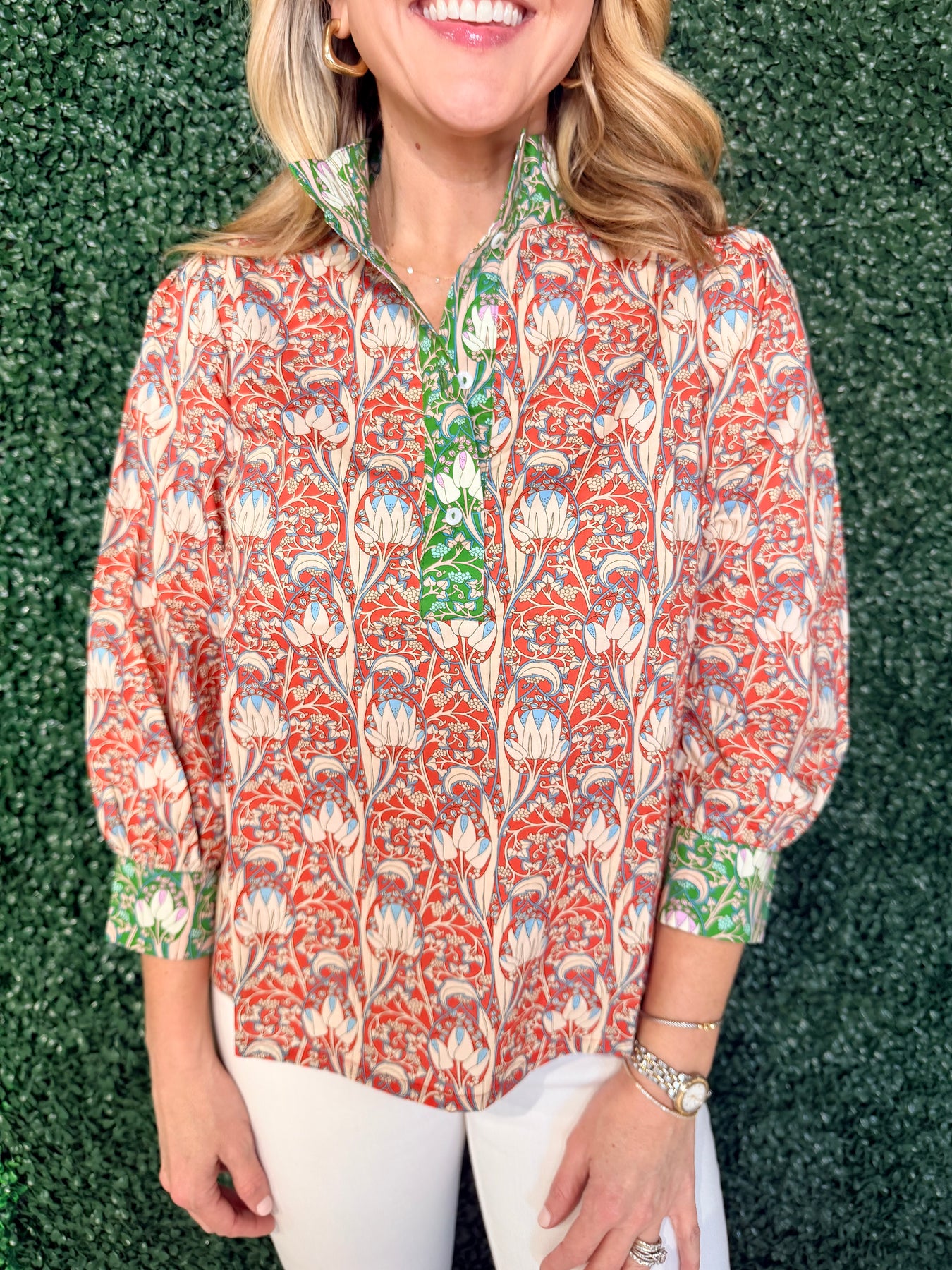 Elevate your wardrobe with this striking Color Block Floral Printed Top, where bold geometric color blocking meets delicate floral artistry. The eye-catching design combines vibrant hues with intricate botanical prints, creating a piece that transitions seamlessly from casual outings to weekend gatherings. Crafted for comfort and style, this top offers a modern silhouette that flatters various body types while making a confident fashion statement. Perfect for those who refuse to blend in, this versatile essential pairs effortlessly with your favorite denim or tailored trousers for an instantly polished look.