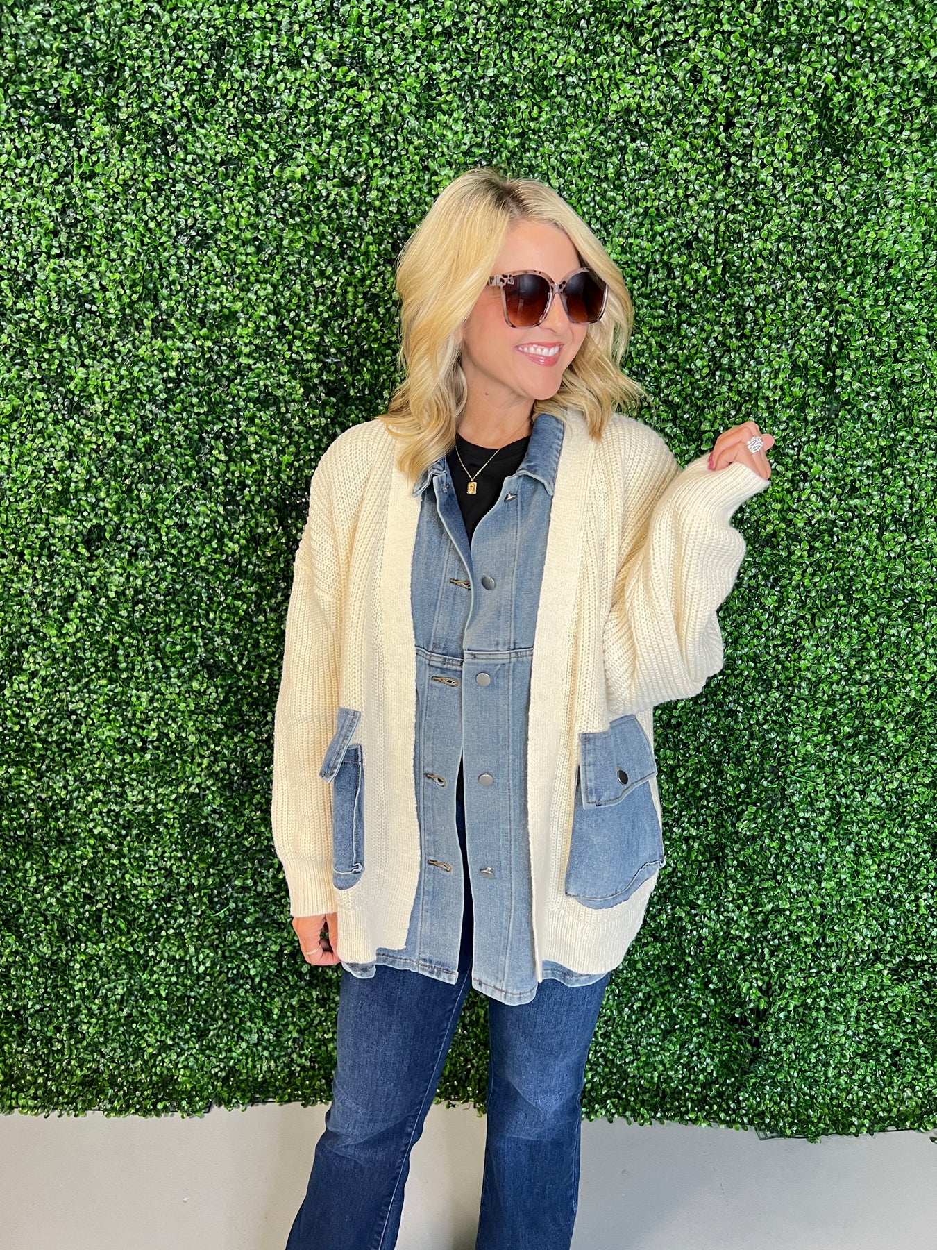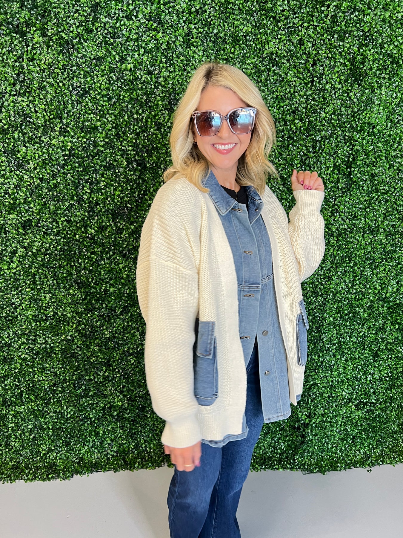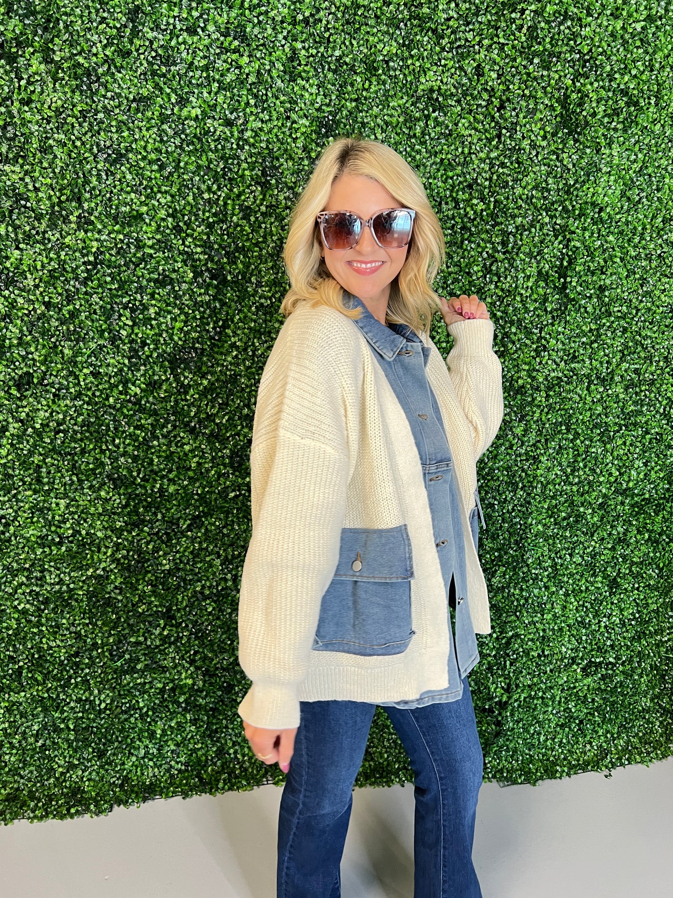 Denim Contrast Knit Jacket