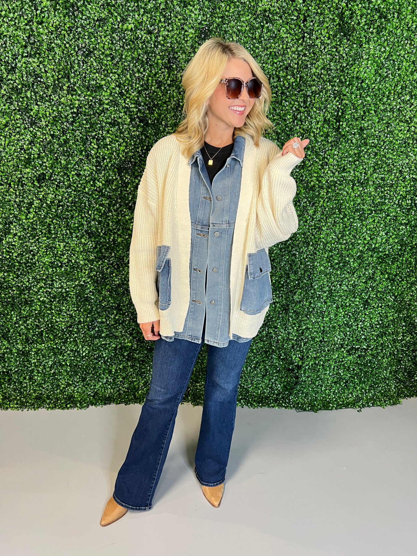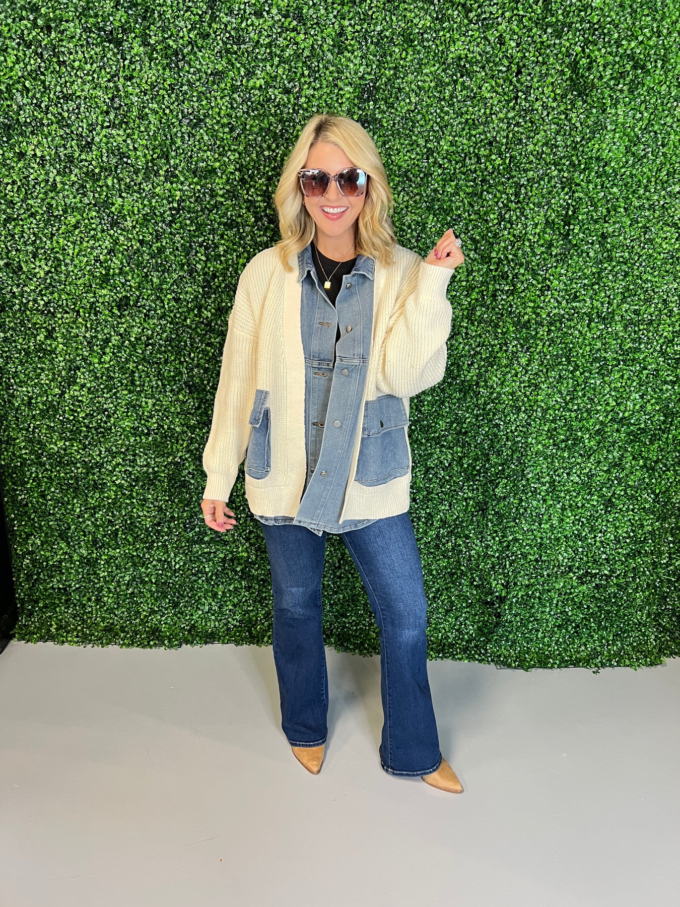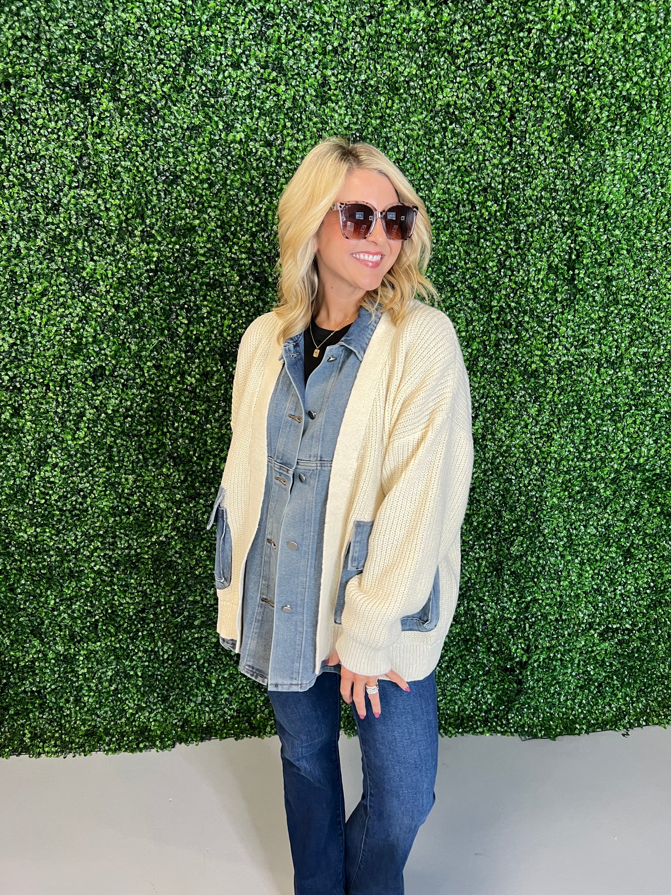Denim Contrast Knit Jacket