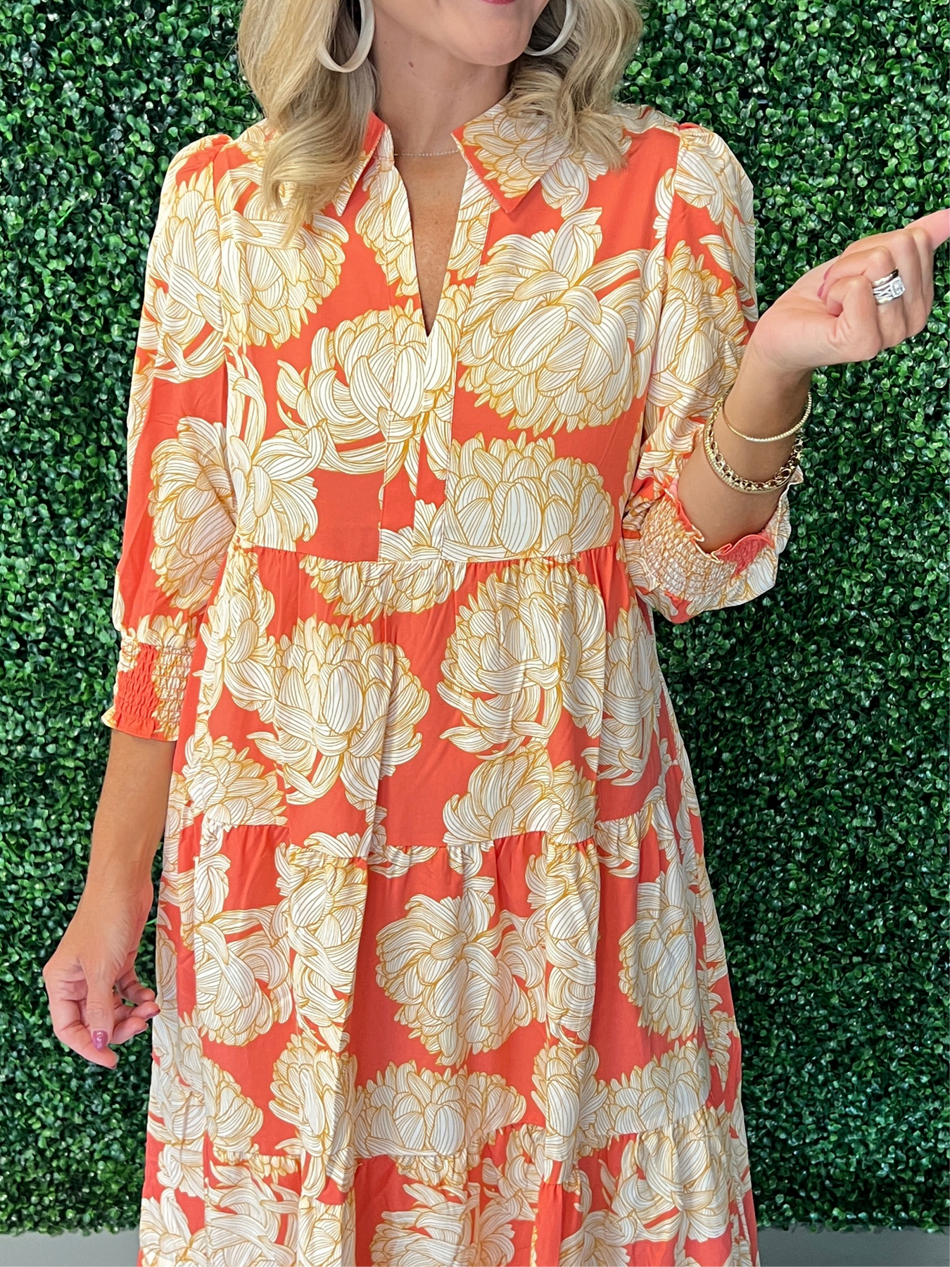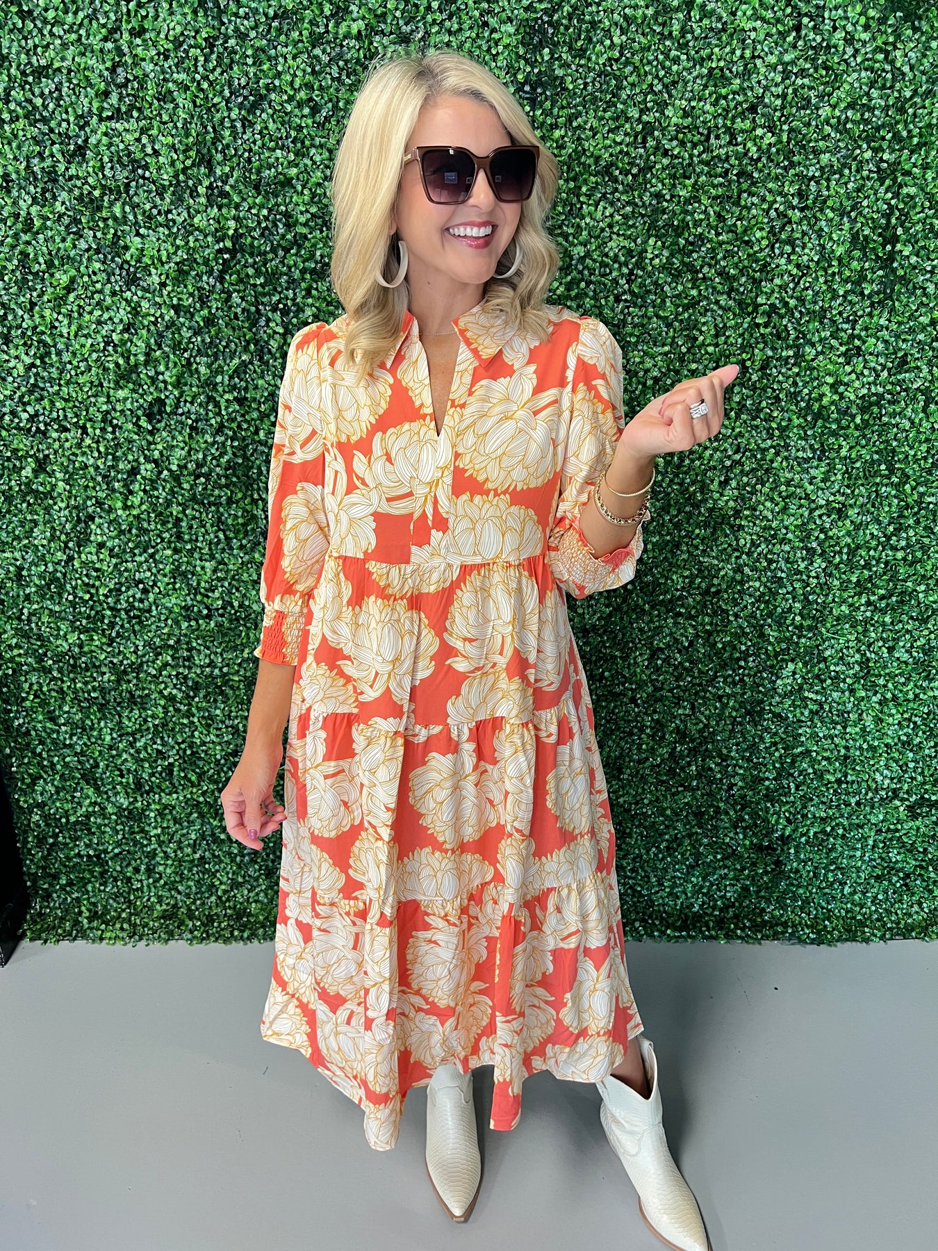 Embrace autumn elegance with the Eleanor Fall Floral Dress. Featuring a rich floral pattern inspired by fall’s vibrant hues, this dress blends comfort with style for effortless seasonal charm. Its flattering silhouette and soft fabric make it perfect for day-to-night wear, ensuring you feel confident and polished wherever you go. Add a touch of warmth and grace to your wardrobe with this timeless dress designed to celebrate the beauty of fall.