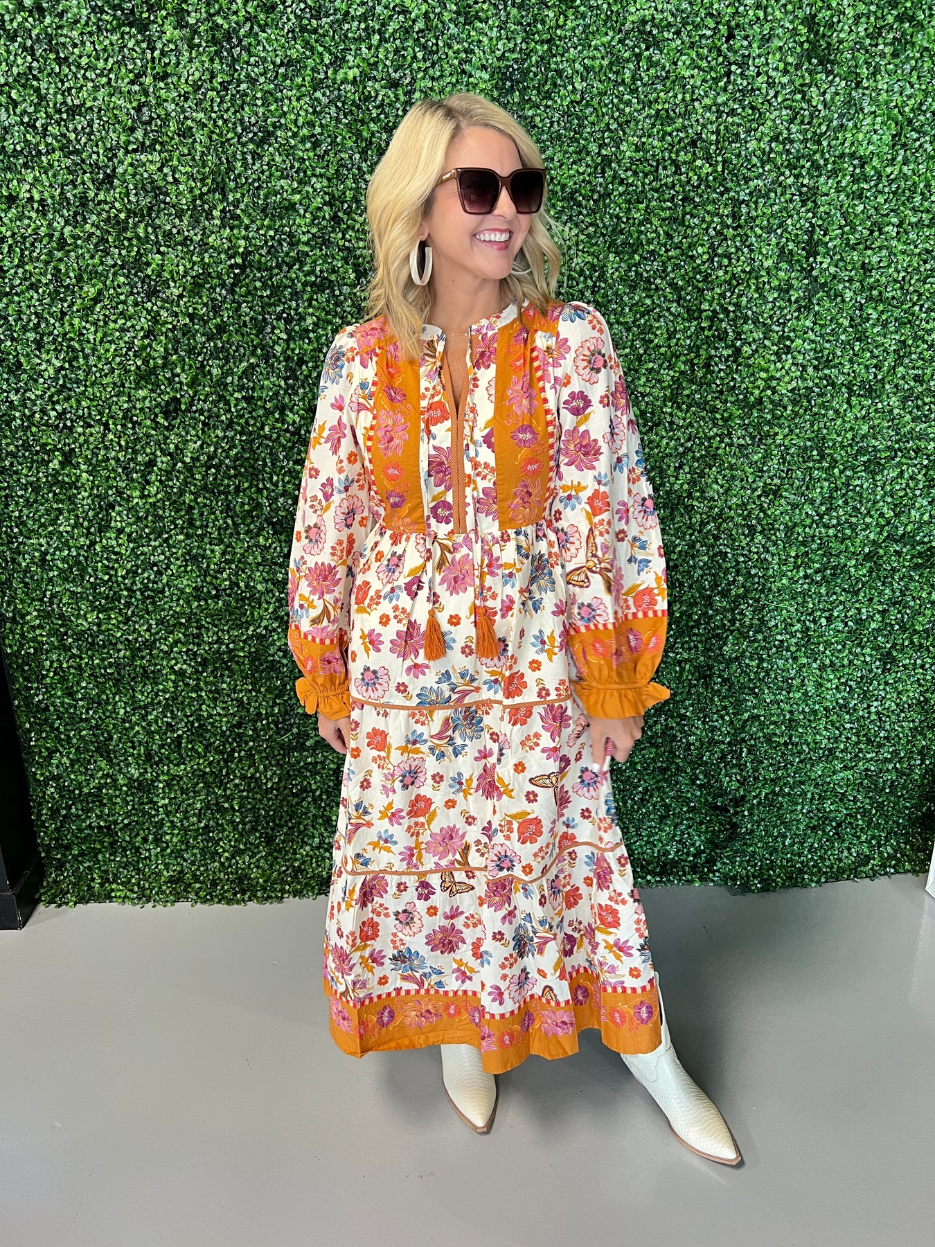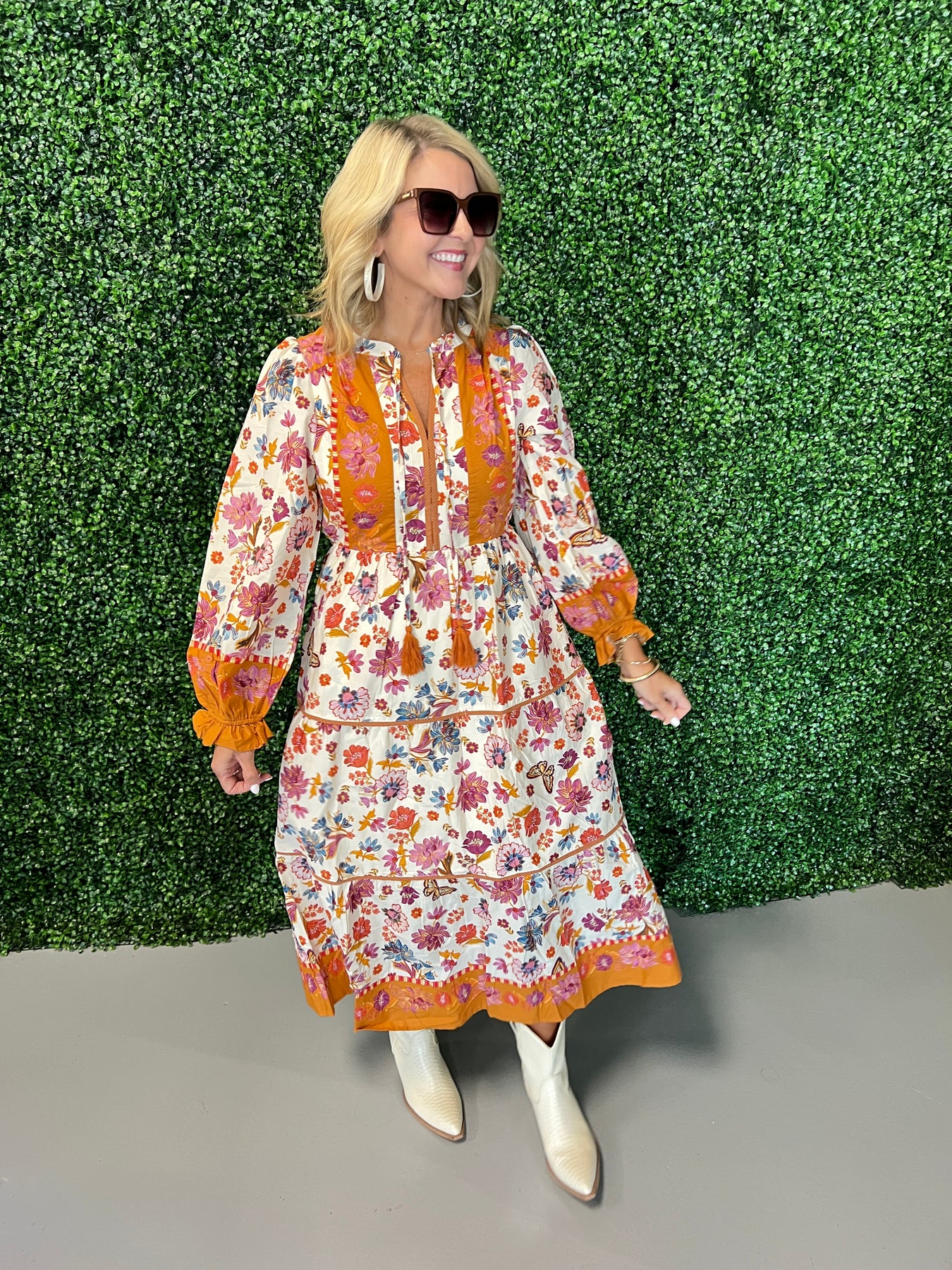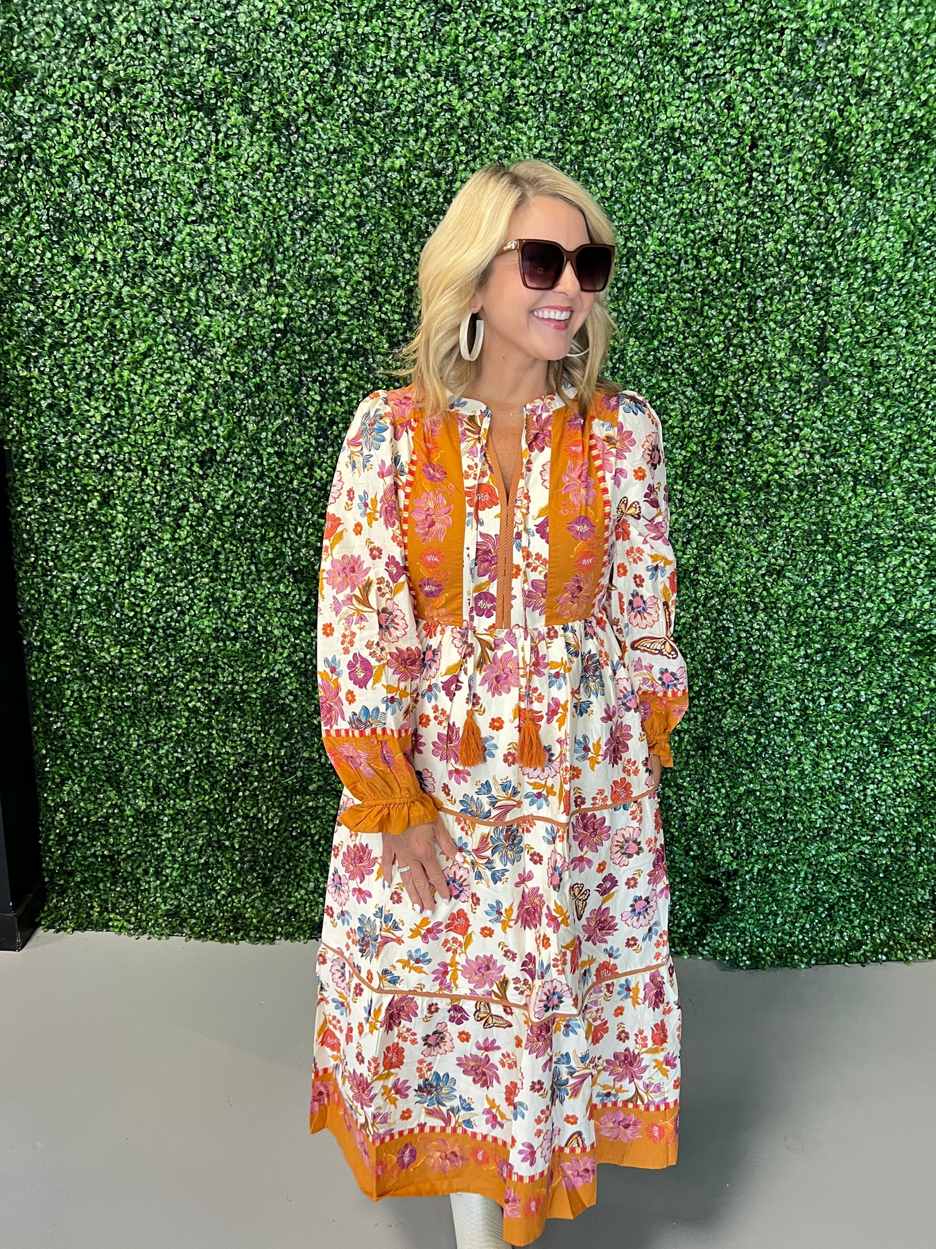 Elevate your wardrobe with the Floral Border Print Midi Dress, designed to blend timeless elegance with modern charm. Its flattering midi length and delicate floral border create a graceful silhouette perfect for any occasion. Crafted for comfort and style, this dress effortlessly transitions from day to night, making it a versatile addition to your collection. Embrace a look that’s both feminine and confident with this must-have piece.