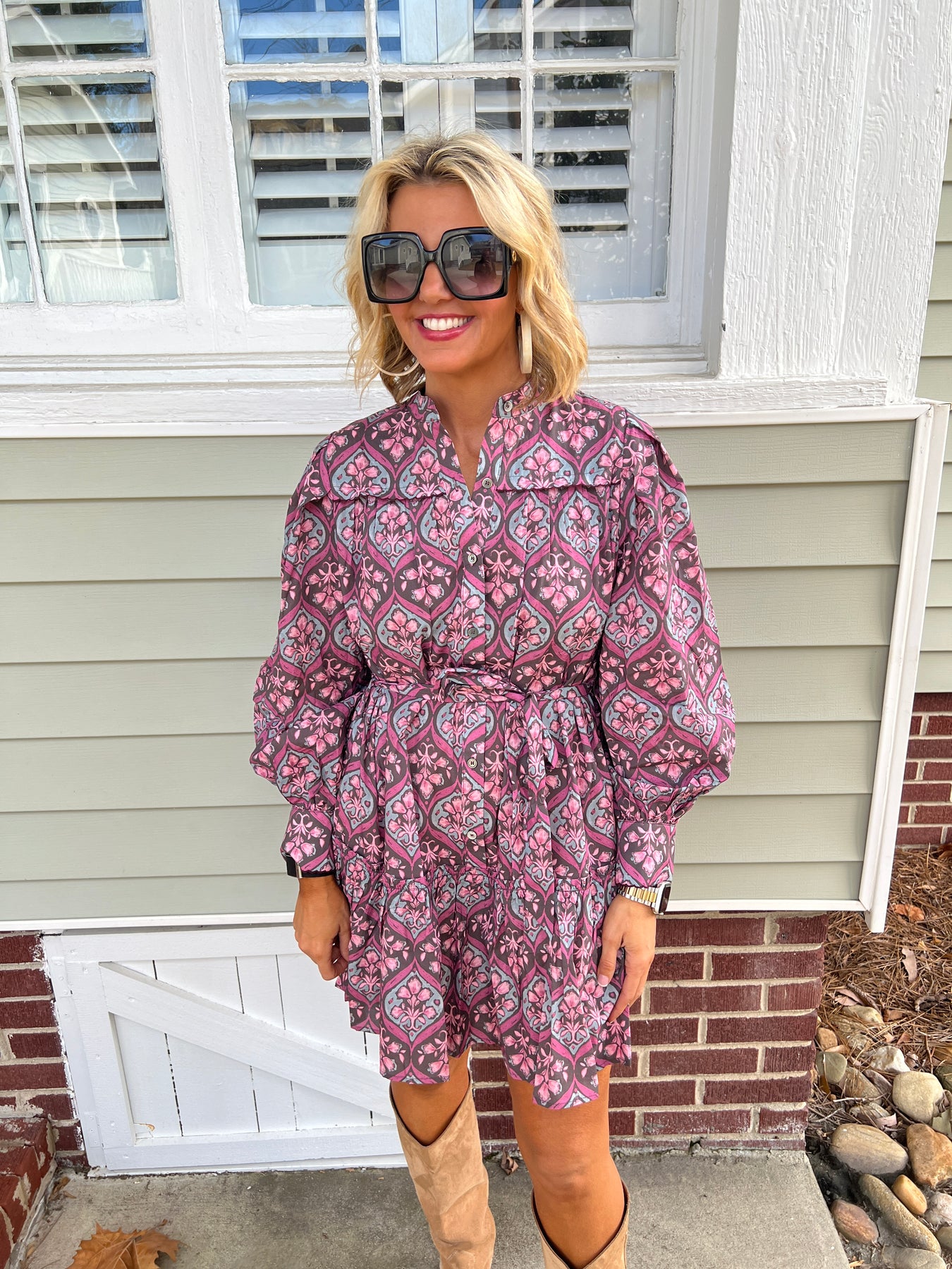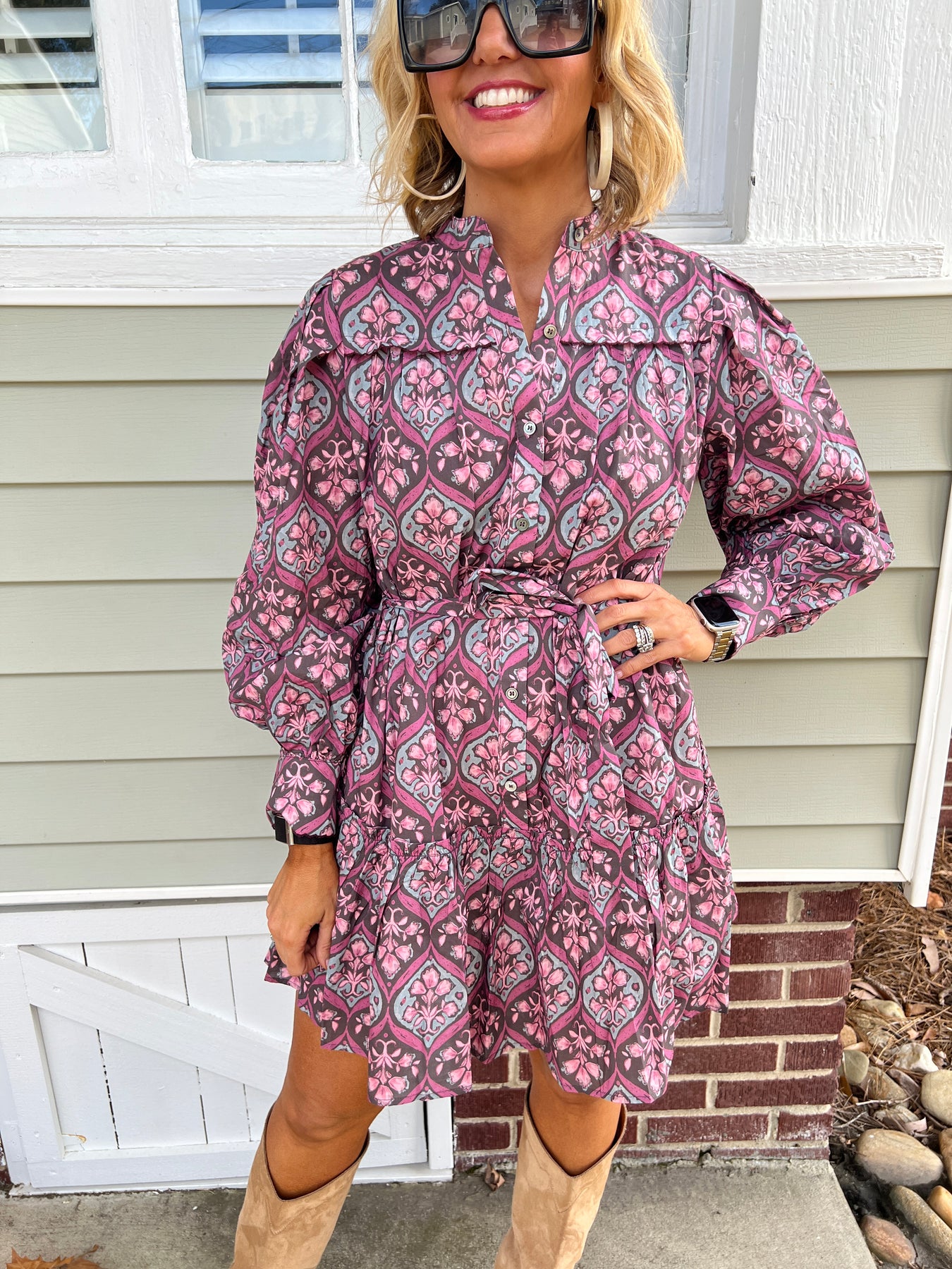 Elevate your wardrobe with this charming floral button-down mini dress—the perfect piece for effortless style. Featuring a classic button-front design and vibrant floral print, it transitions seamlessly from casual daytime looks to evening outings. The mini silhouette offers a flattering, modern cut that works for any season, while the structured fabric ensures comfortable all-day wear. Whether you're dressing up for brunch or keeping it relaxed on the weekend, this versatile dress delivers timeless appeal with contemporary flair.