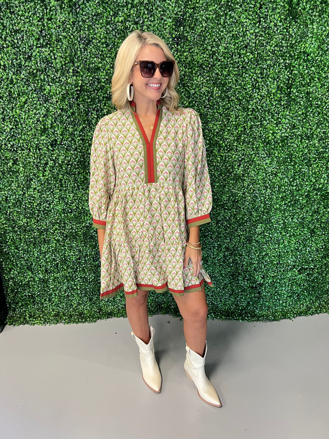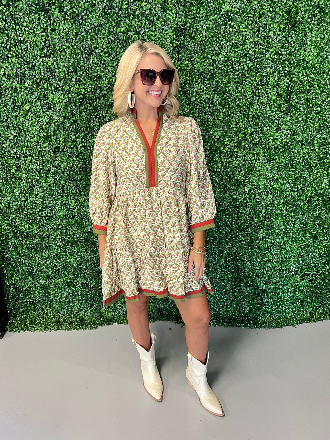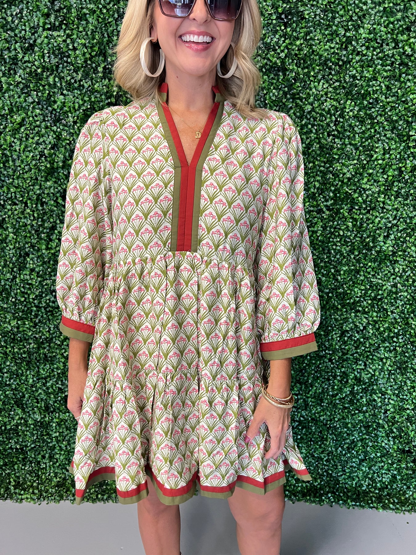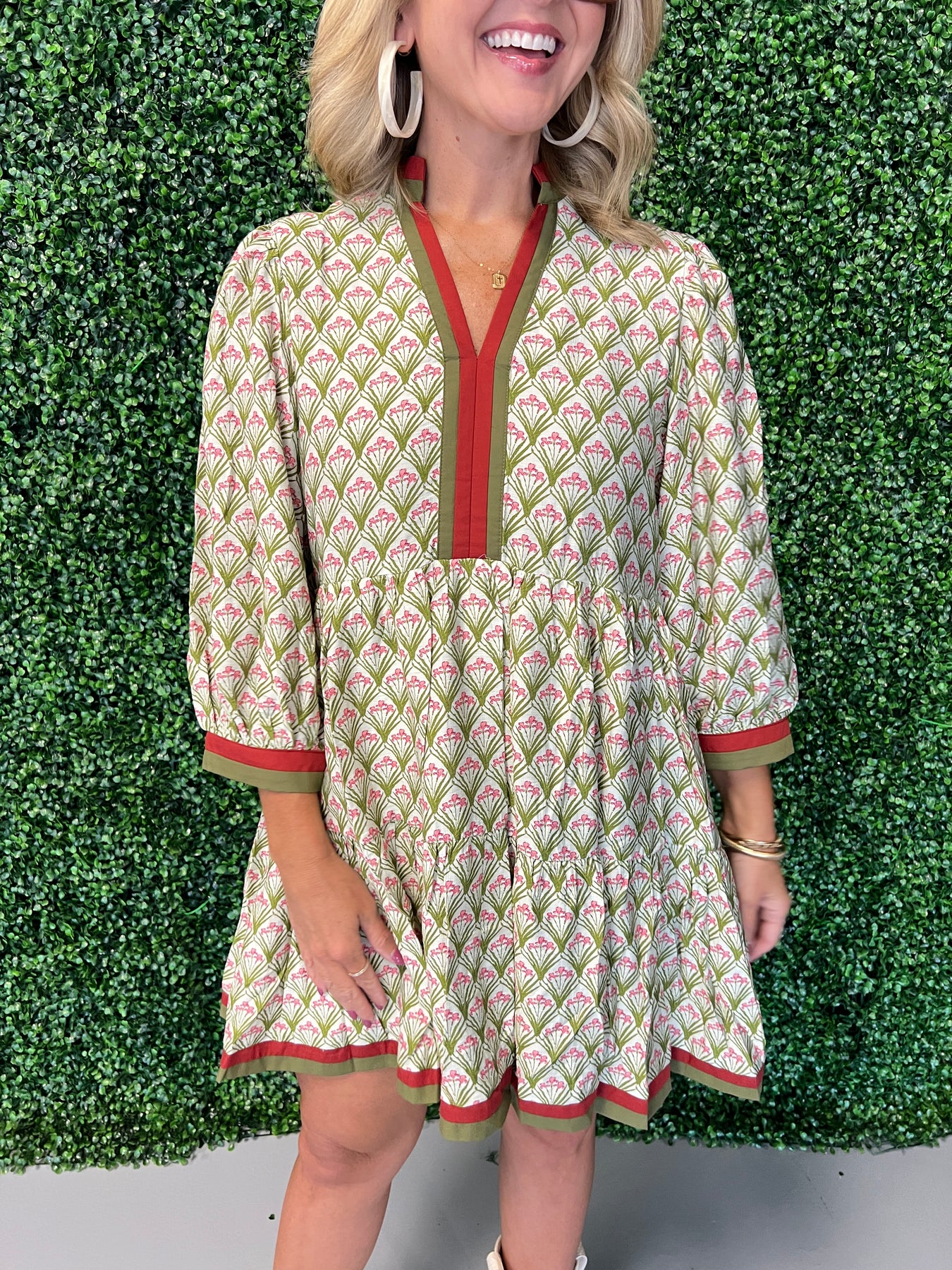 Floral Pattern ¾ Sleeve Tiered Mini Dress