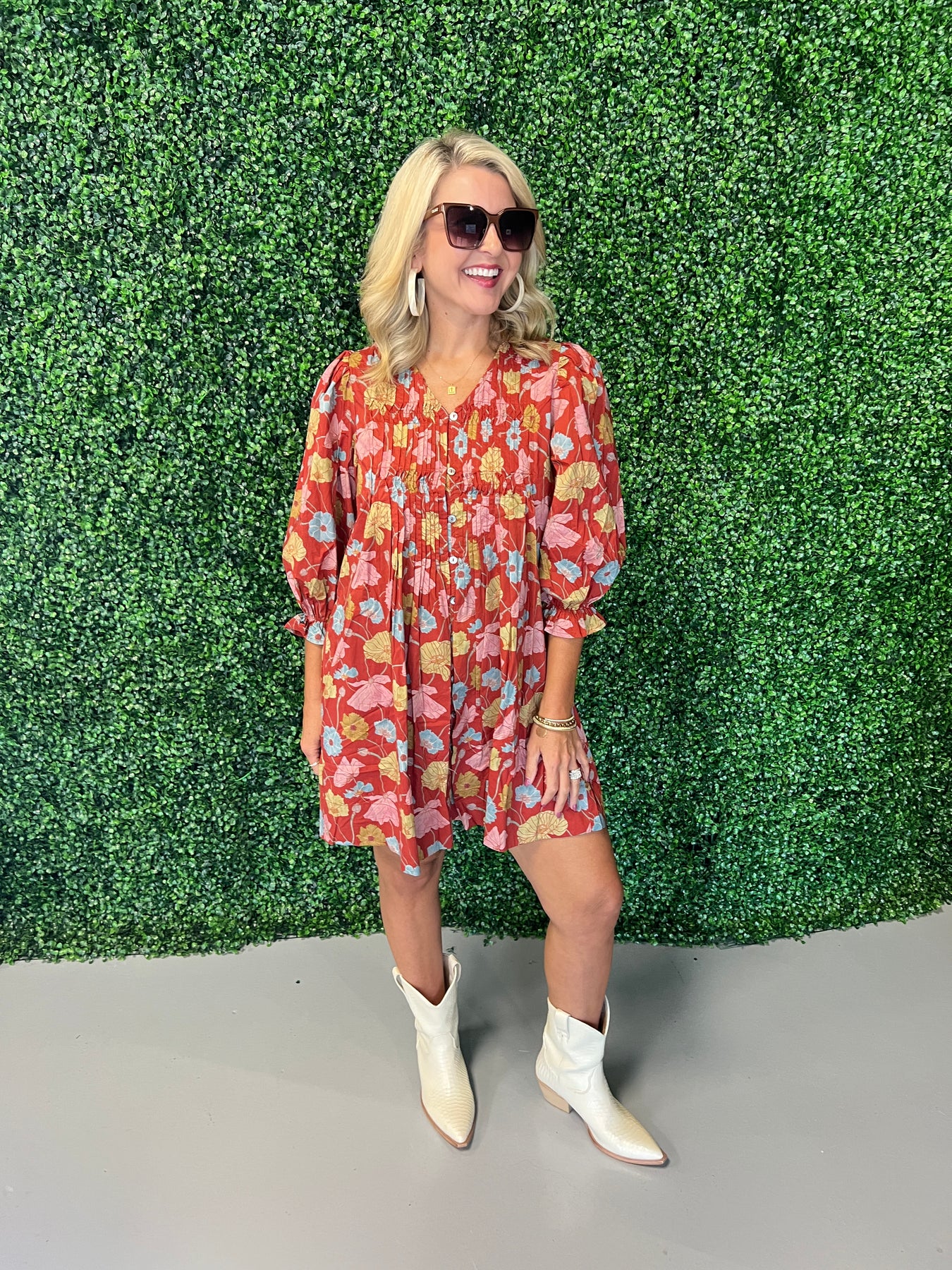 Elevate your wardrobe with this Floral Print 3/4 Sleeve Mini Dress. Featuring a flattering silhouette and breathable fabric, it offers both comfort and style. The charming floral pattern adds a fresh, feminine touch perfect for any occasion, while the 3/4 sleeves provide just the right amount of coverage. Ideal for day-to-night wear, this dress effortlessly blends elegance and ease.