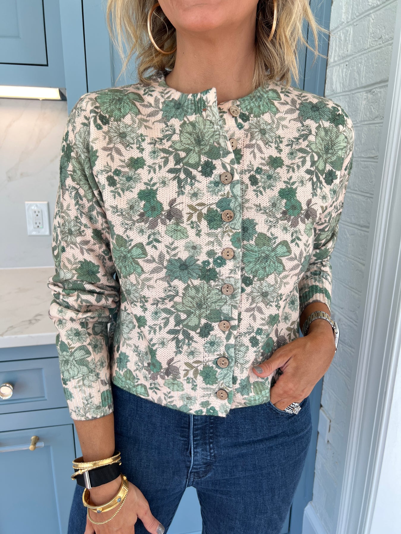 Elevate your wardrobe with this Floral Print Cardigan Top, designed to blend comfort and style effortlessly. Featuring delicate floral patterns and easy-to-use buttons, this cardigan adds a touch of elegance to any outfit. Perfect for layering, it offers lightweight warmth and a flattering fit that complements your look from day to night. Make a chic statement with this versatile piece that brings freshness to your everyday wear.