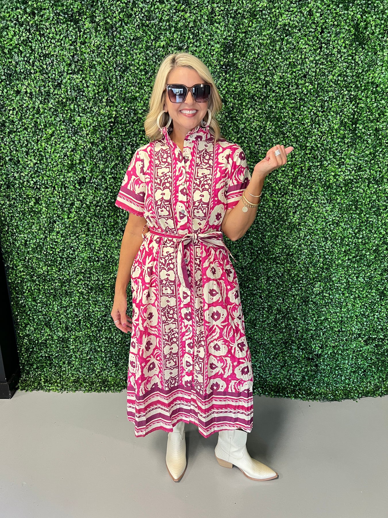 Elevate your wardrobe with this Floral Print Midi Dress featuring a flattering tie waist. The midi length offers elegant coverage while the vibrant floral pattern brings a touch of freshness and femininity. Perfect for both daytime outings and evening events, this dress combines comfort with style, ensuring you look effortlessly chic wherever you go.