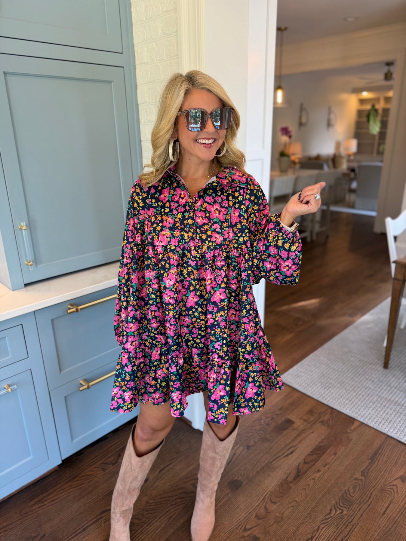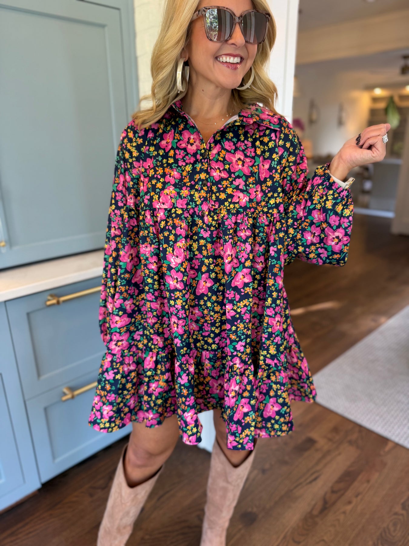 Elevate your wardrobe with the Floral Print Tiered Shirt Dress, combining effortless style and comfort. Its flowing tiers and vibrant floral pattern create a fresh, feminine look perfect for any occasion. Designed with a classic shirt collar and button-front detail, this dress offers both versatility and a flattering silhouette that moves with you all day. Ideal for warm weather, it pairs beautifully with sandals or sneakers for a chic, on-the-go outfit. Make every day bloom with confidence in this must-have dress.